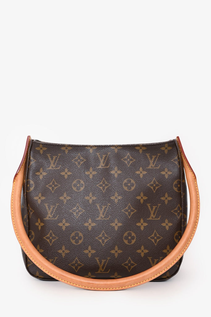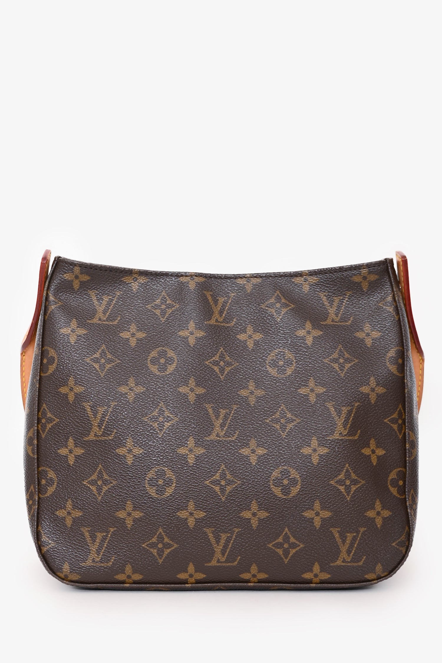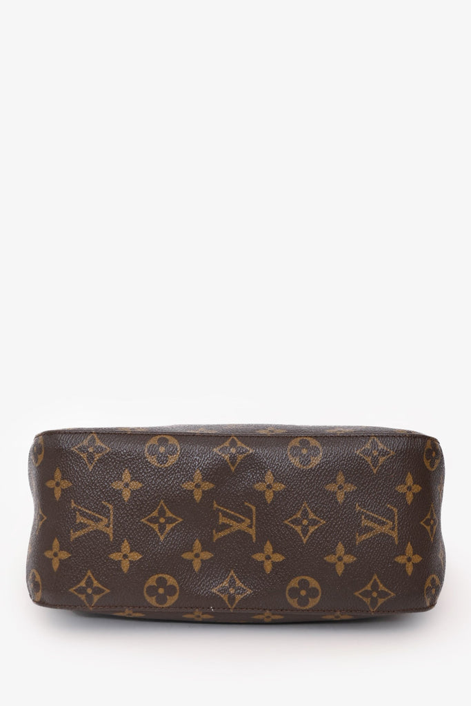 Louis Vuitton Brown Monogram Canvas Looping MM Shoulder Bag. Top zip closure. Single structured top should strap. Suede interior. 1 interior slip pocket and 1 zip pocket. Gold-tone hardware. Contrast stitching.