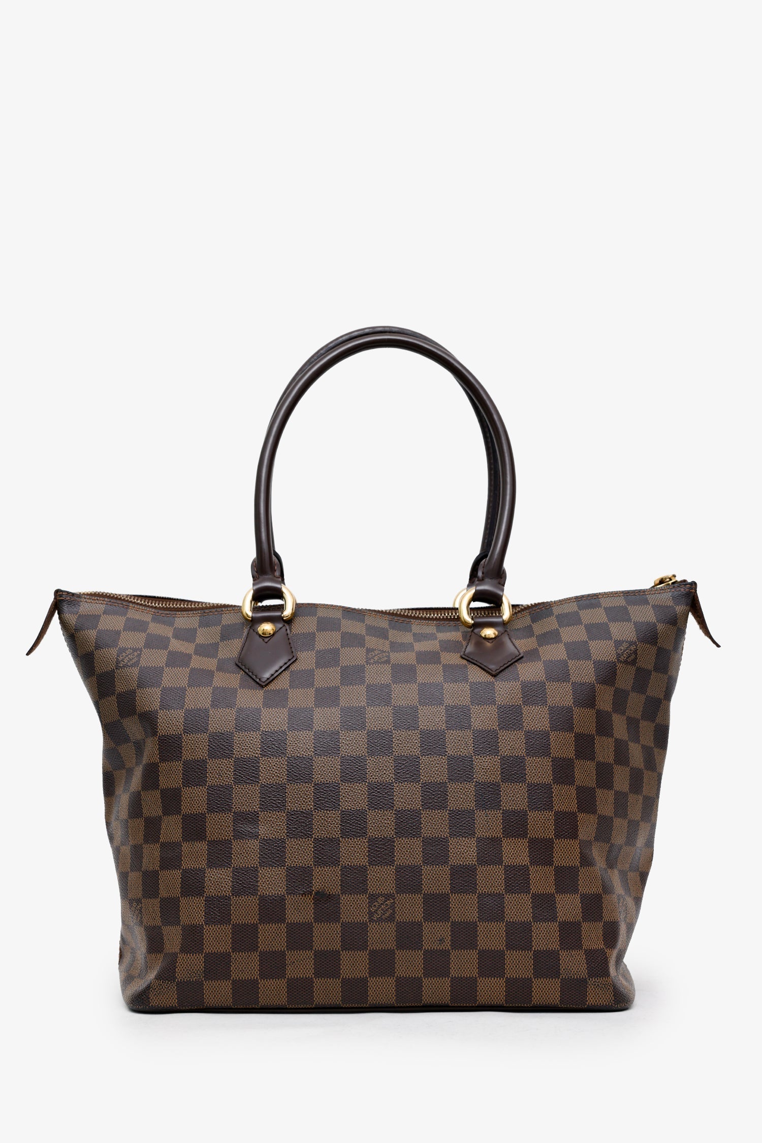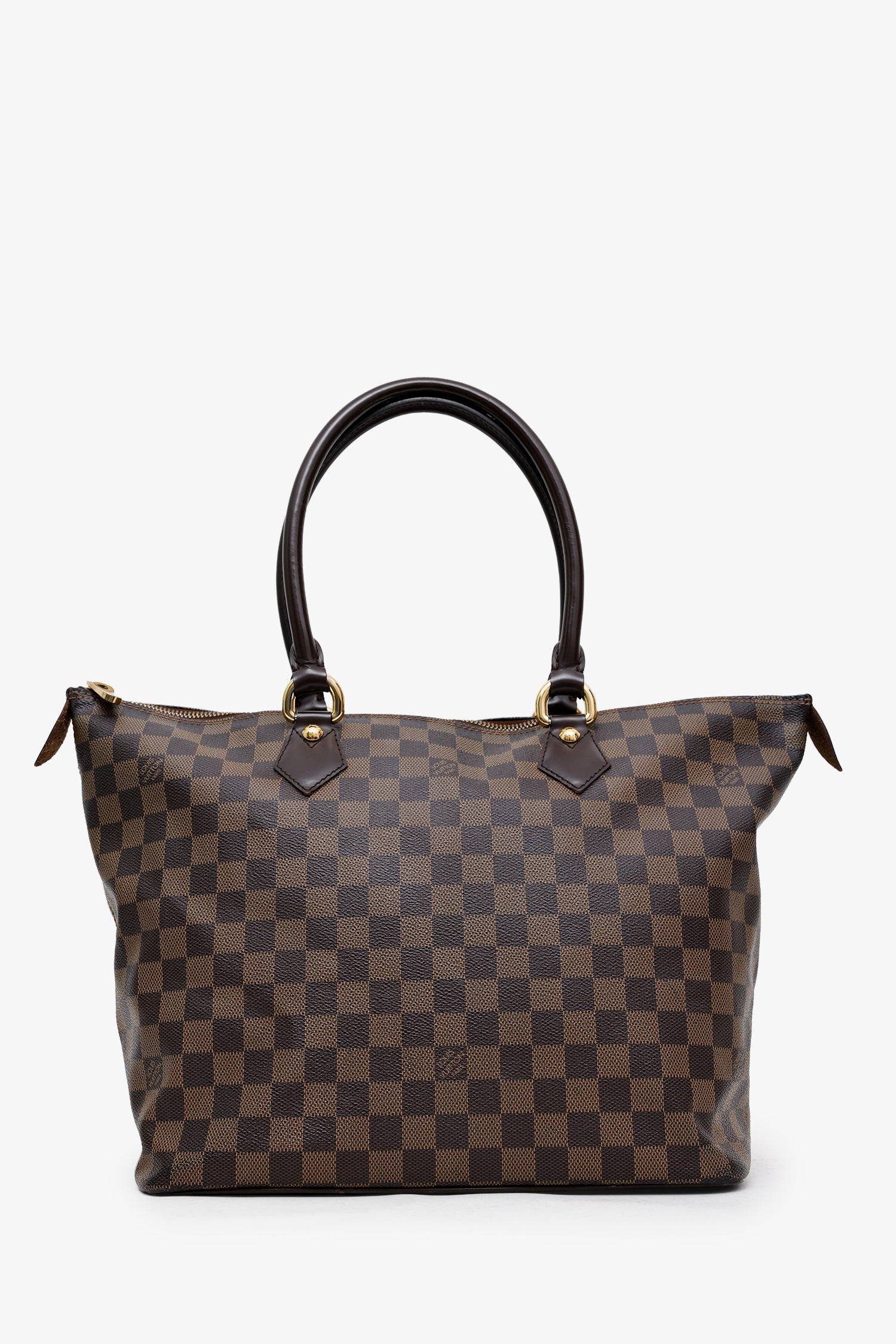 Louis Vuitton 2007 Damier Ebene Saleya MM Tote. Top zip closure. Twin top handles. Lined interior with 2 slip pockets. Gold-tone hardware. Tonal stitching.