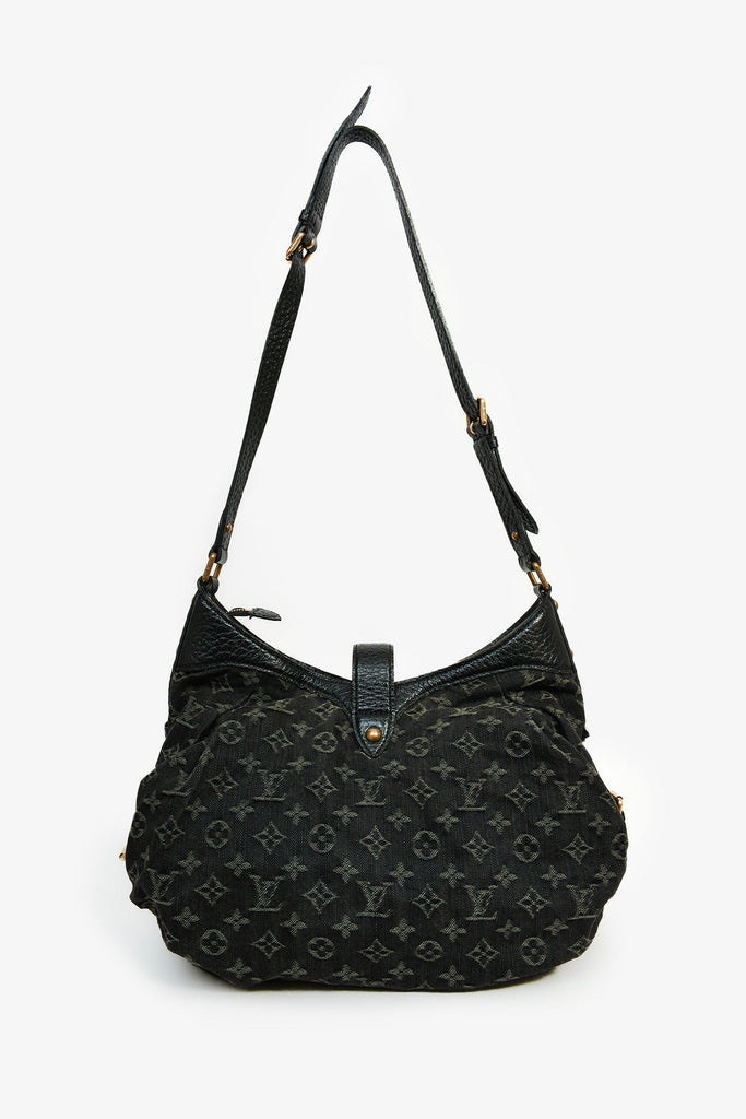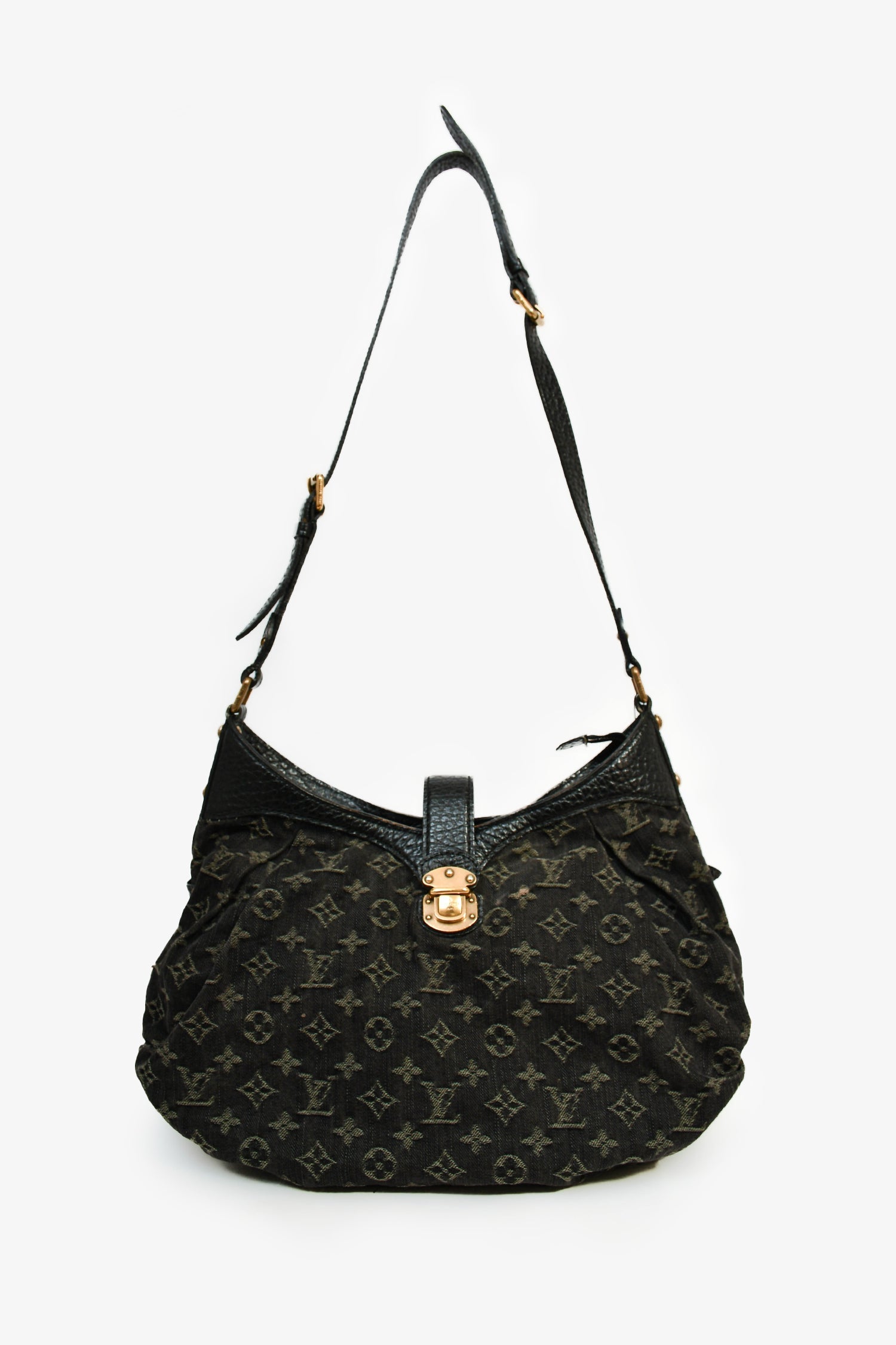 Louis Vuitton Black Denim Light Wash Monogram Hobo Bag With Strap