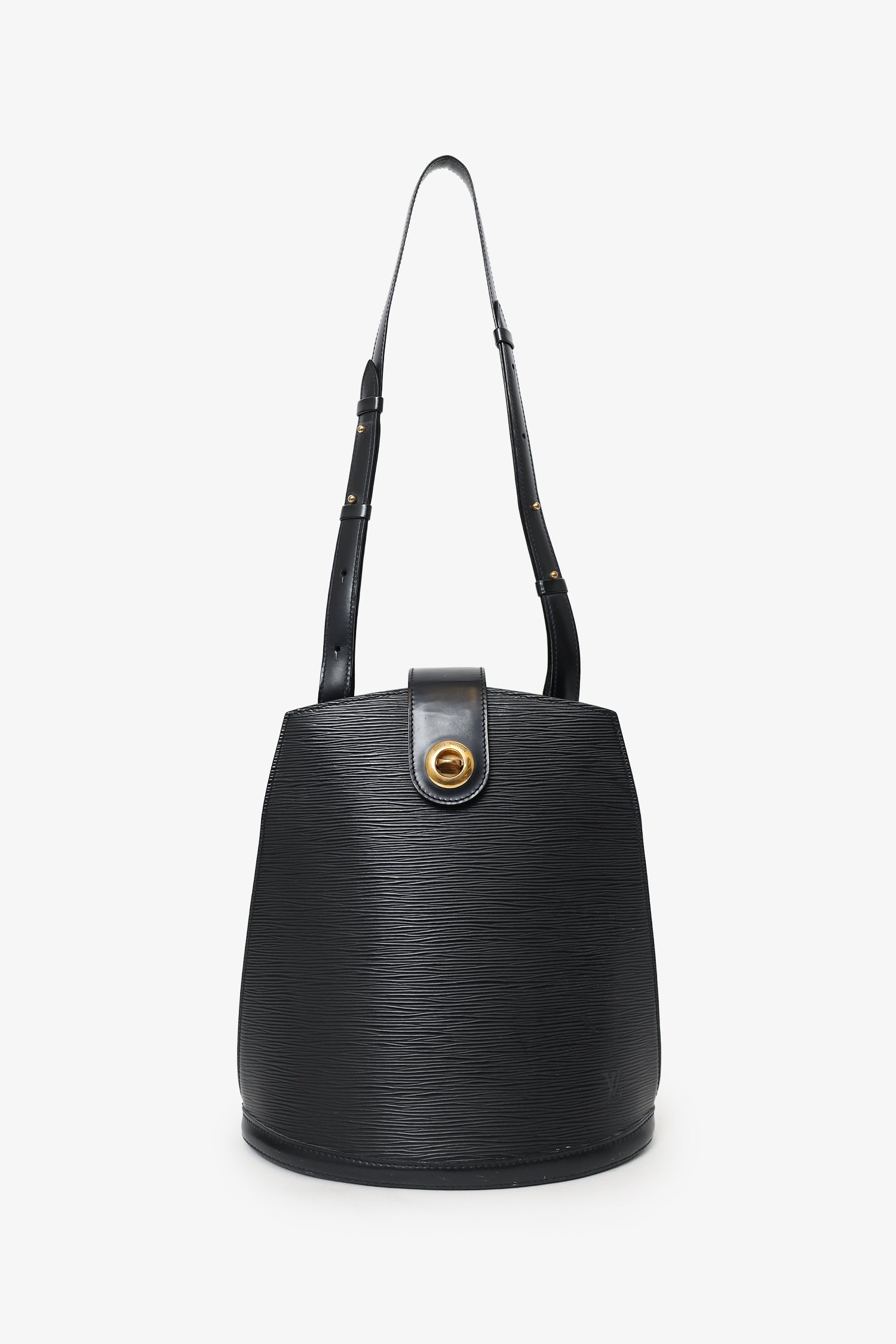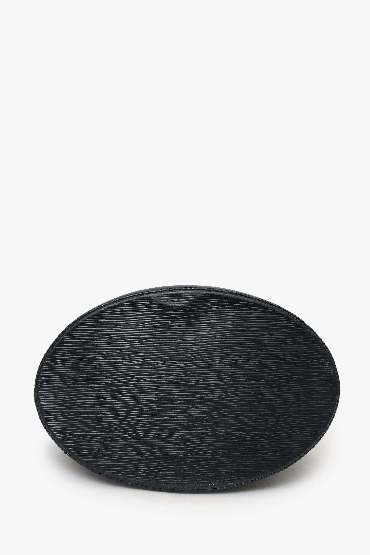 Louis Vuitton Black Epi Leather. Front fold-over flap with turn-lock closure. Single adjustable shoulder strap with push pin closure. Suede lined interior. Single interior wall slip pocket. Gold-tone hardware. Tonal stitching.