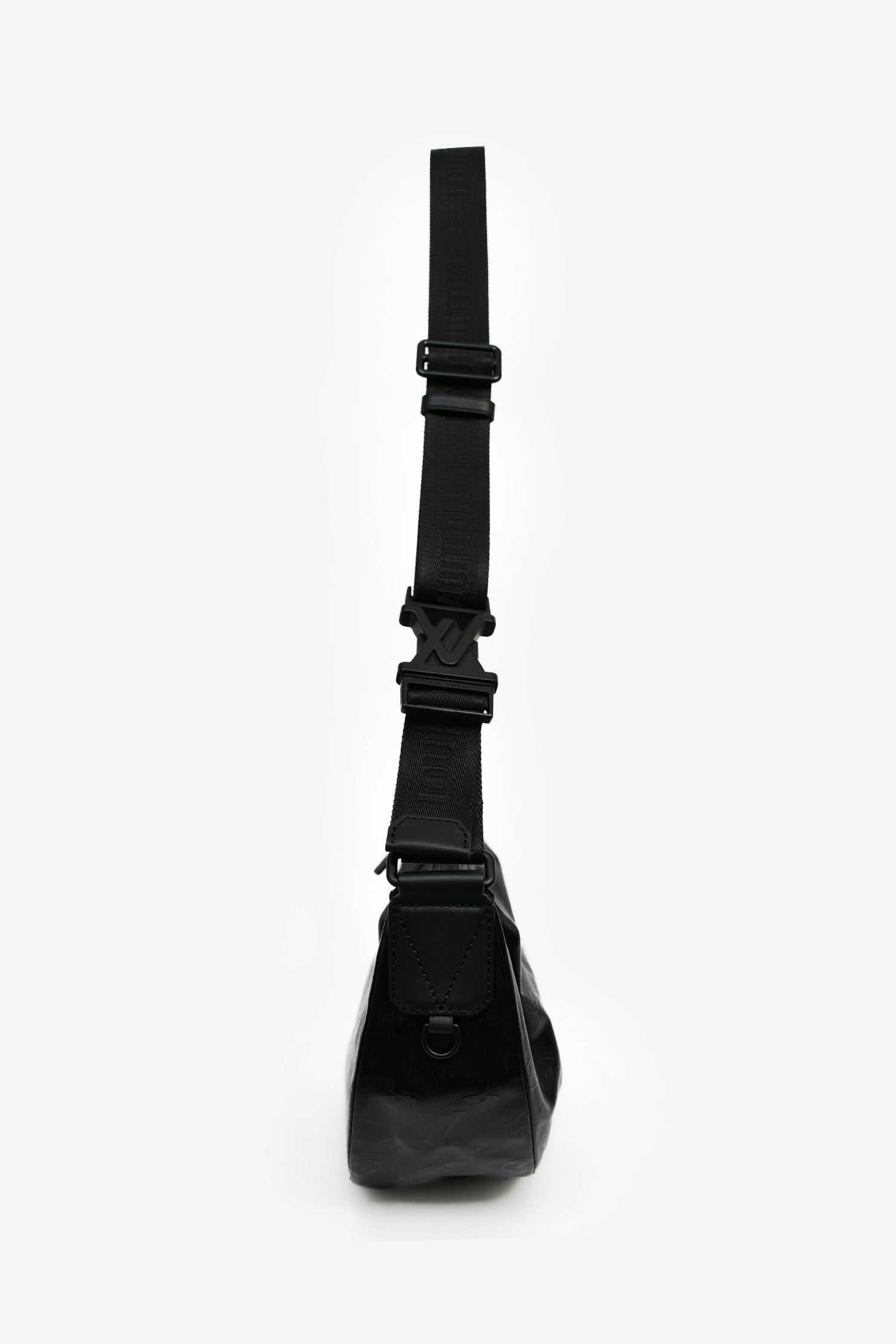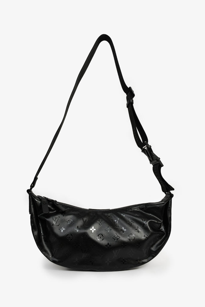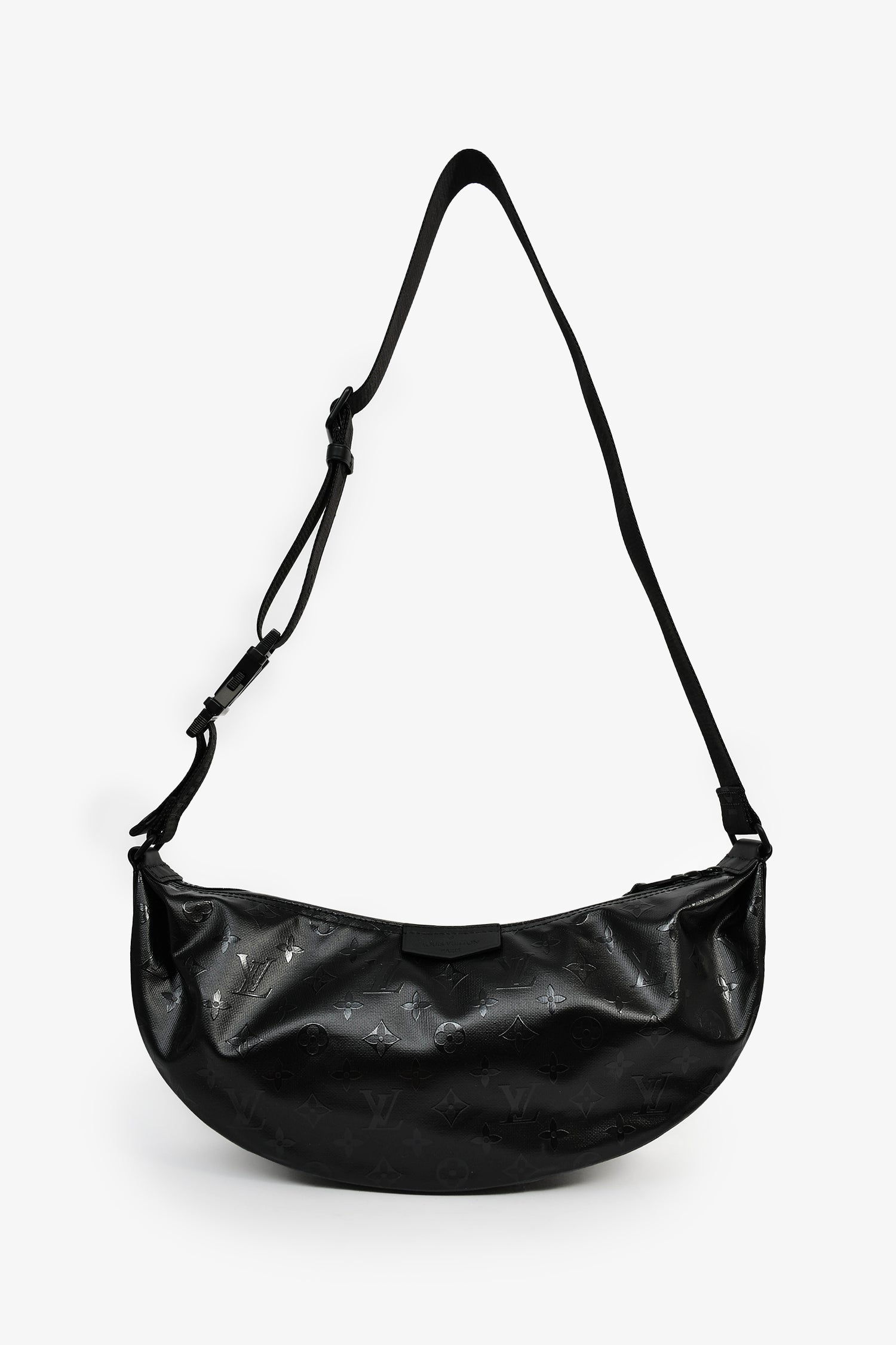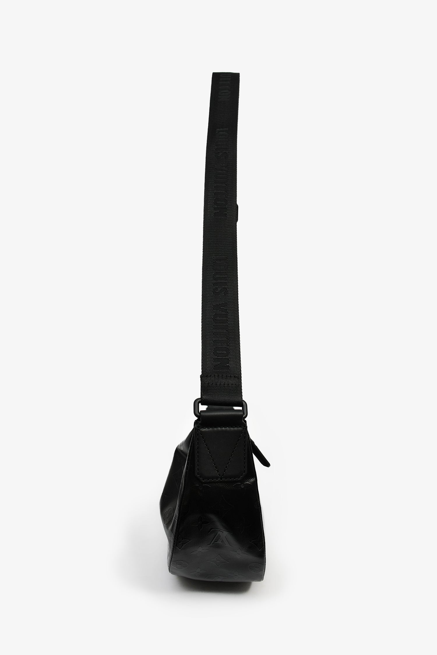 Louis Vuitton Black Patent Monogram Storm Hamac Bag. Top zipper closure. Single interior compartment with a wall zip pocket. Adjustable strap. Textile lining. Tonal stitching