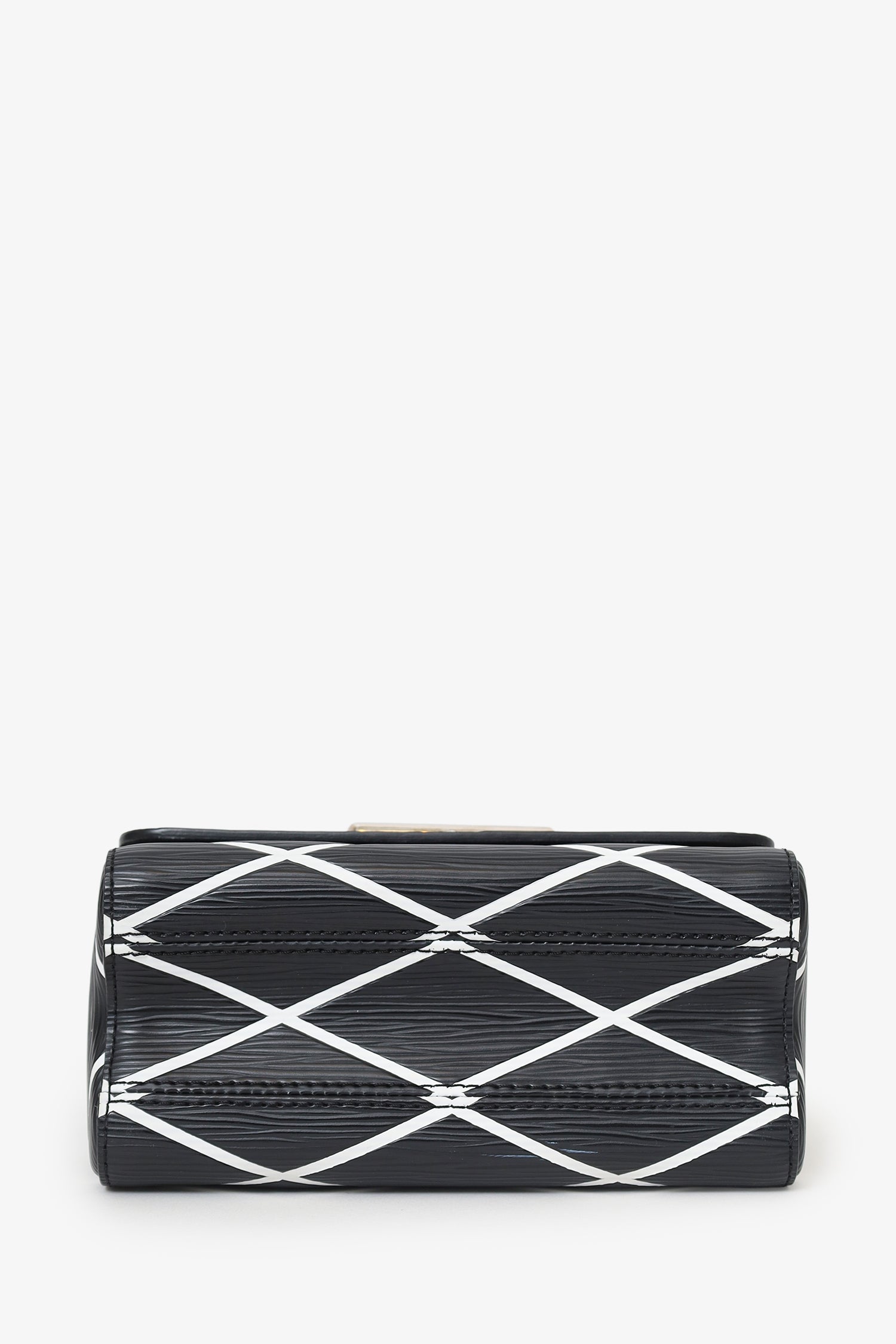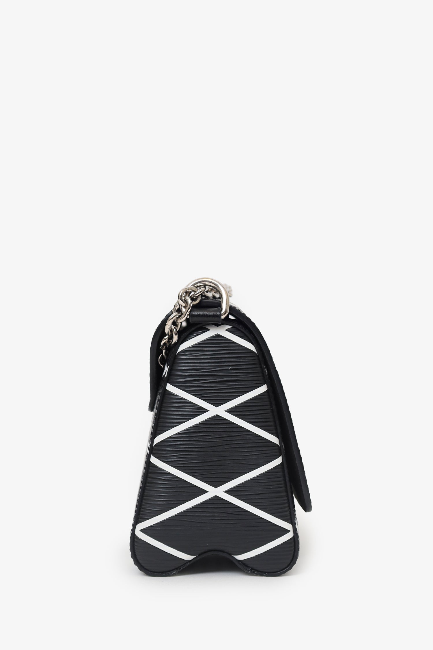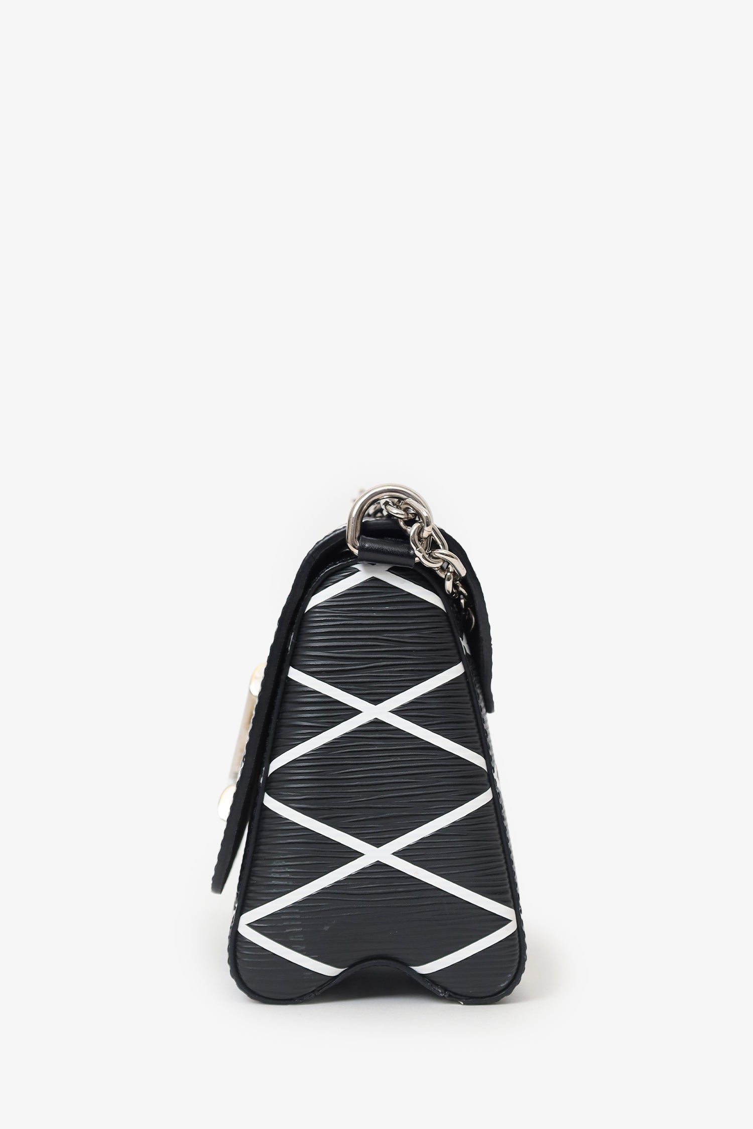 Louis Vuitton Black/White Malletage Leather Twist PM Shoulder Bag. Front fold-over-flap with turn-lock closure. Chain link shoulder strap. Lined interior with 2 slip pockets. Silver-tone hardware. Tonal stitching.