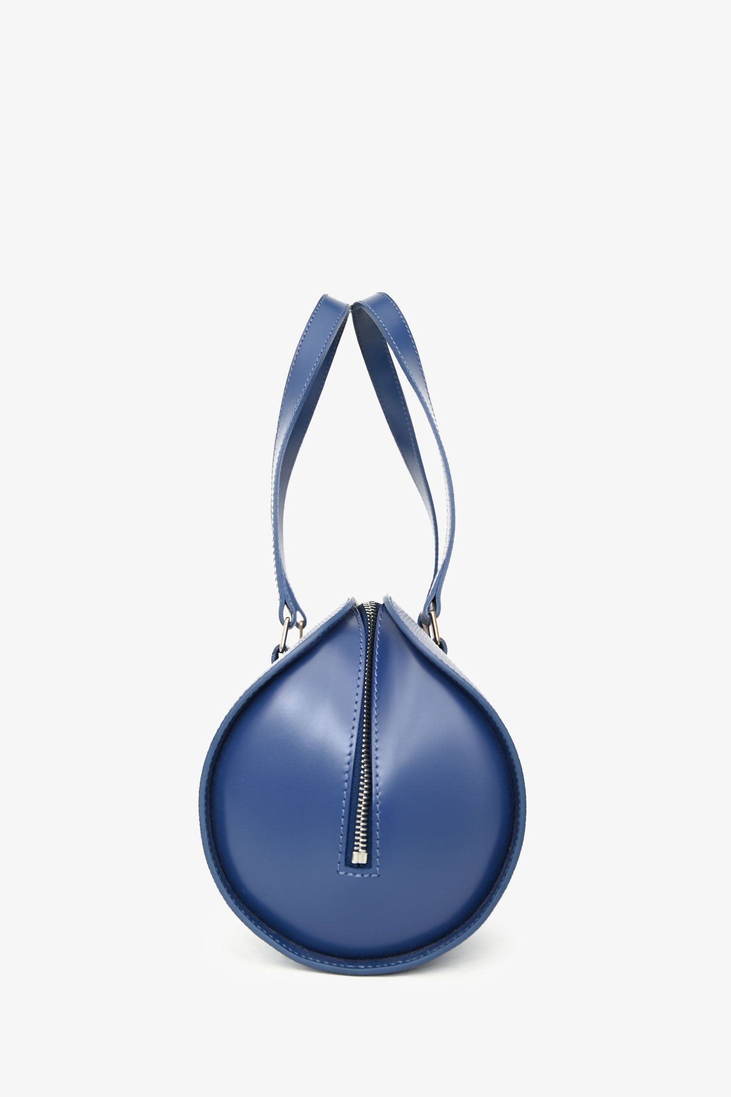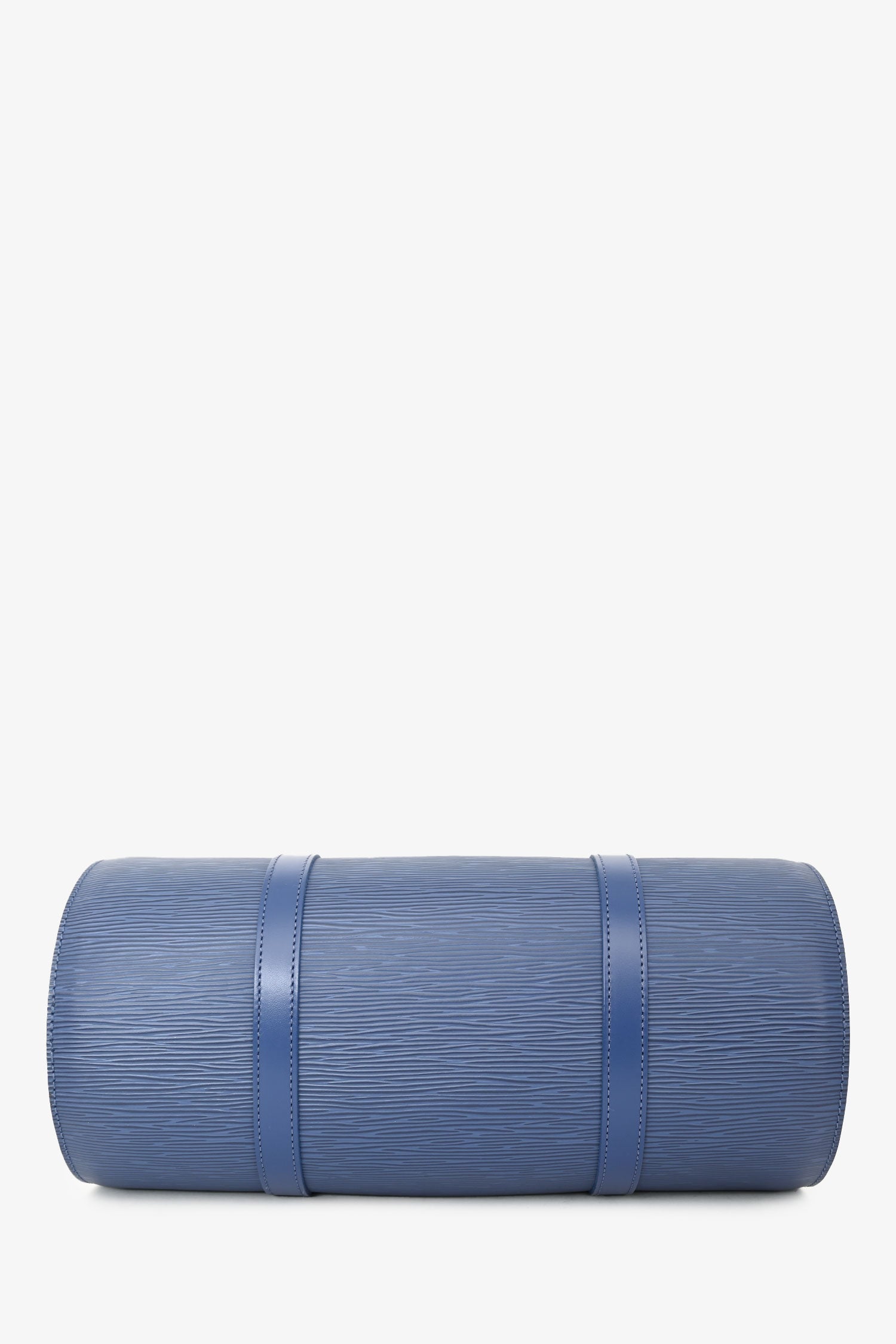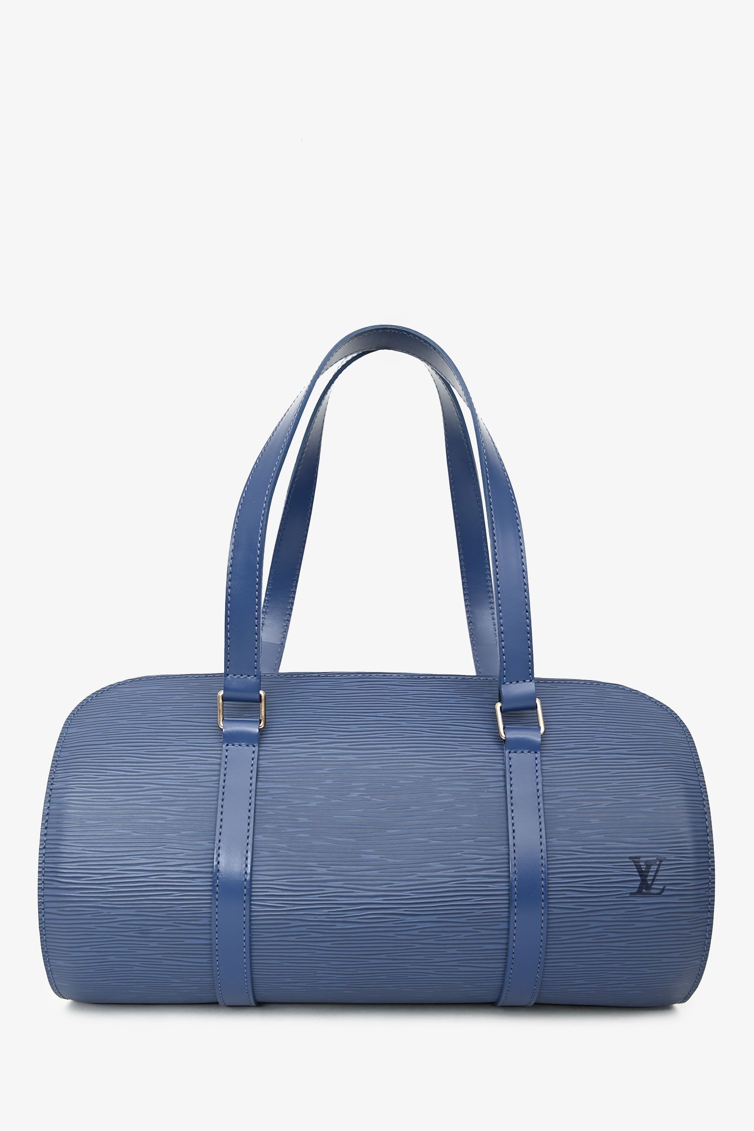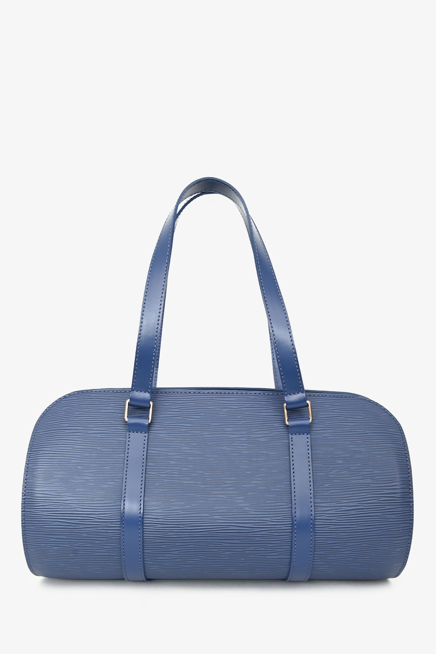 Louis Vuitton Blue Epi Leather 'Soufflot' Shoulder Bag. Top zip closure. Dual handles. Suede-lined interior. Single interior wall slip pocket. Silver-tone hardware. Tonal stitching.