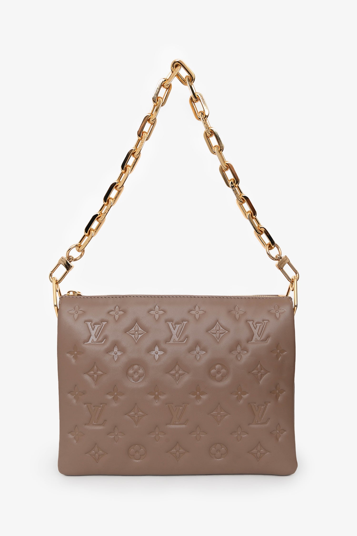 Louis Vuitton Camel Beige Leather Coussin PM Crossbody Bag with Chain Strap