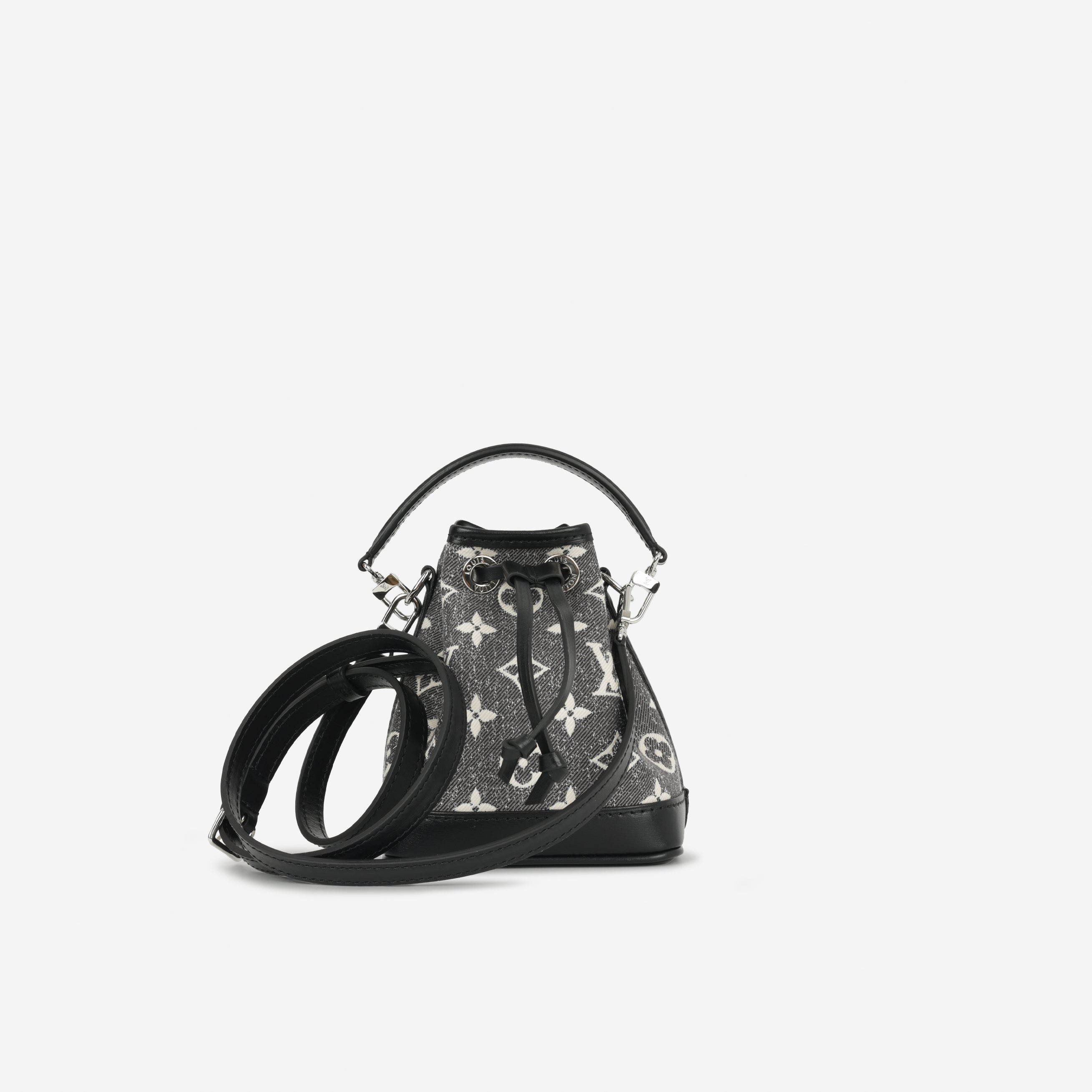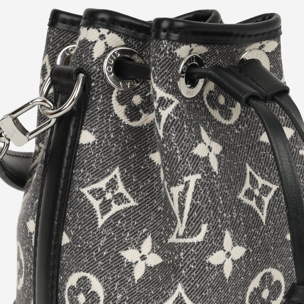 Expertly crafted from premium Monogram Jacquard in grey and black tones, the Nano Noé features a textured, denim-like finish accented with refined silver hardware (SHW). The structured base and signature monogram pattern offer a luxurious yet edgy look, perfect for daily wear or special occasions.