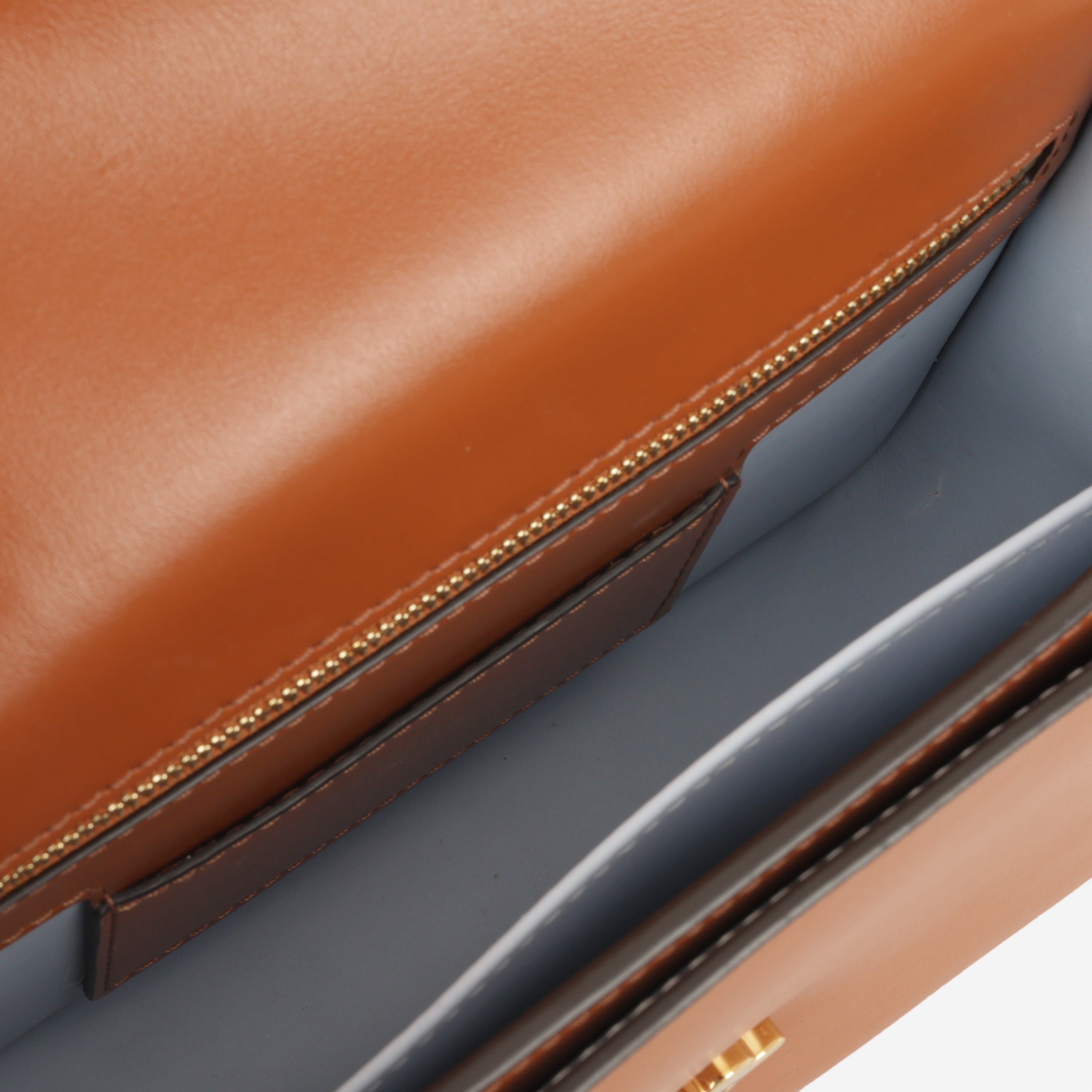 Refined and contemporary, the Louis Vuitton Pont 9 Shoulder Bag in caramel box calf leather with gold hardware is a sophisticated expression of modern luxury. Named after Paris’s historic Pont Neuf bridge, this elegant design combines architectural lines with timeless Louis Vuitton craftsmanship.