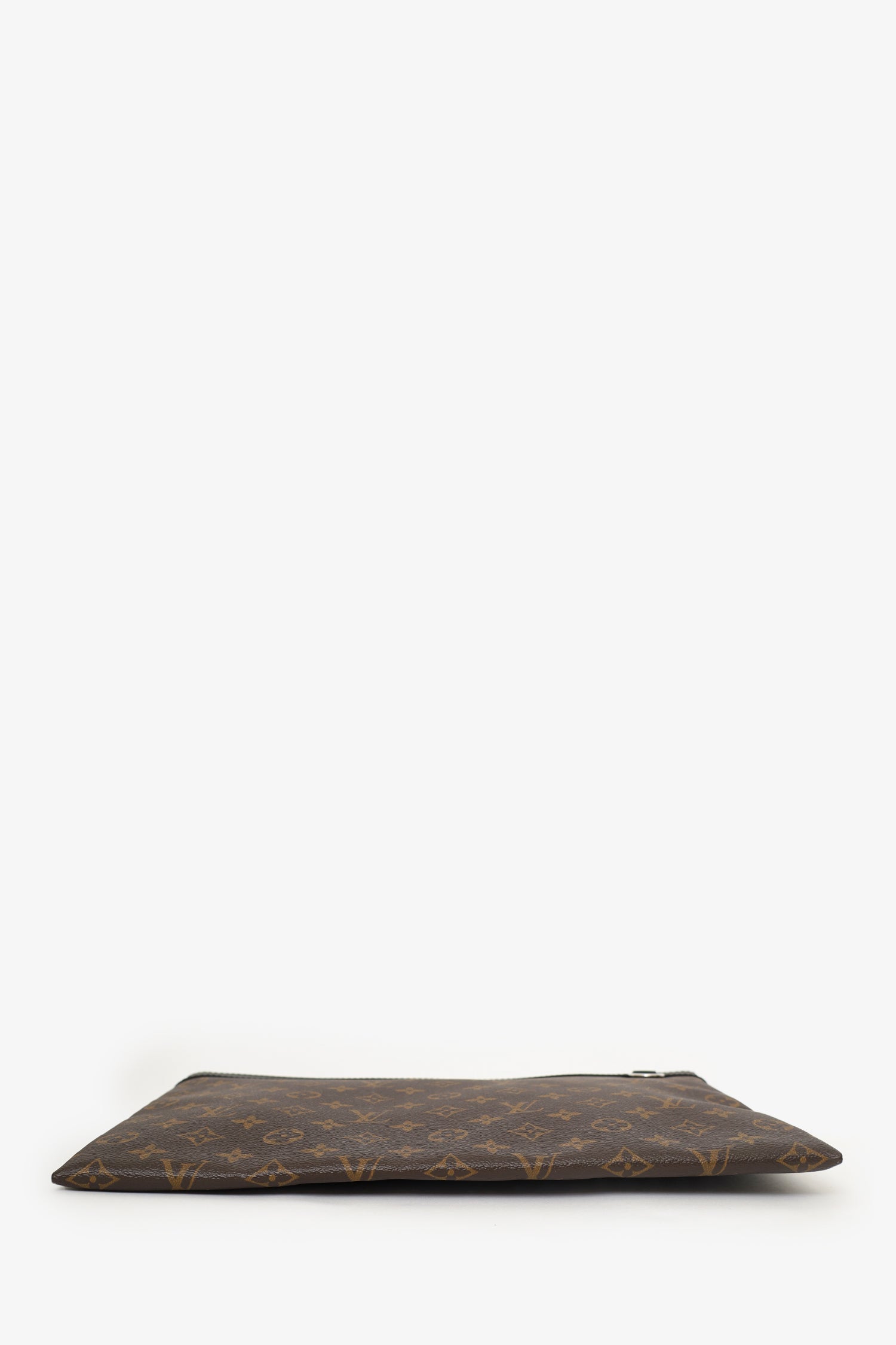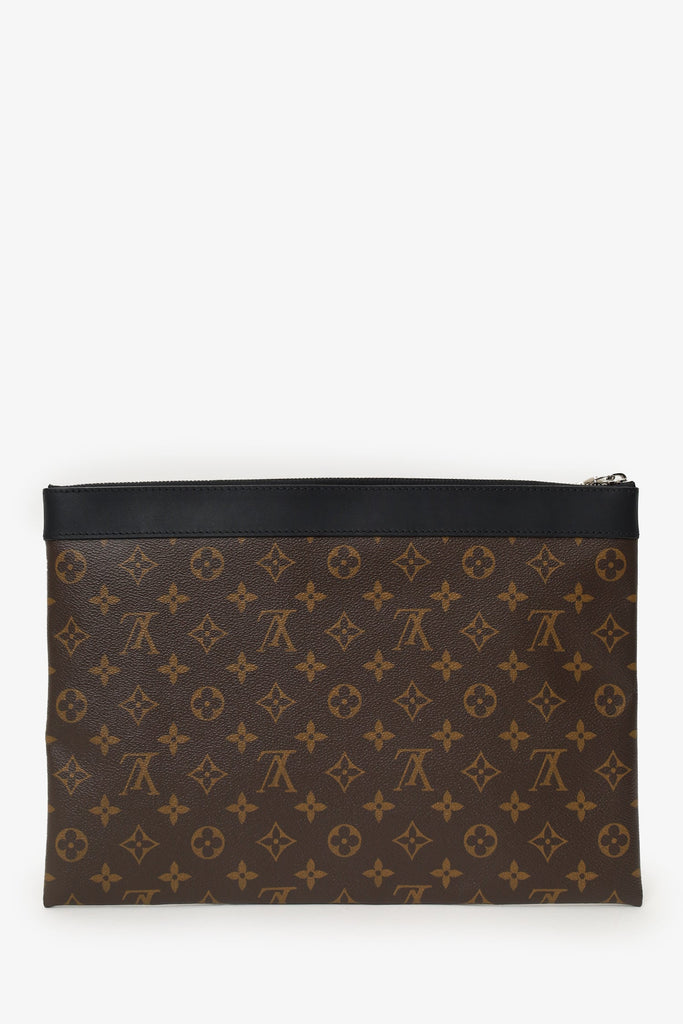Louis Vuitton Monogram Discovery Pochette GM. Top zip closure. Lined interior. Single interior slip pocket. Silver-tone hardware. Tonal stitching.