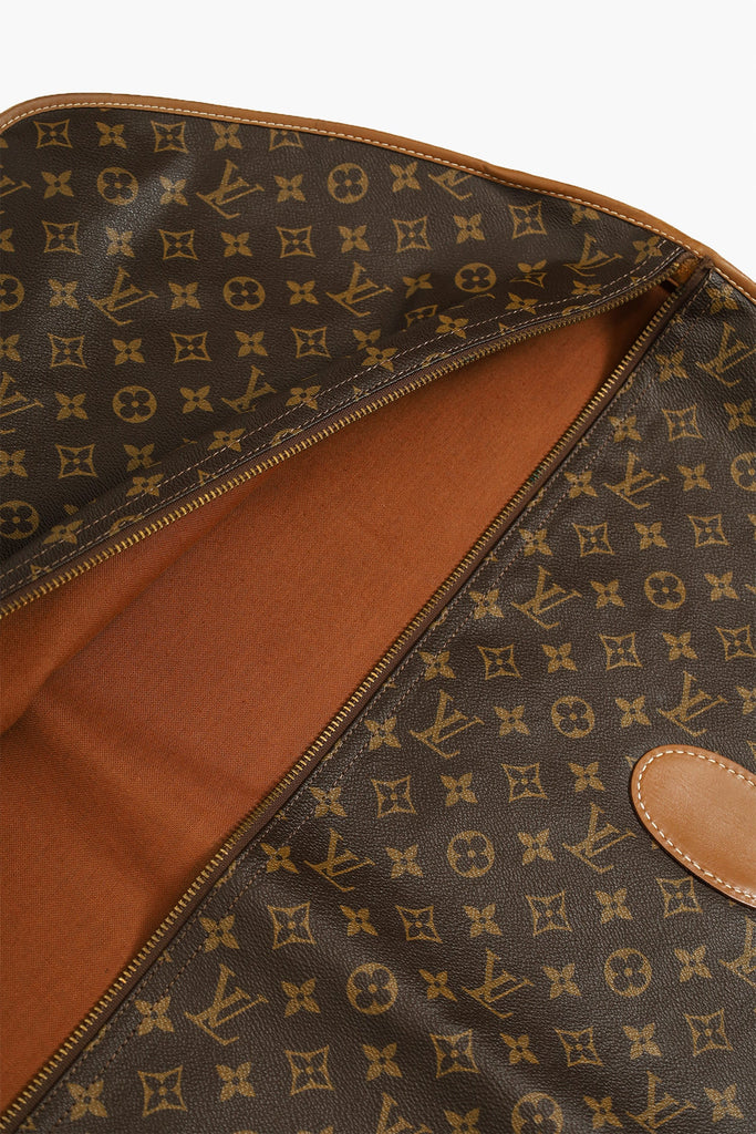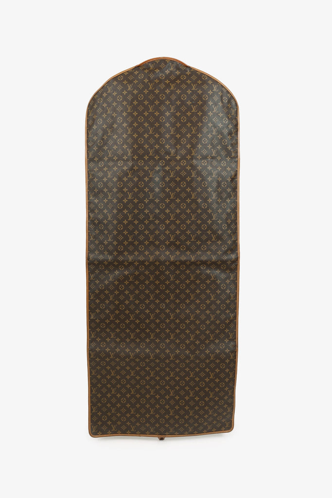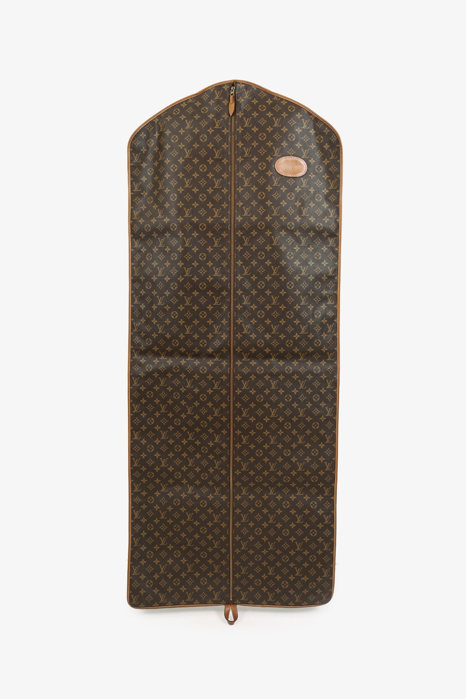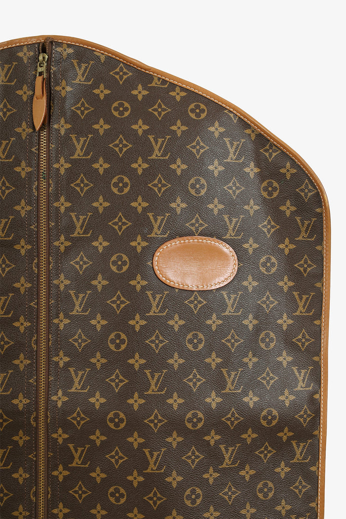 Louis Vuitton Monogram French Company Garment Bag. 2-way front zip closure. Small top opening and rear loop for bi-fold ability. Lined interior. Gold-tone hardware. Contrast and tonal stitching.