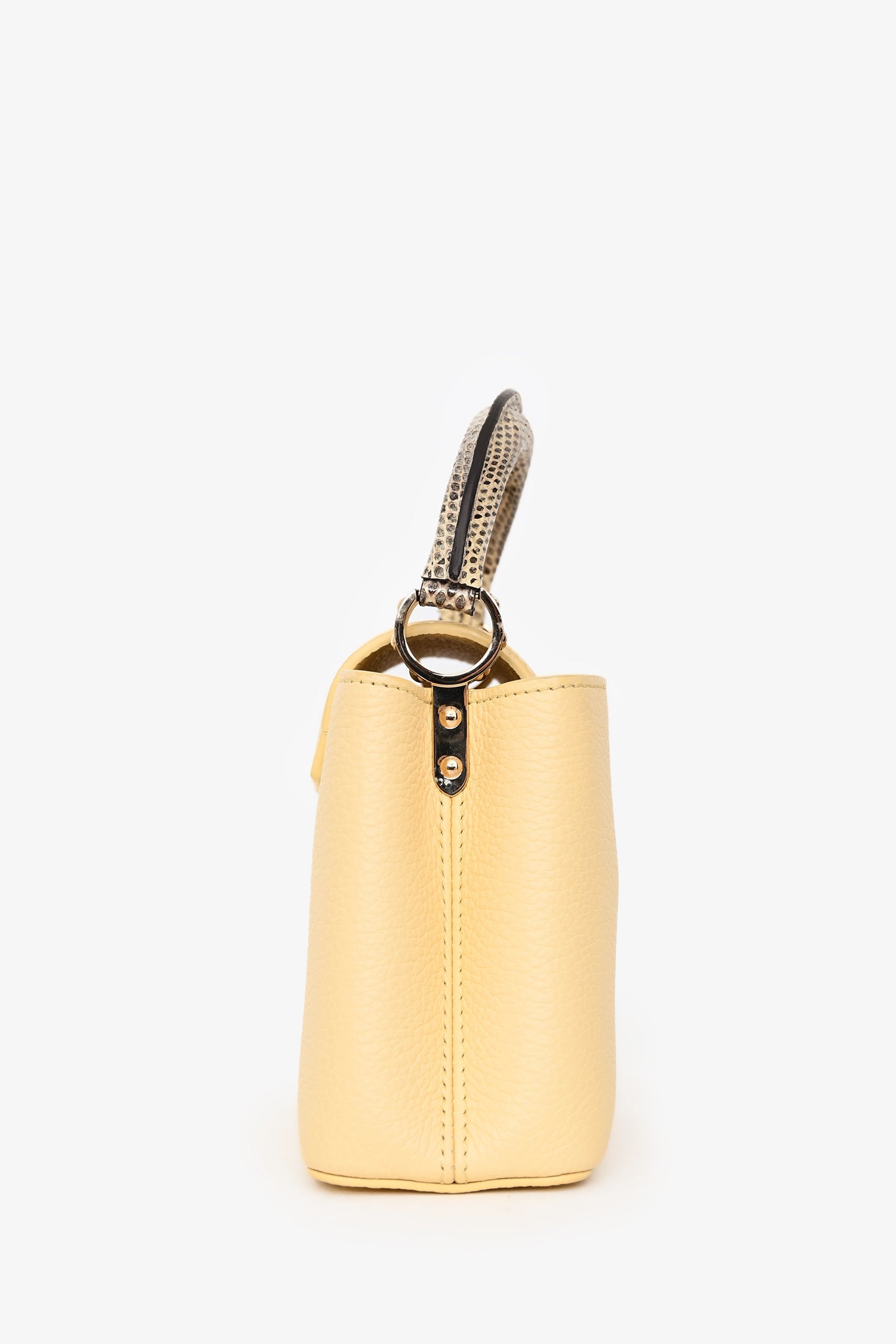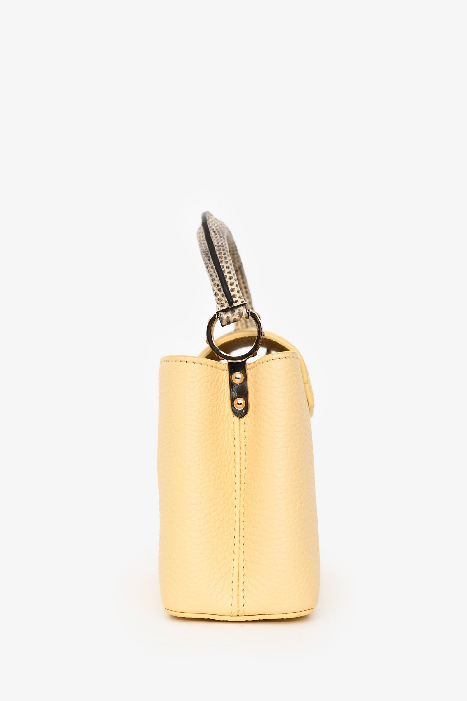 Louis Vuitton Pale Yellow Grained Leather Python Trim Mini Capucines Top Handle with Strap