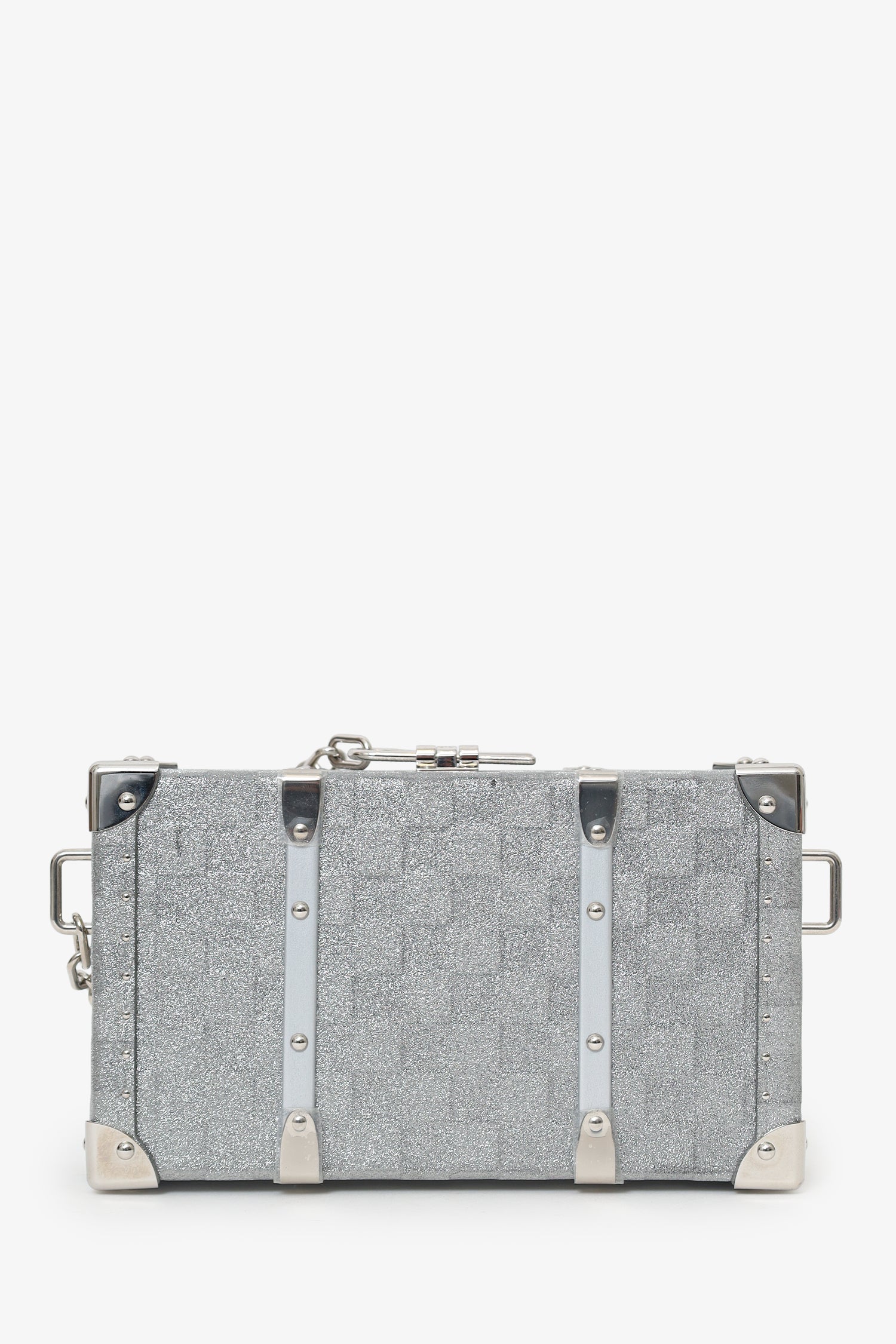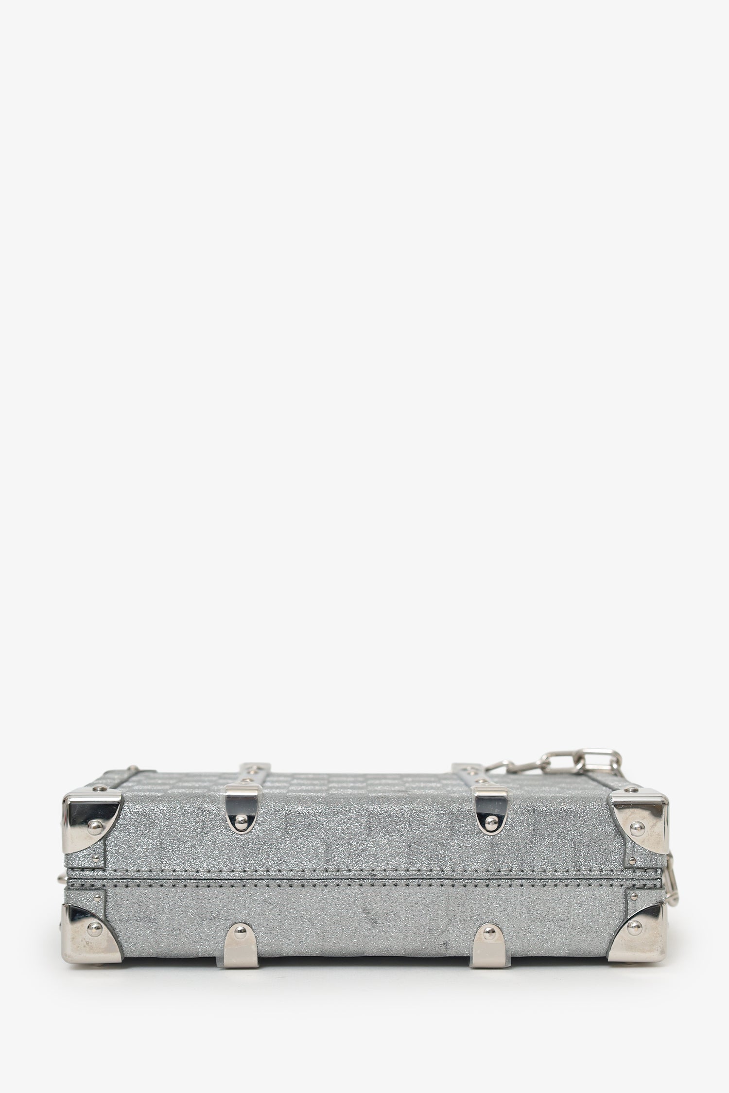 Louis Vuitton Silver Glitter Aluminum Monogram Special Order Briefcase Trunk With Strap