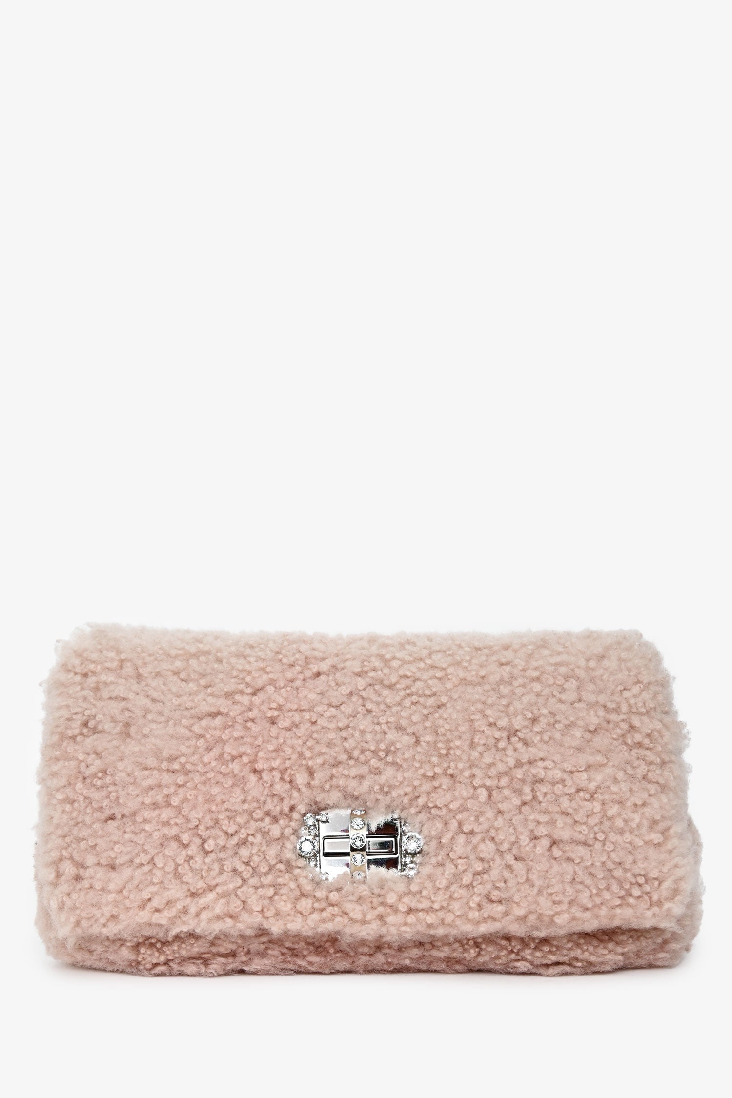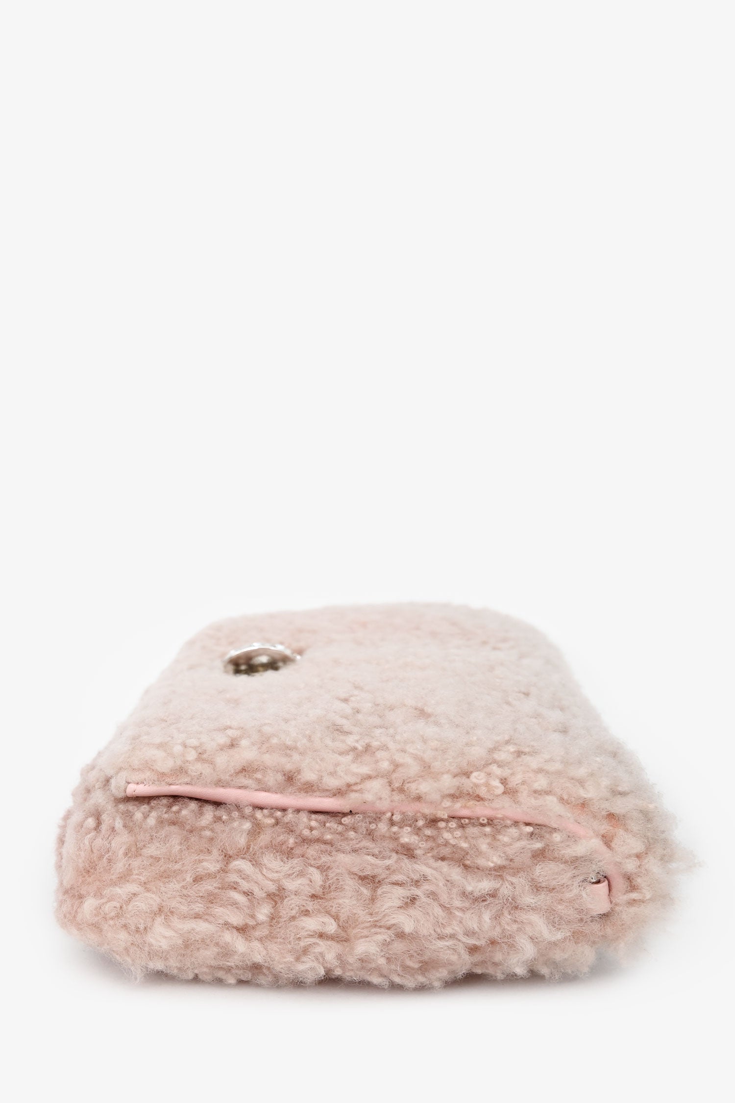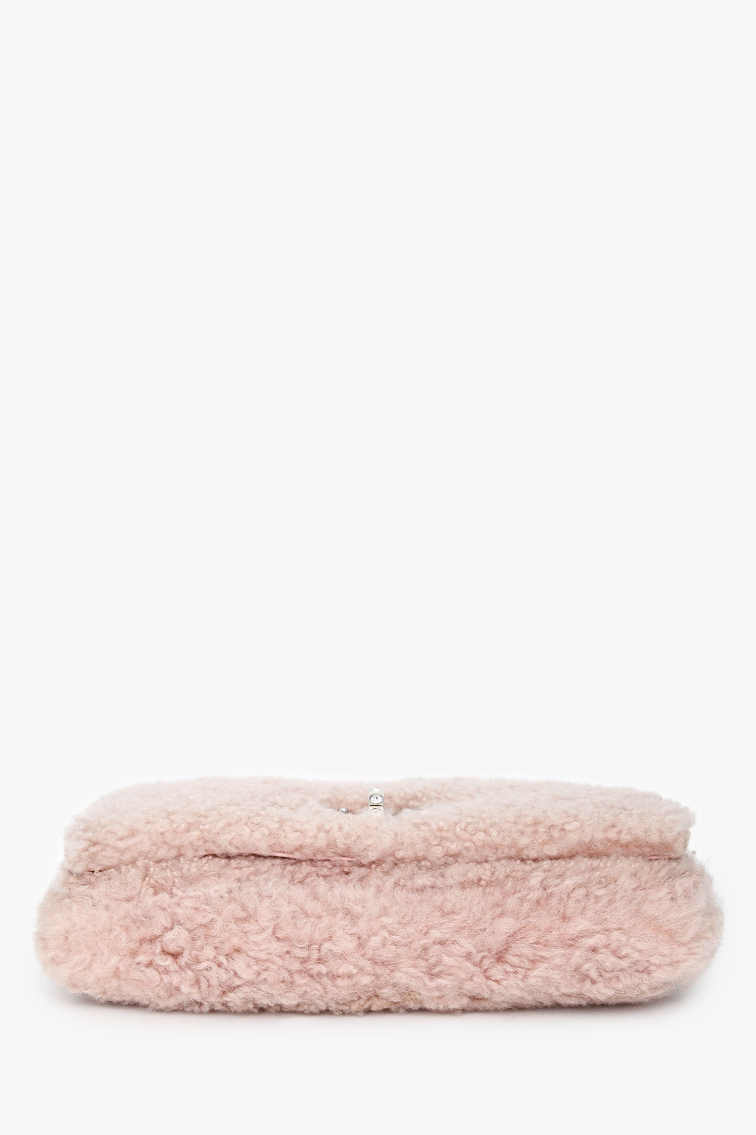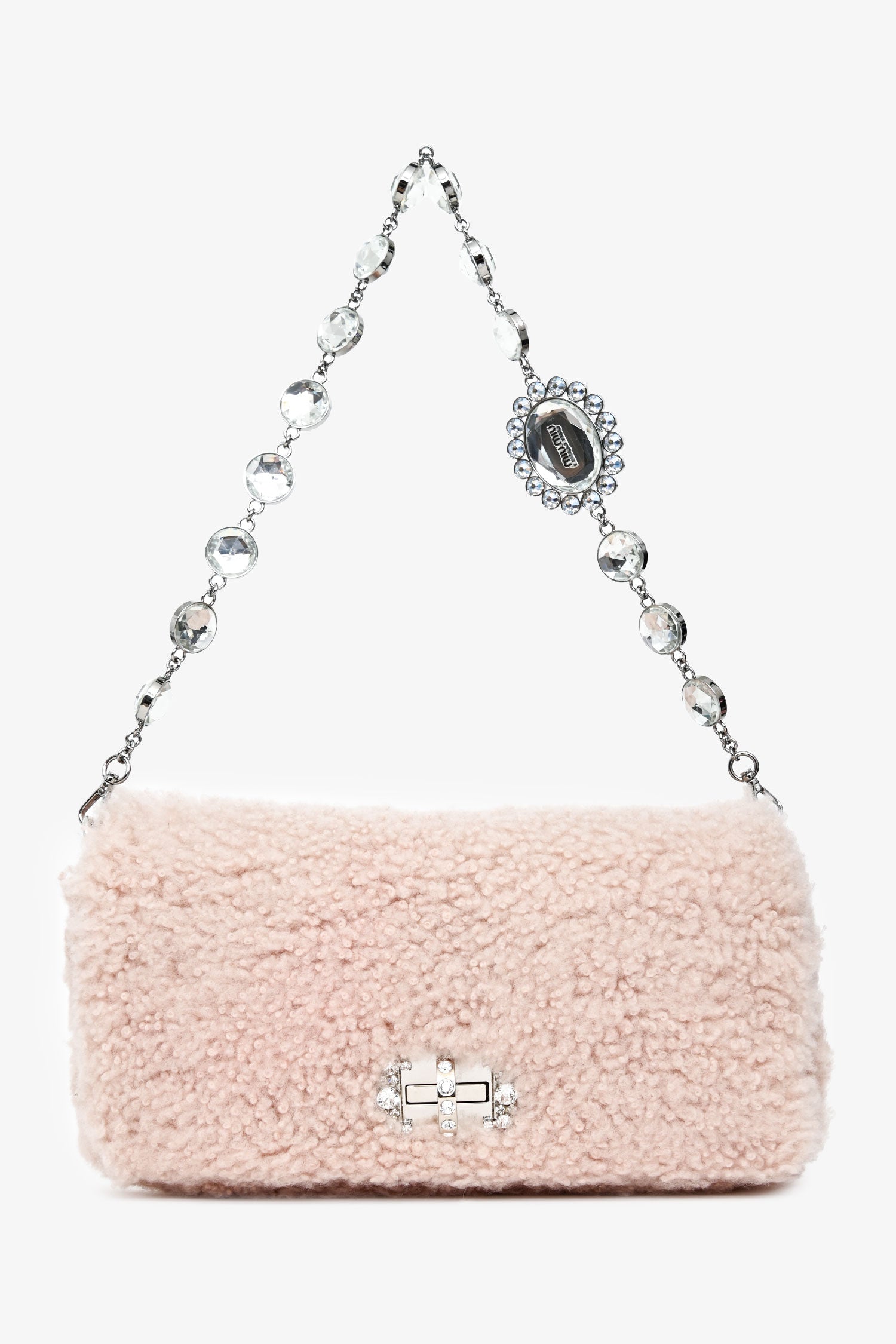 Miu Miu 2018 Pink Shearling 'Montone' Crystal Shoulder Bag