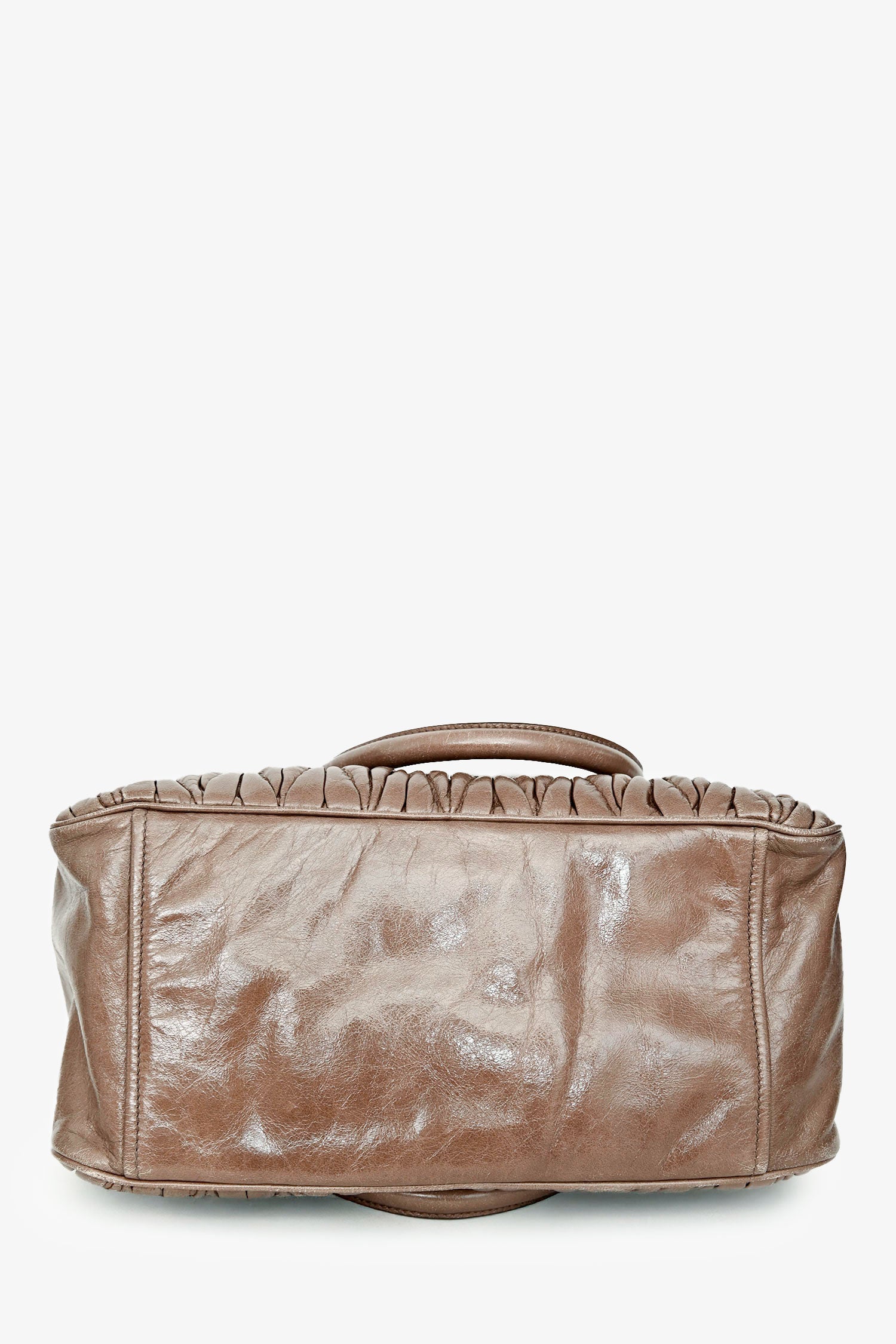 Miu Miu Dark Beige Leather Matelassé Lux 'Baulleto' Top Handle Bag