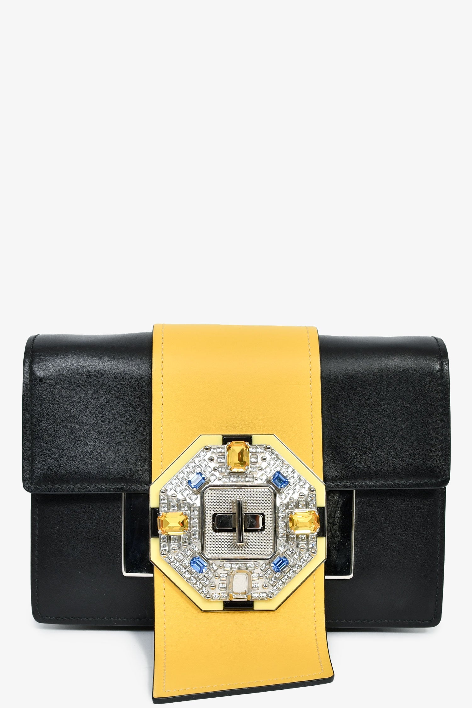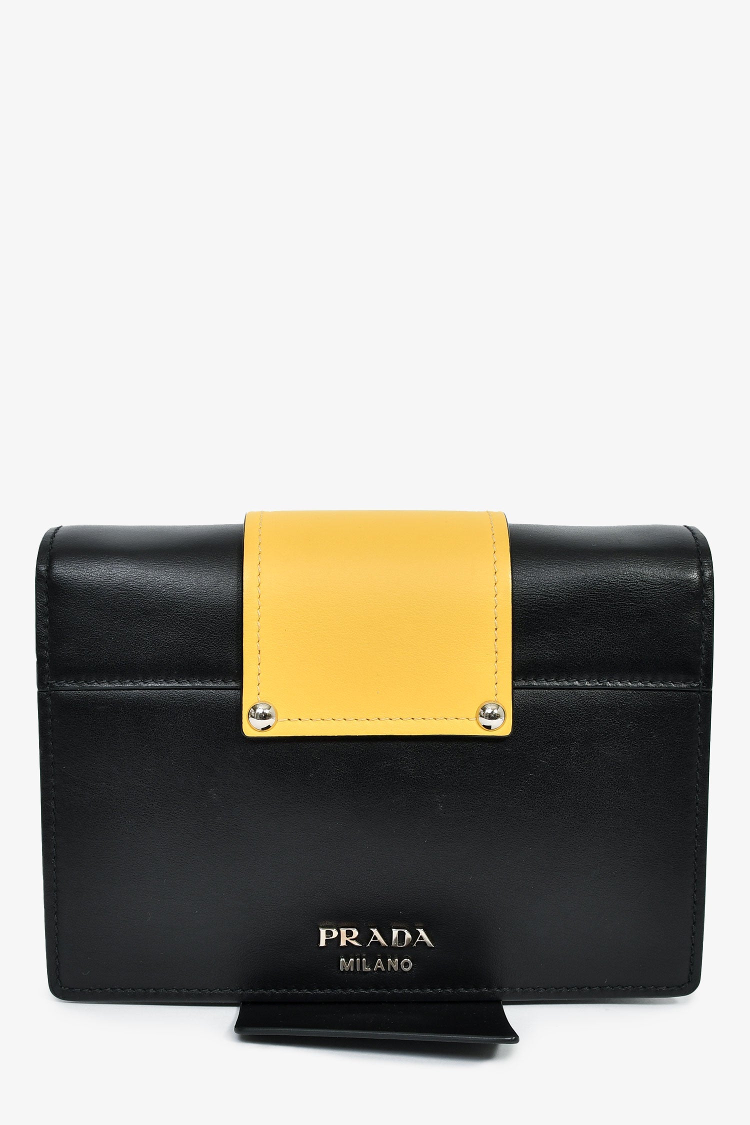 Prada Black/Yellow Leather City Calf Embellished Ribbon Chain Bag