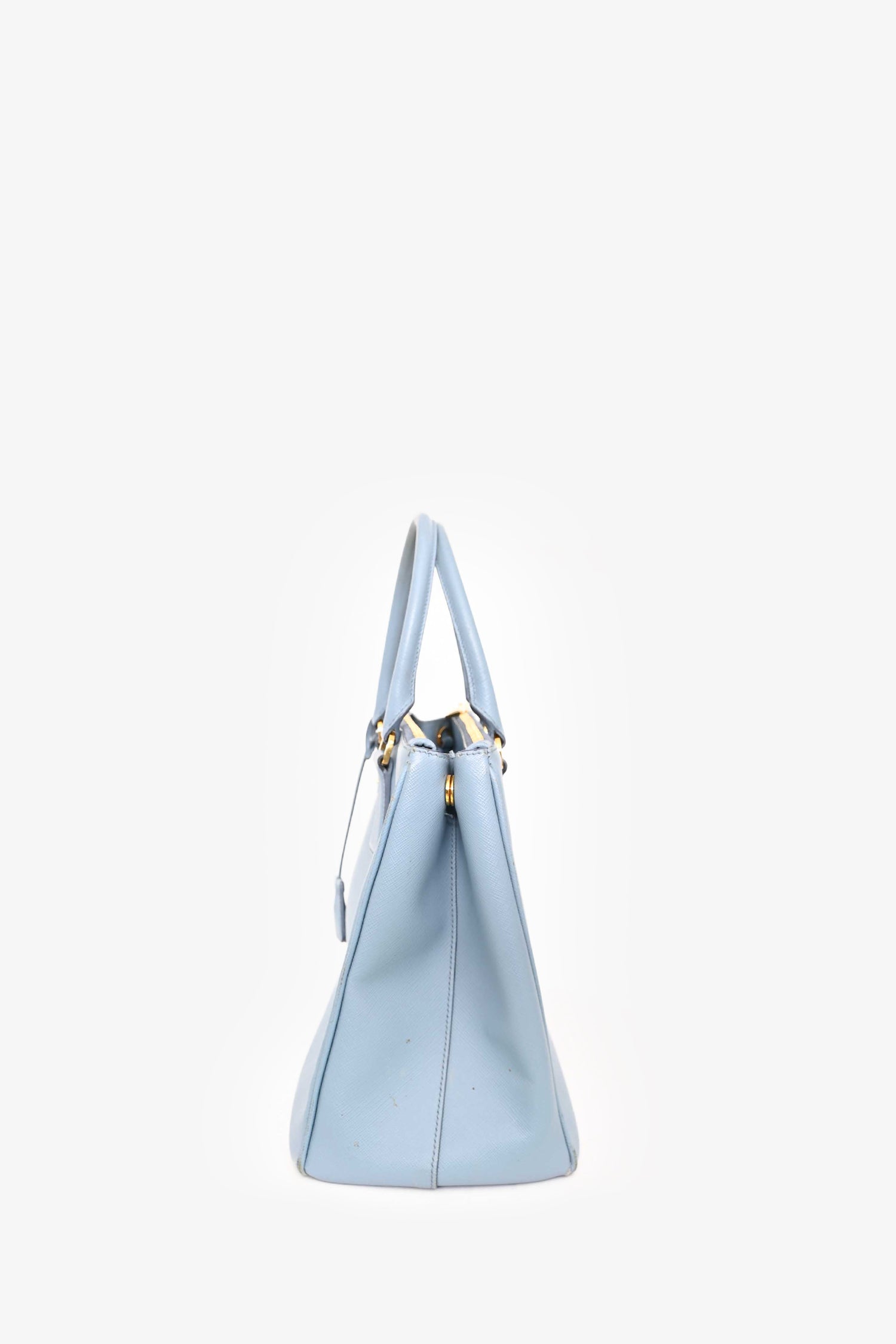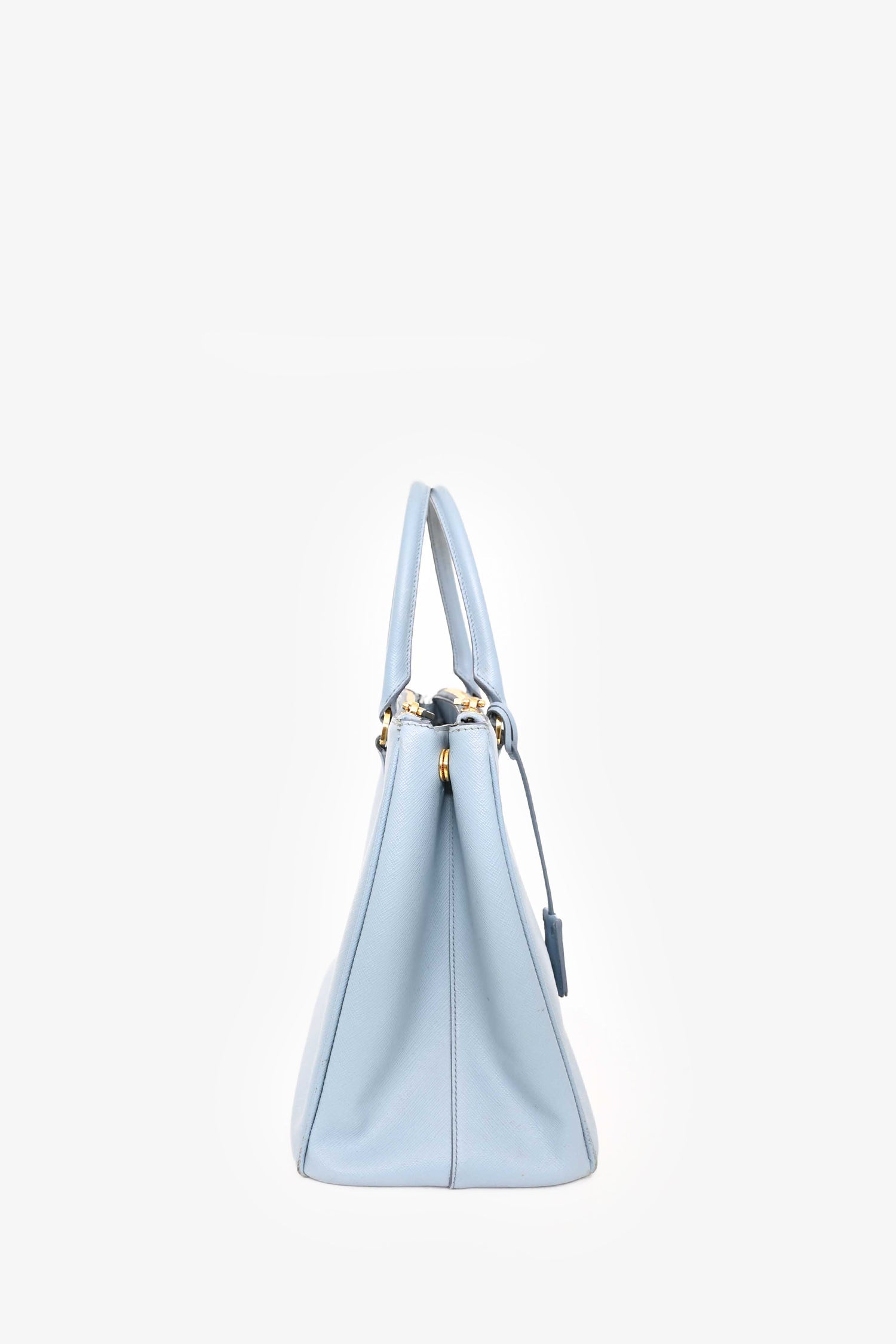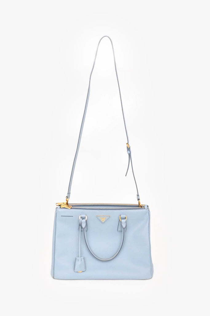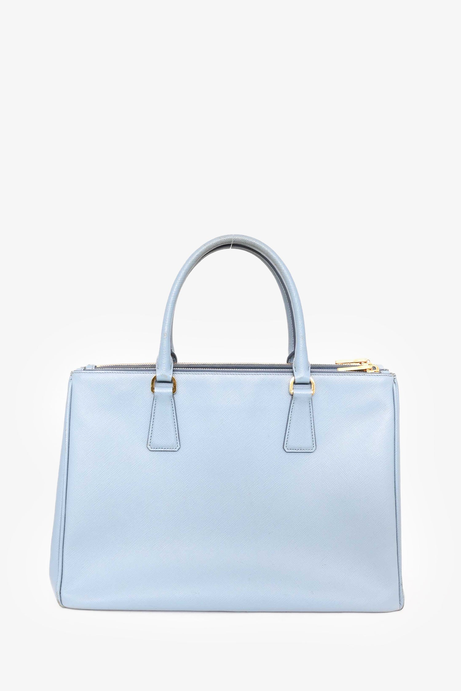Prada Light Blue Saffiano Double Zip Medium Galleria Tote