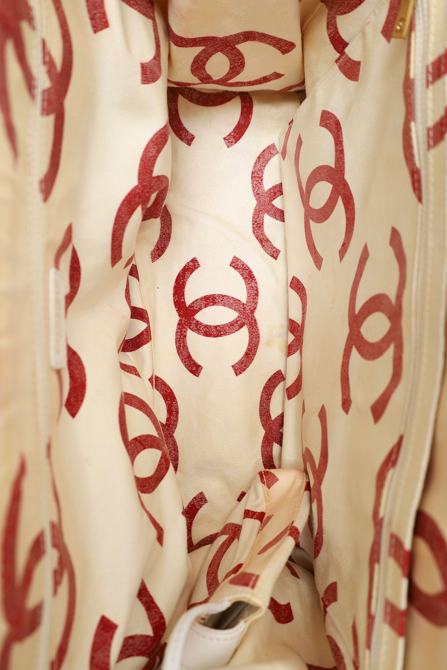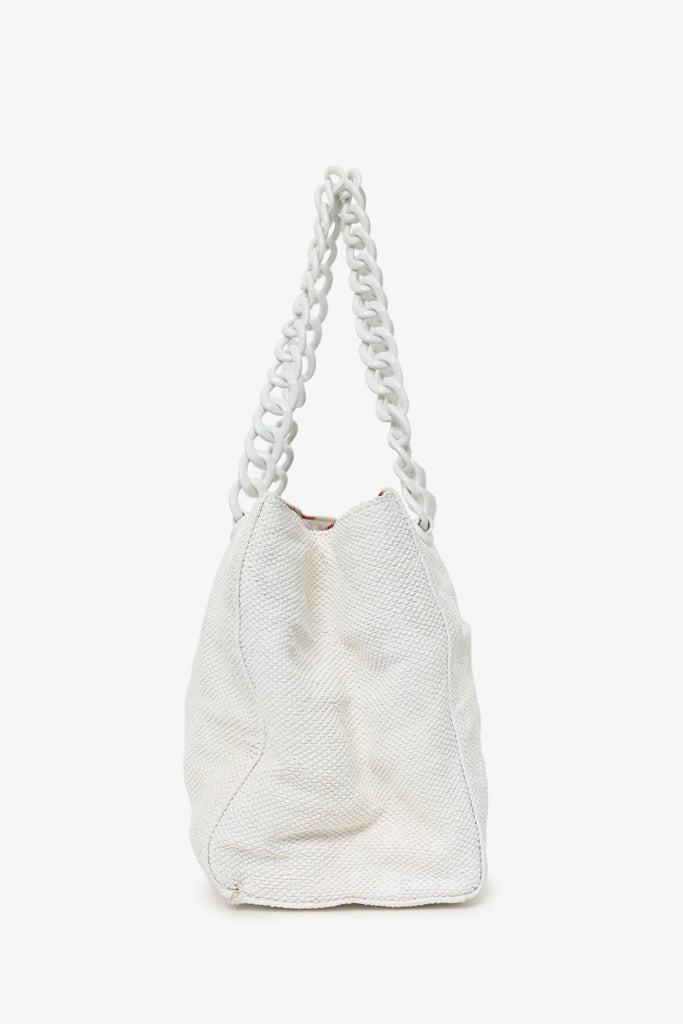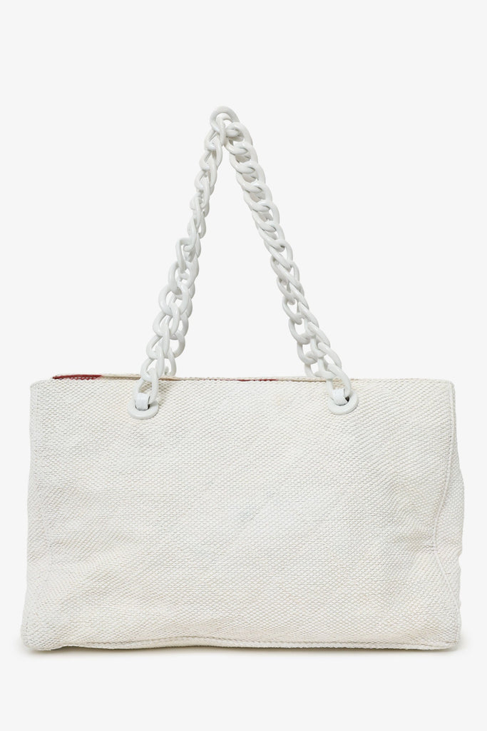 Pre-Loved Chanel™ 2000-02 White Raffia Chain Beach Tote With Pouches