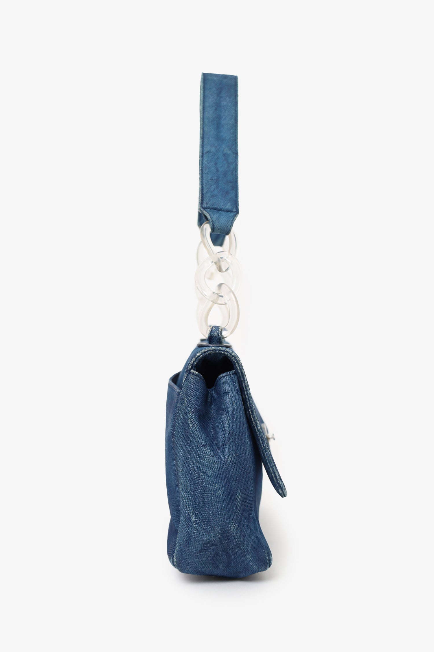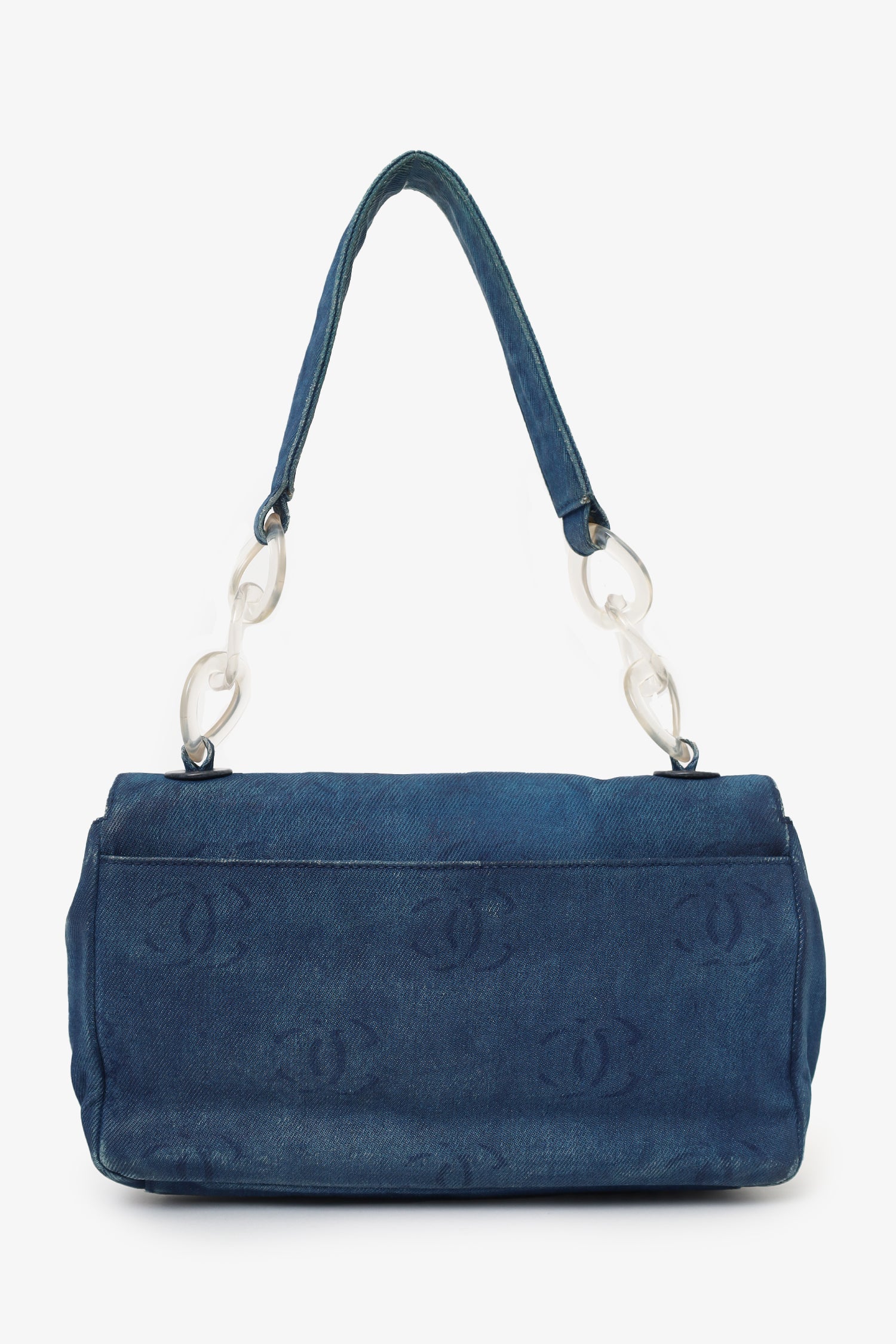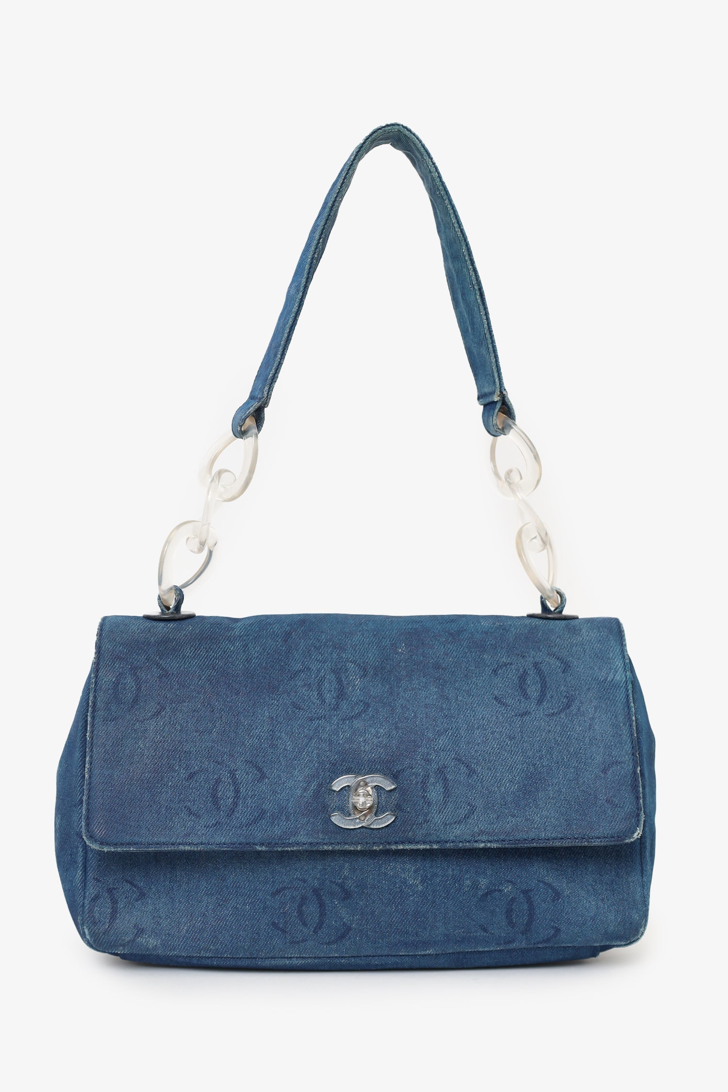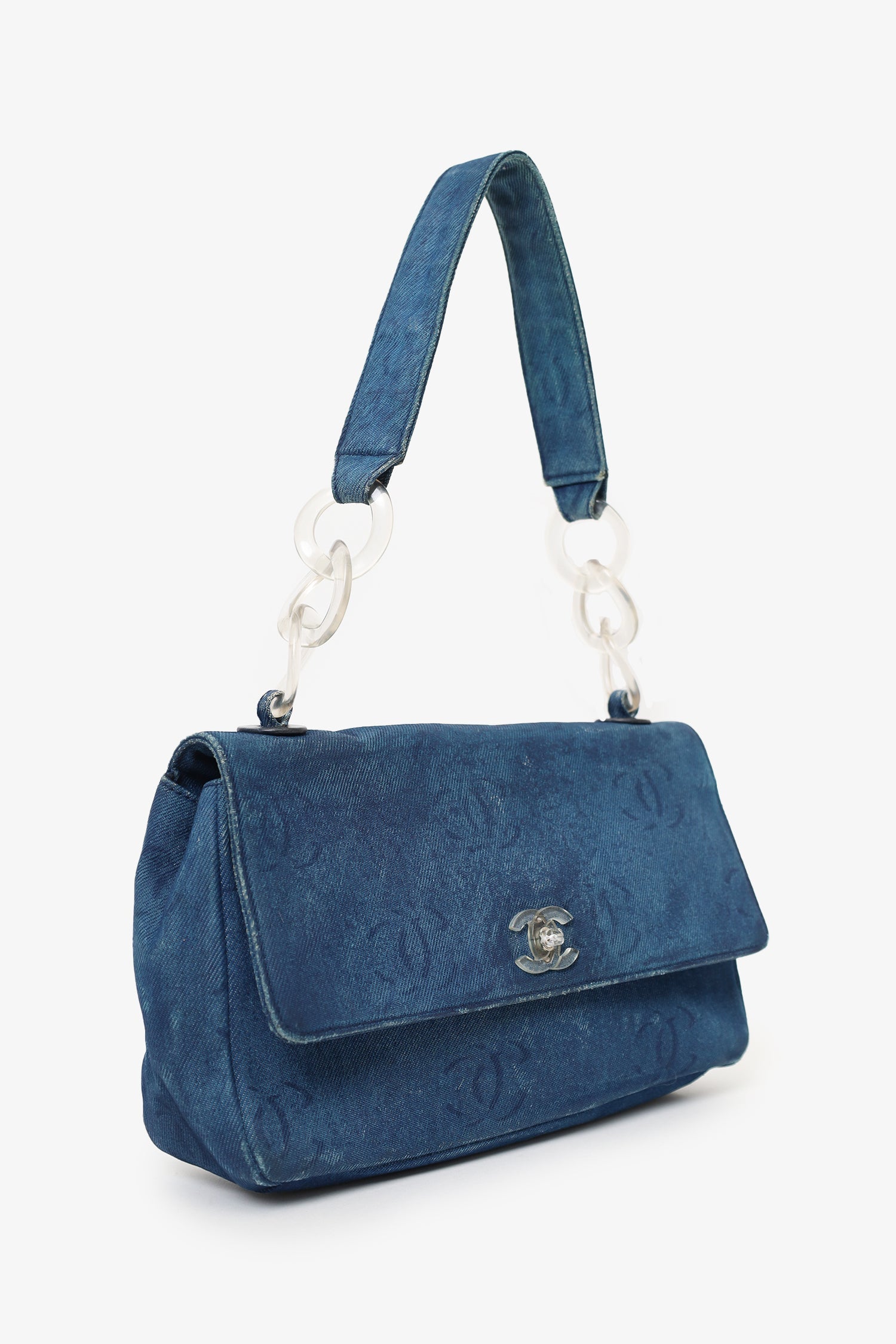 Pre-Loved Chanel™ 2002-03 Blue Denim CC Single Flap Bag