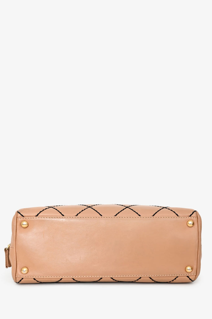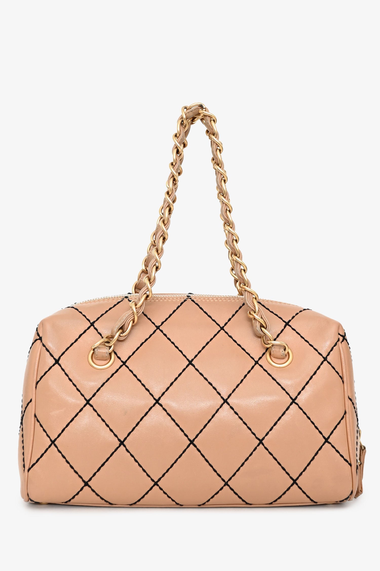 Pre-Loved Chanel™ 2003/2004 Cream Leather Wild Stitch Surpique Bowler Bag