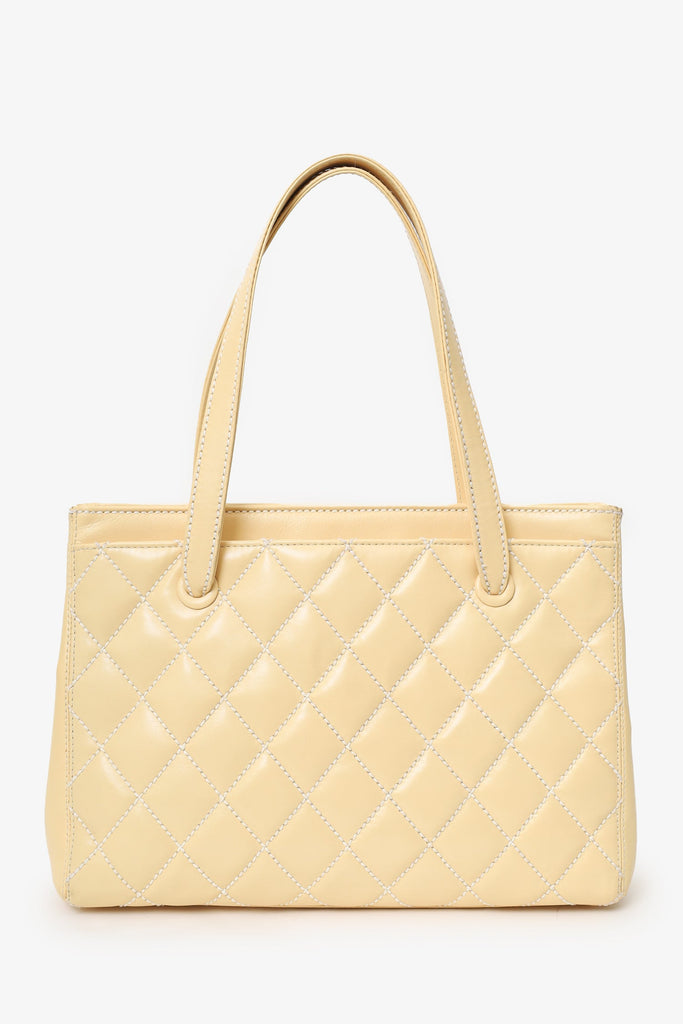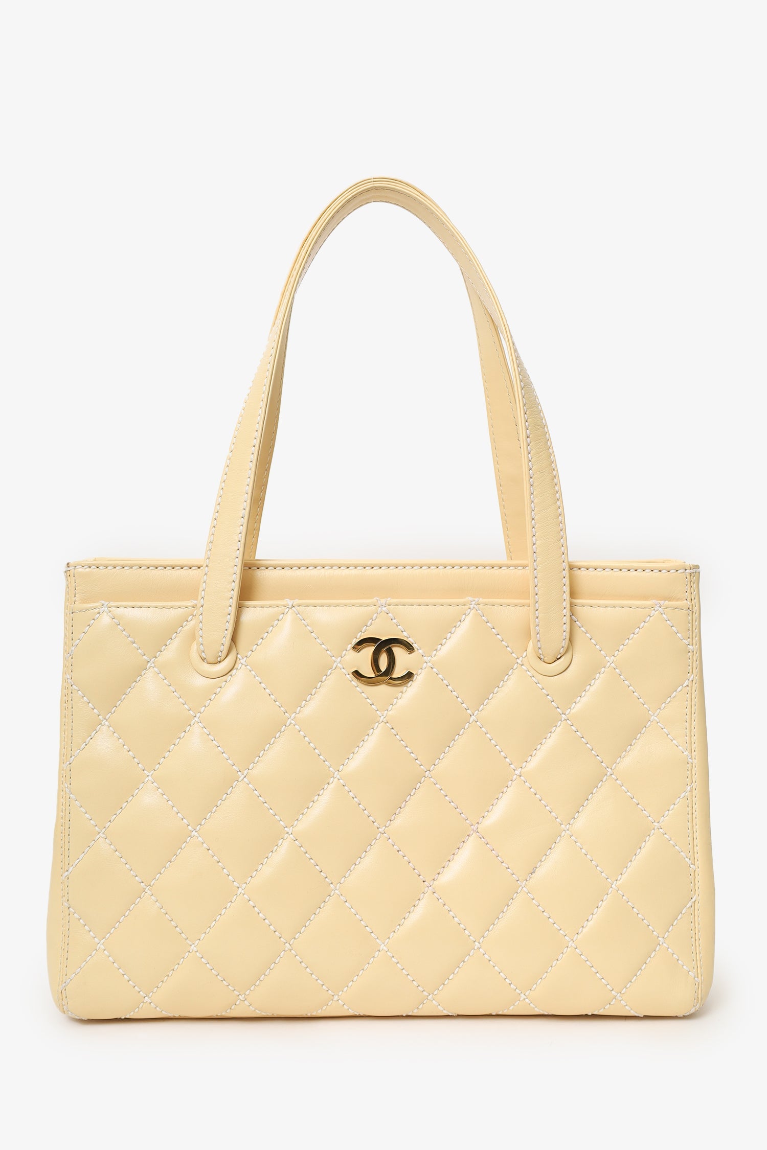 Pre-Loved Chanel™ 2004-05 Beige Leather Wild Stitch Surpique Tote Bag