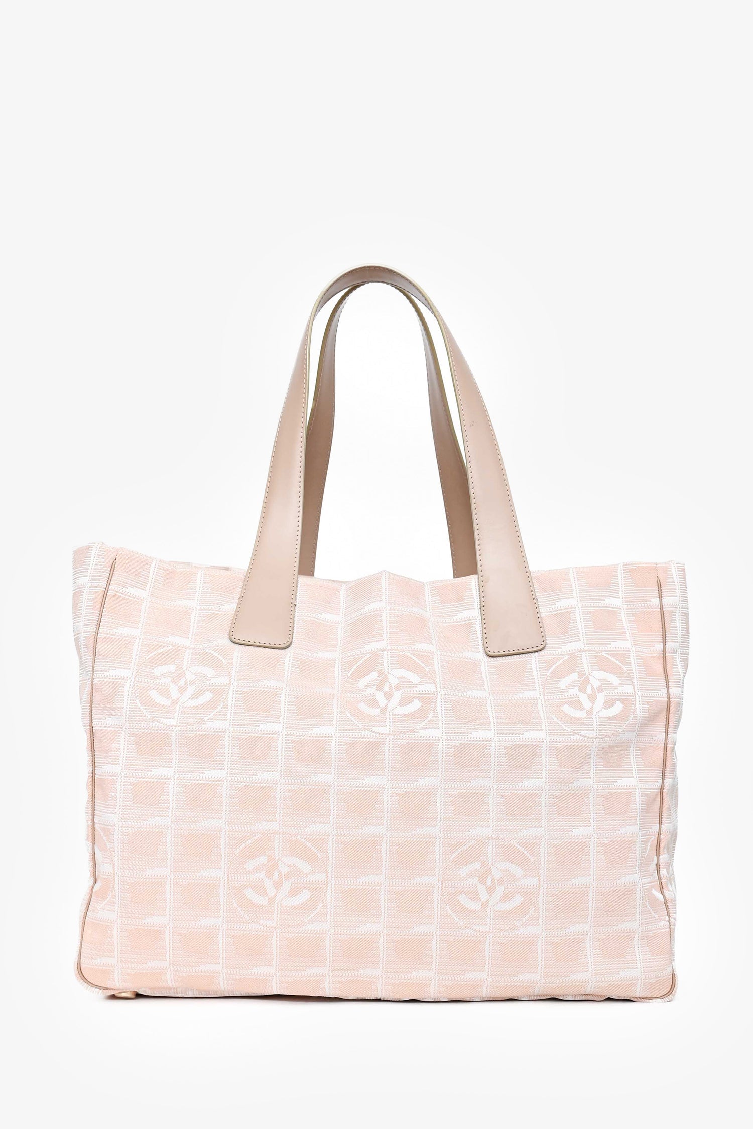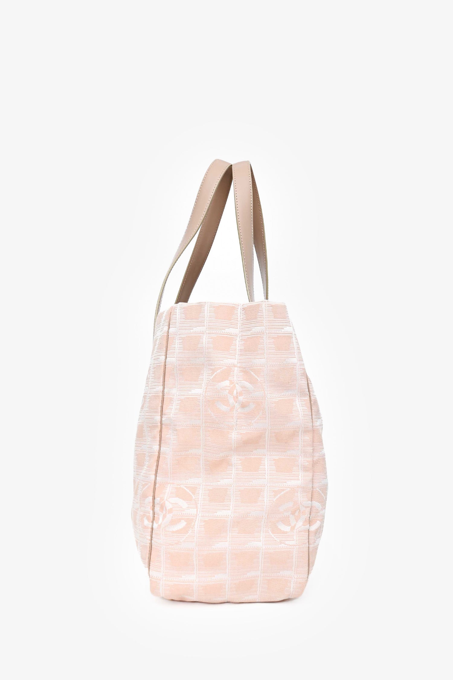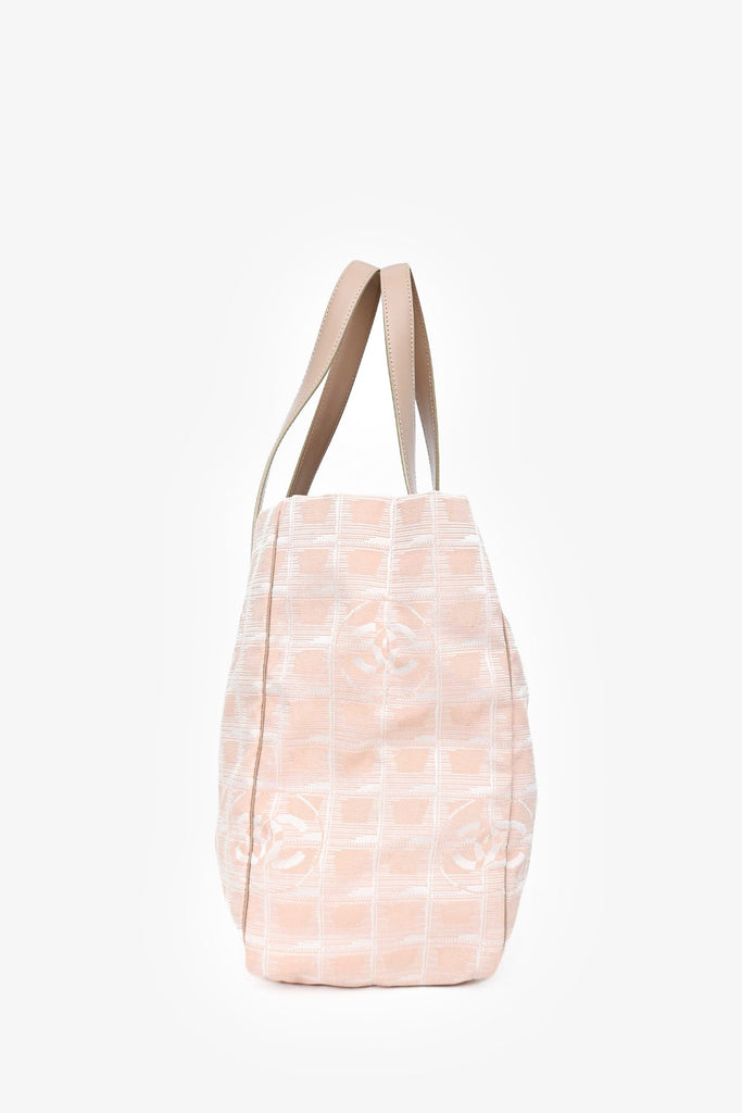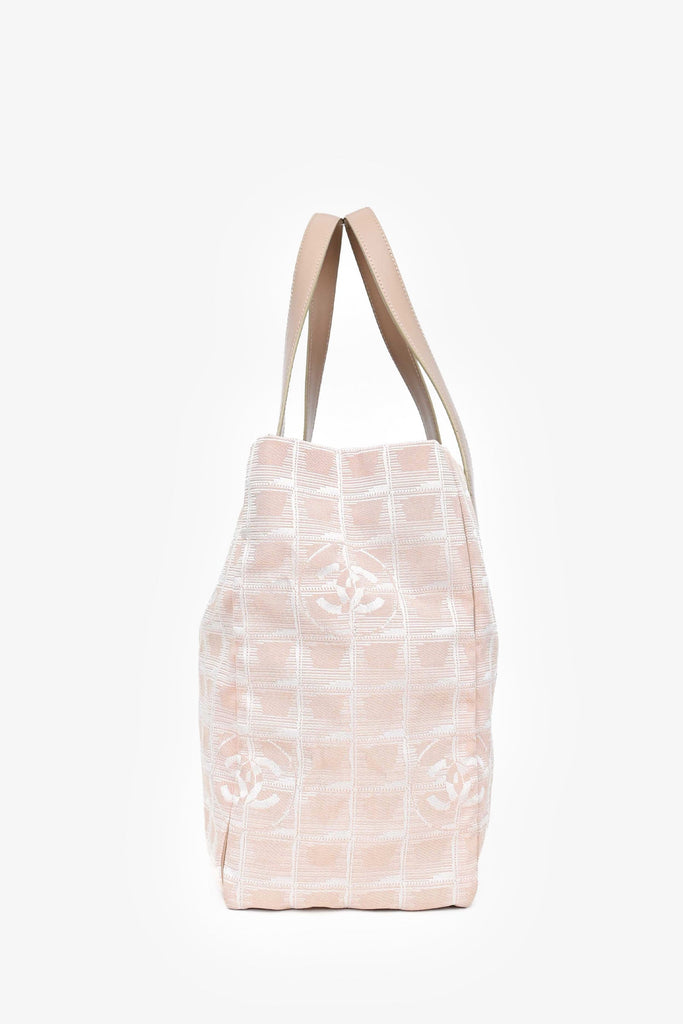 Pre-Loved Chanel™ 2004-5 Pink Canvas Travel Ligne CC Logo Tote. Dual flat shoulder straps. Top zip closure. Fabric-lined interior with two zipped pockets. Tonal stitching.