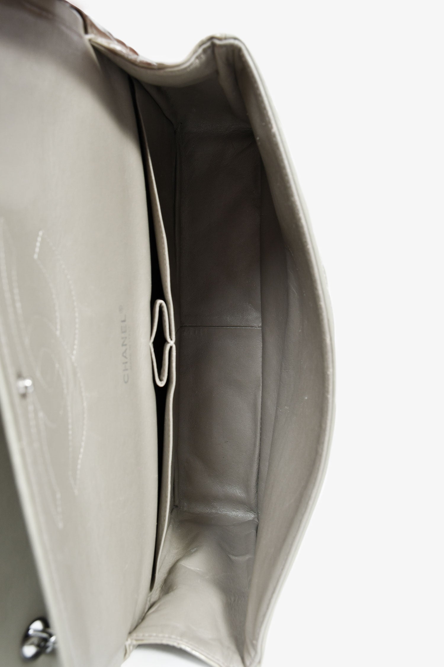 Pre-Loved Chanel™ 2012/13 Grey Patent Quilted Maxi Double Flap Shoulder Bag