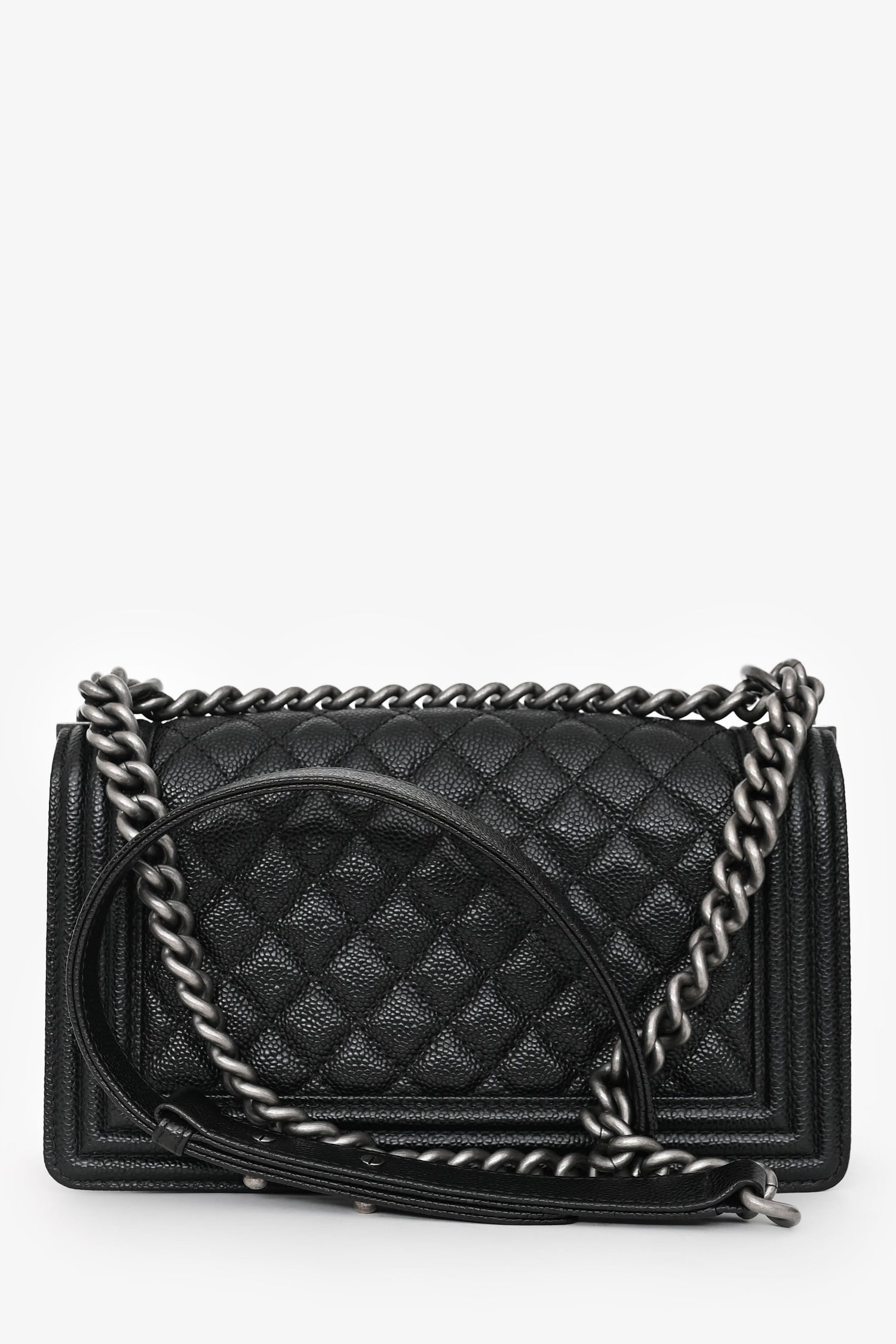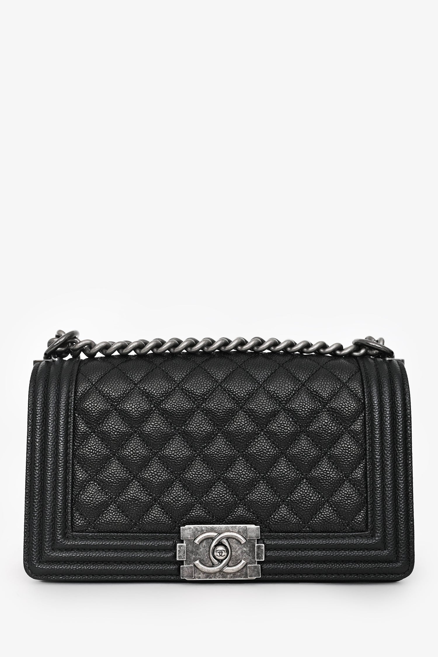 Pre-Loved Chanel 2014 Black Caviar Old Medium Boy Bag