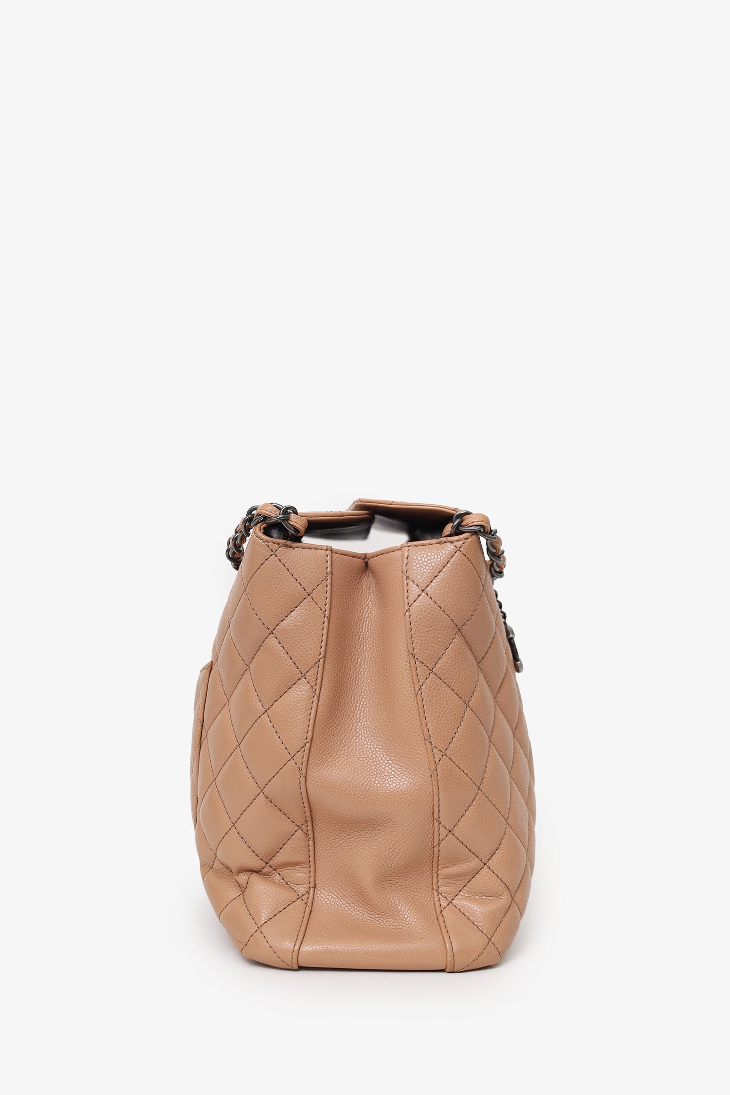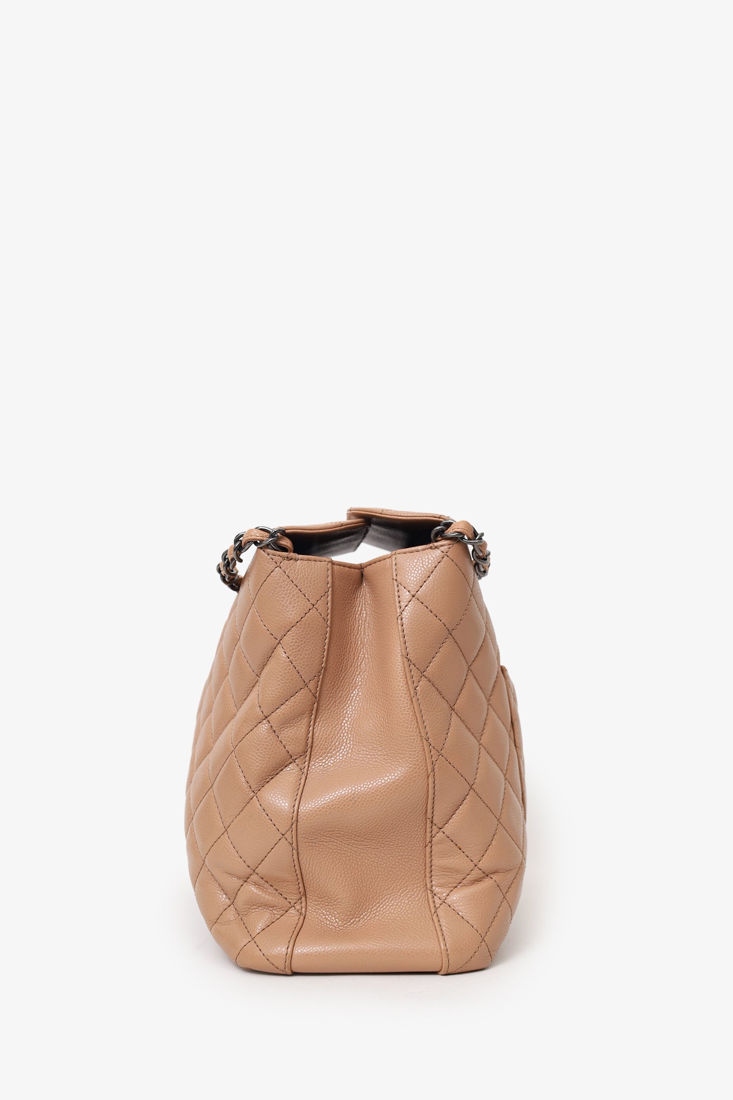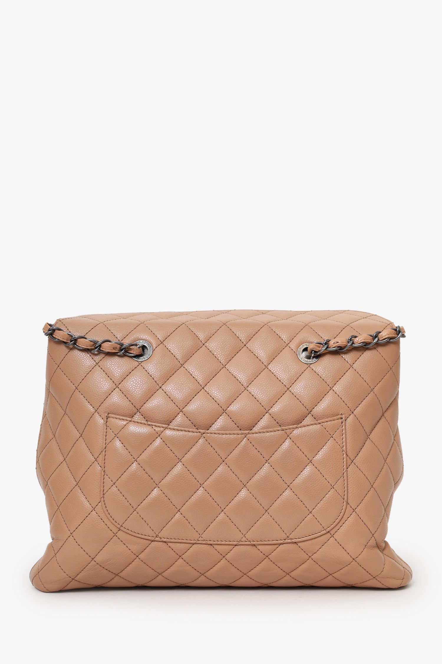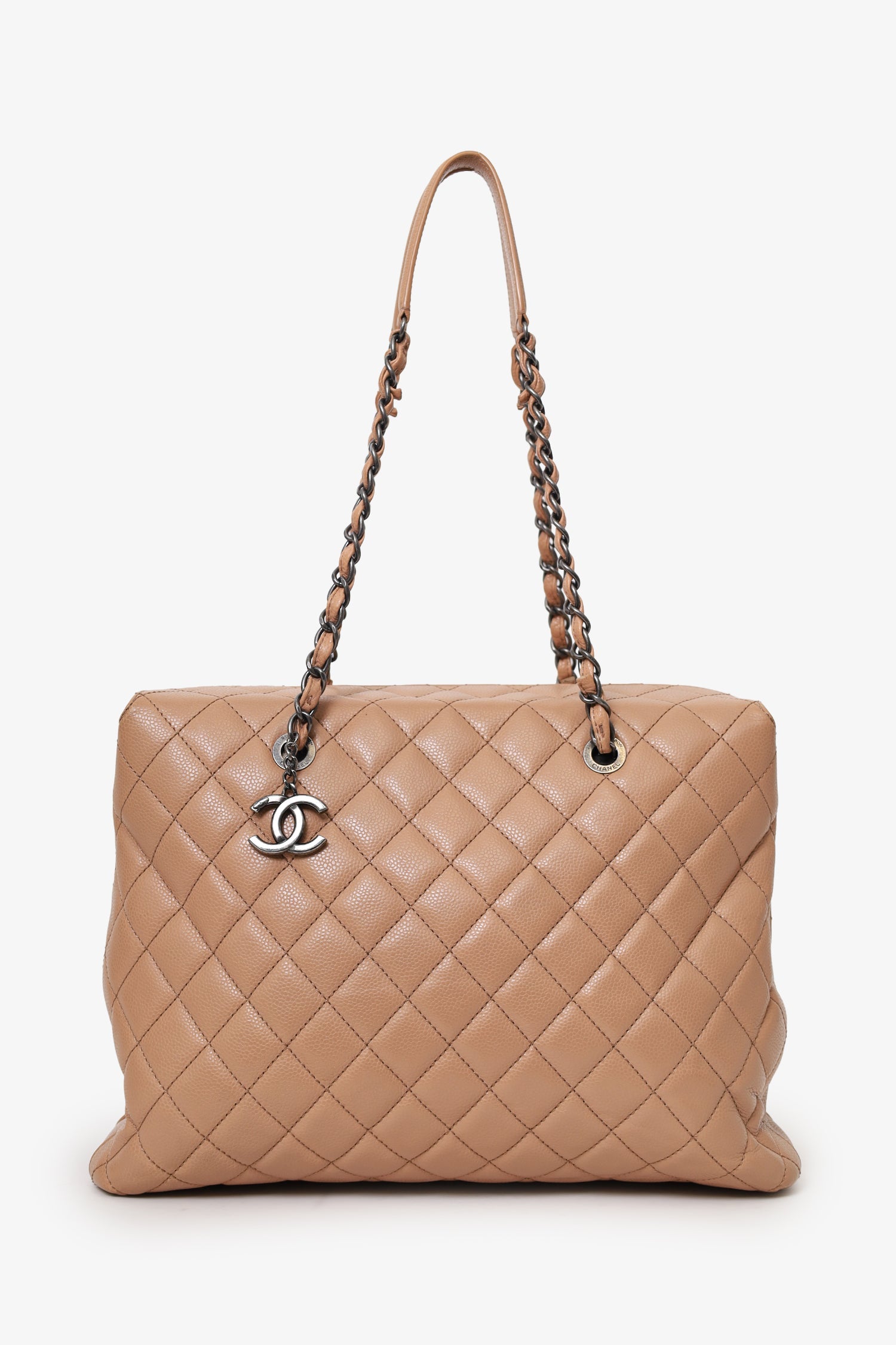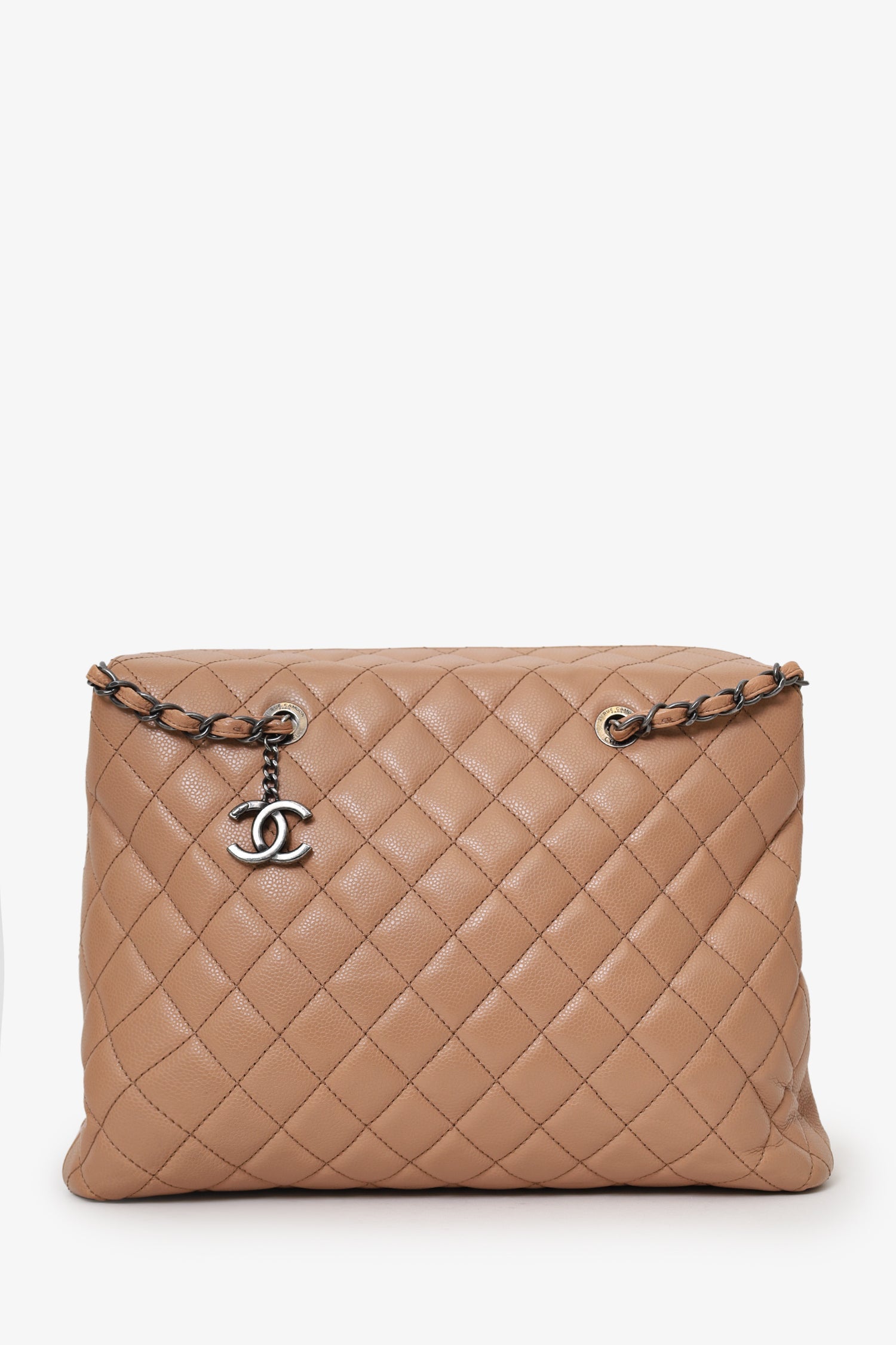 Pre-Loved Chanel™ 2015-16 Beige Caviar Leather Quilted City Large Shopping Tote