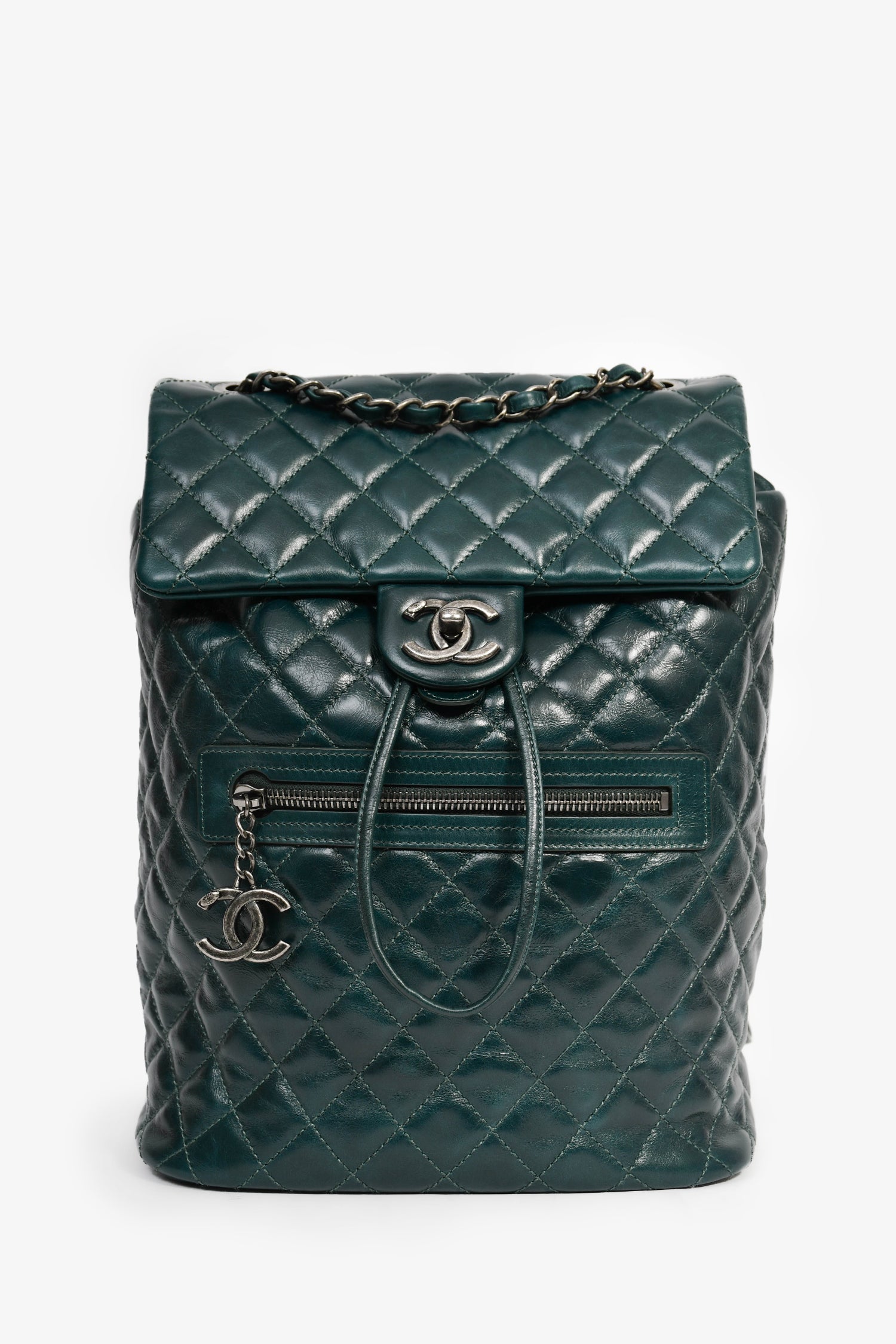 Pre-Loved Chanel™ 2015-16 Green Glazed Calfskin Quilted Small Salzburg Mountain Backpack