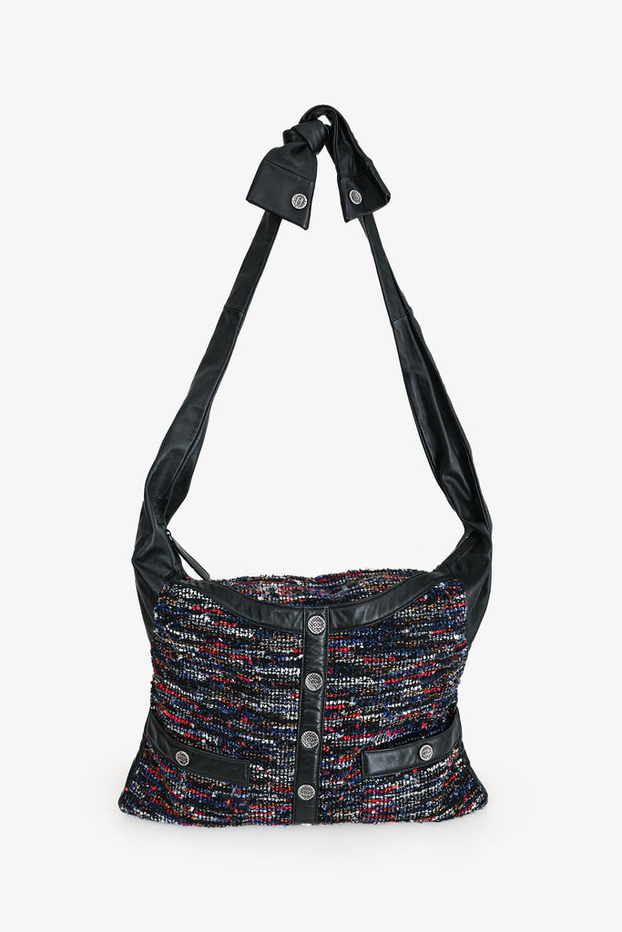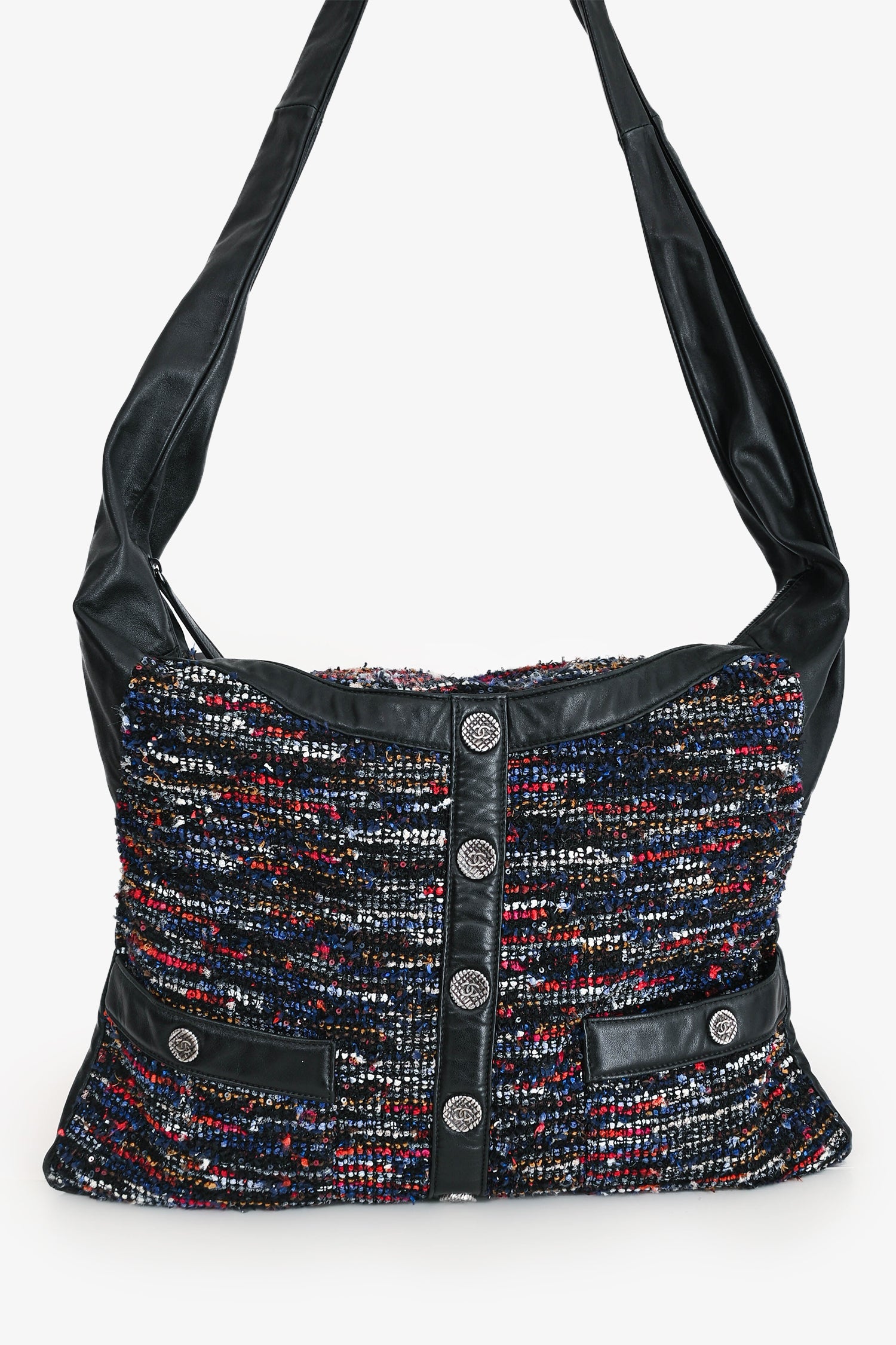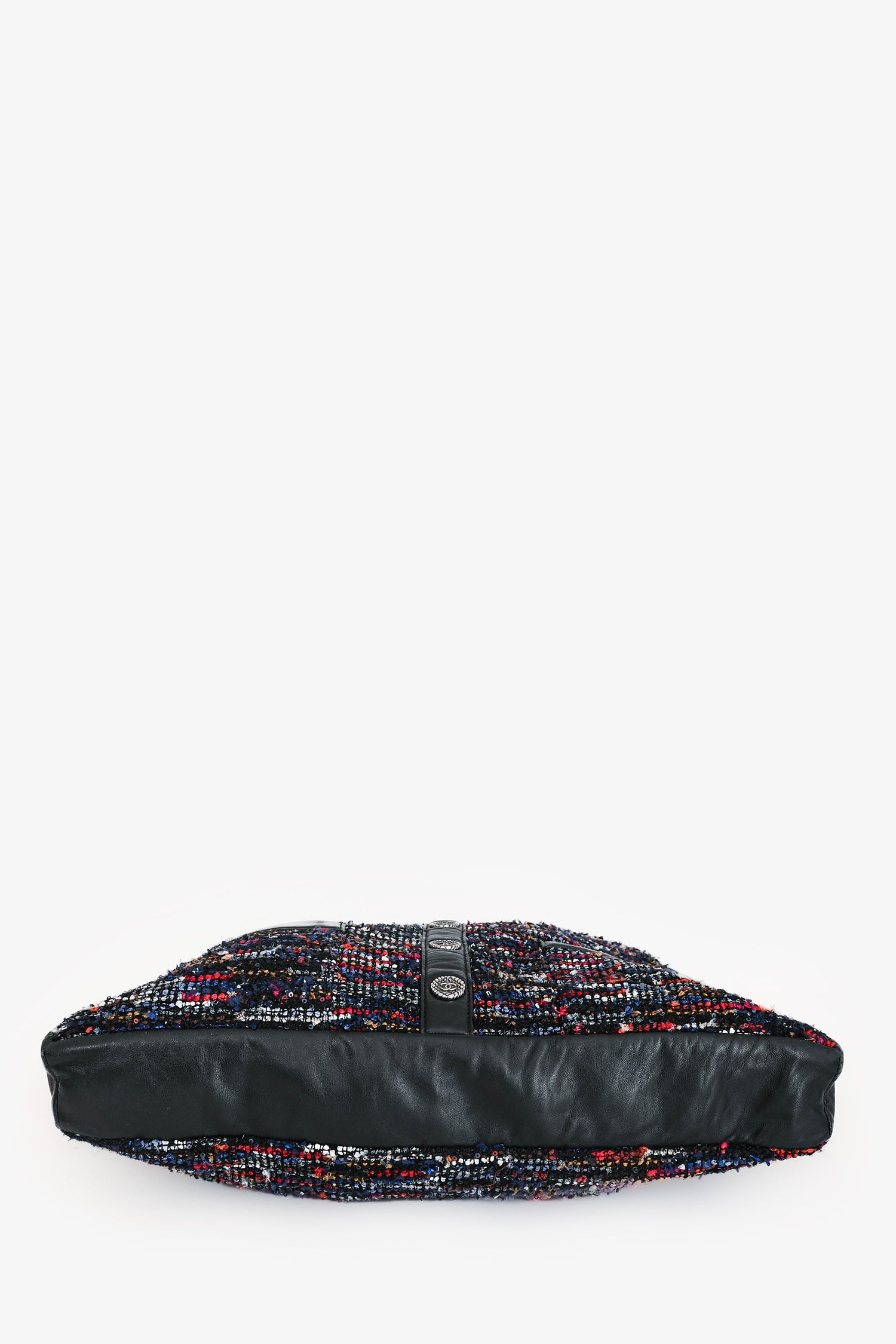 Pre-Loved Chanel™ 2015-2016 Tweed Girl Messenger Bag. Top zip closure. Black textile interior lining. Single interior wall zip pocket. Front exterior pockets with snap-button closure. Silver-tone hardware.