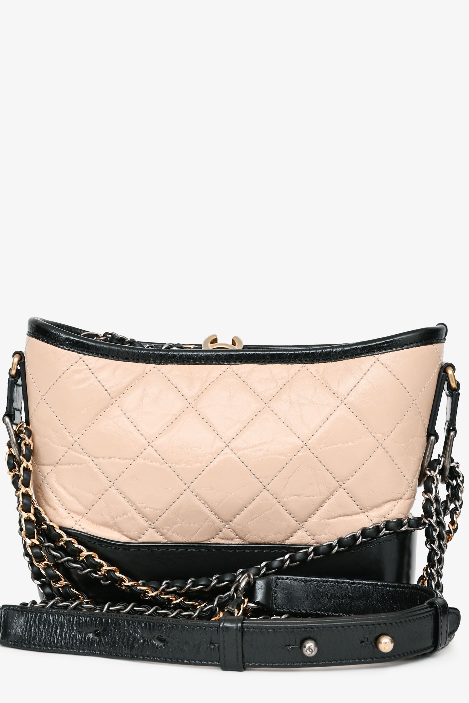 Pre-Loved Chanel™ 2017-18 Beige/Black Leather Small Gabrielle Chain Bag