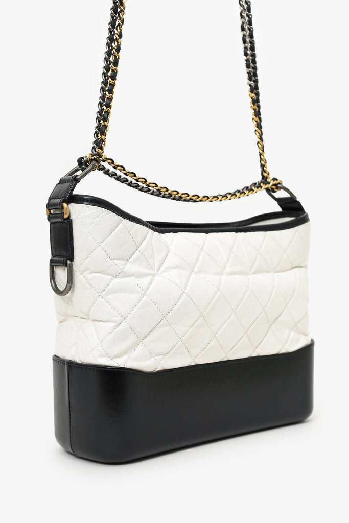 Pre-Loved Chanel™ 2017 Black/White Quilted Lambskin Leather Medium Gabrielle Bag