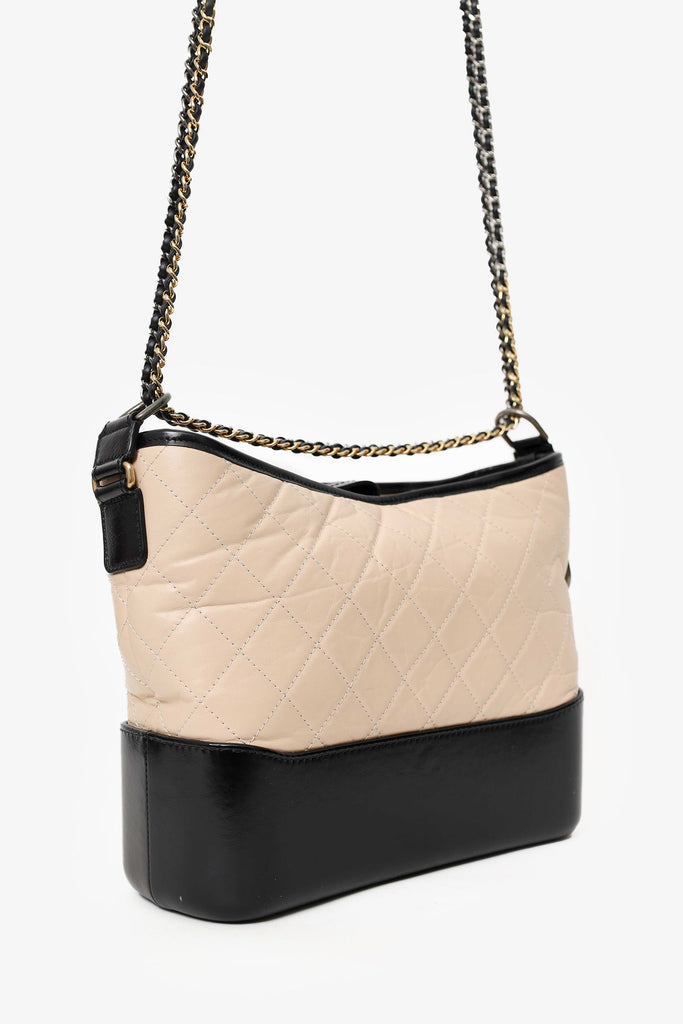 Pre-Loved Chanel™ 2018-19 Beige/Black Leather Medium Gabrielle Chain Bag