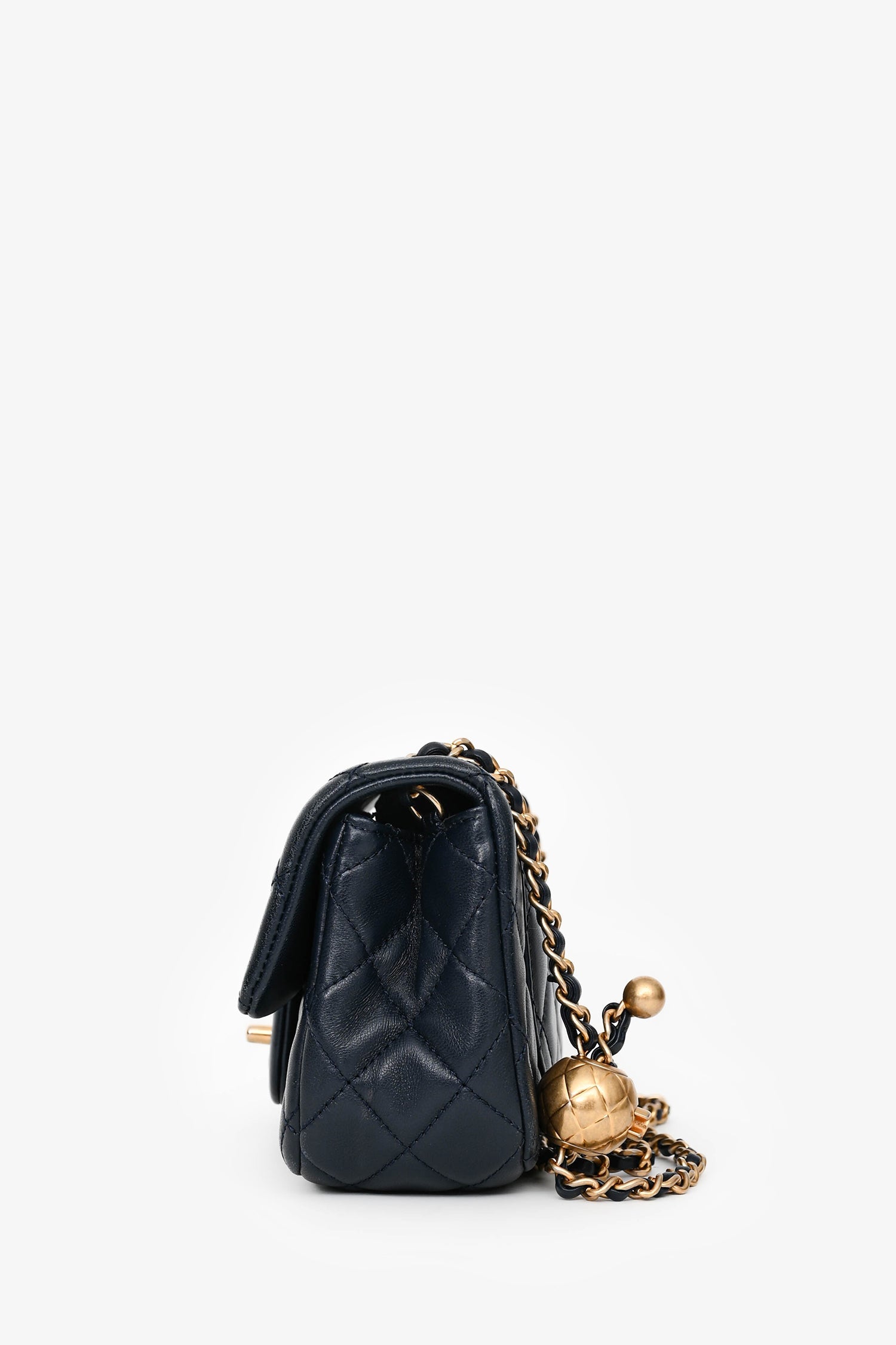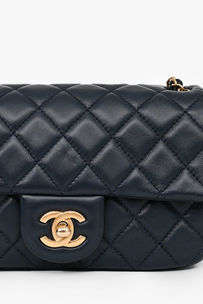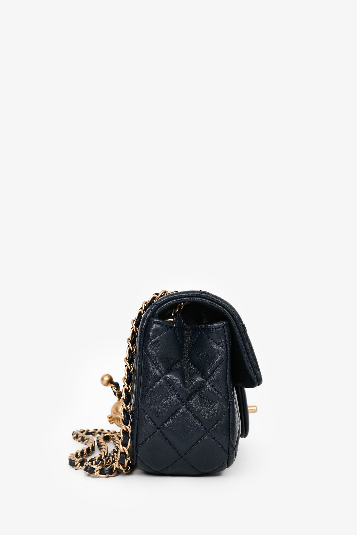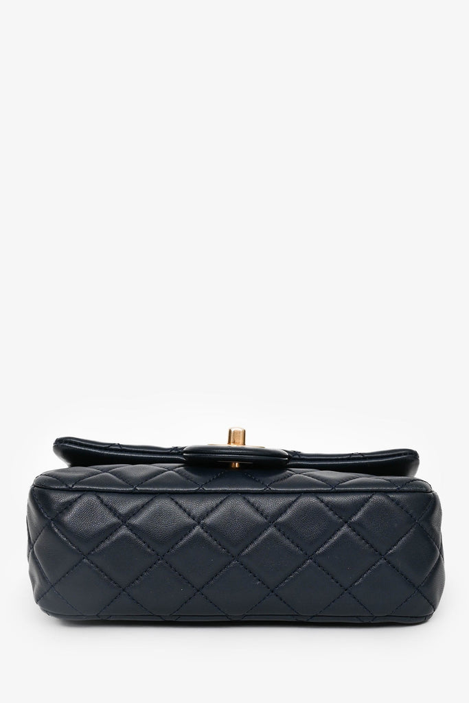 Pre-Loved Chanel™ 2019-20 Navy Lambskin Leather Mini Rectangular Pearl Crush Flap Bag