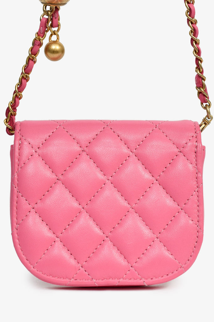 Pre-Loved Chanel™ 2019 Pink Lambskin Mini Pearl Crush Waist Bag