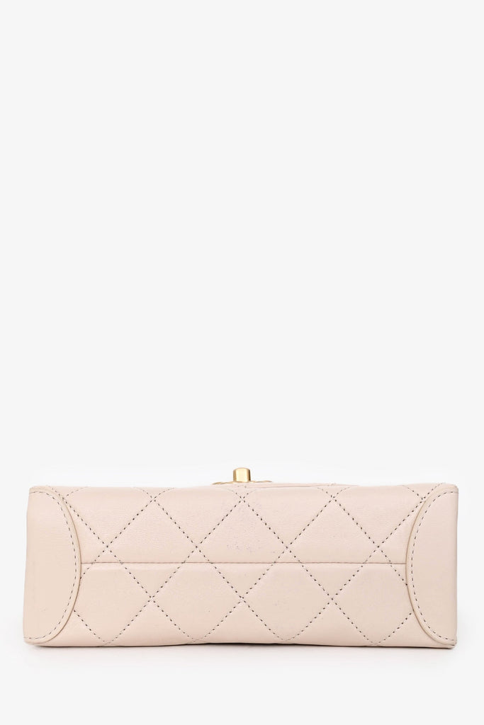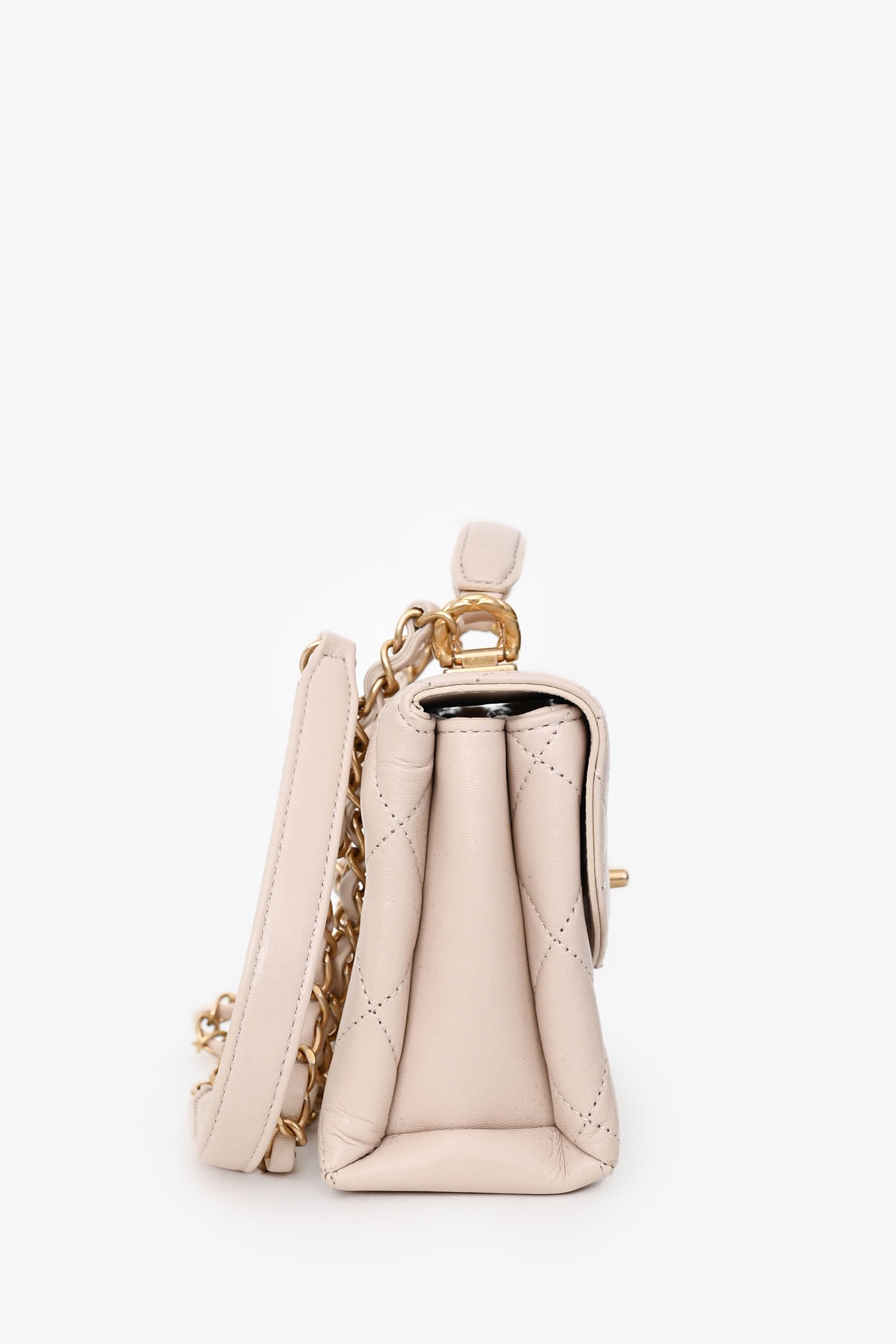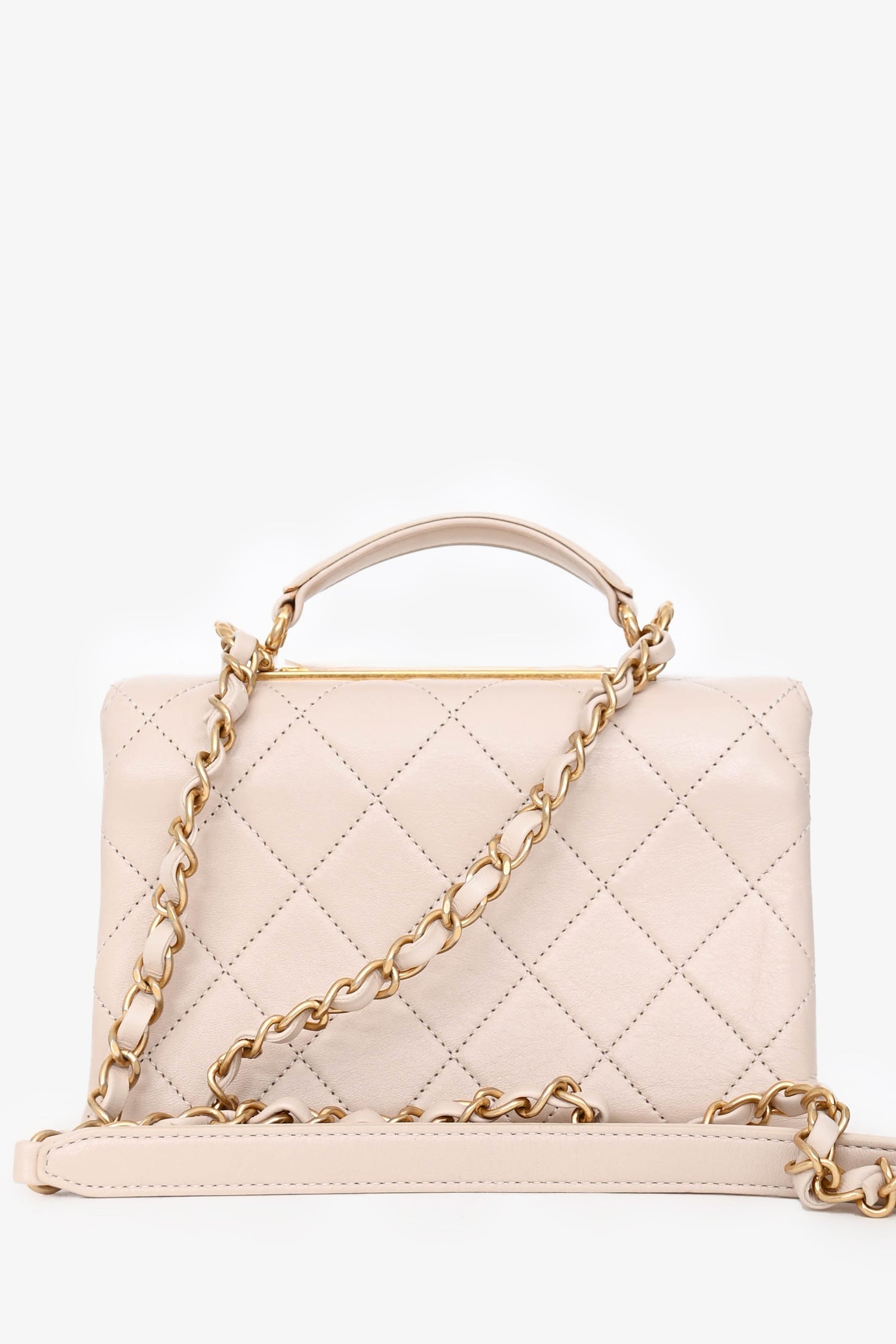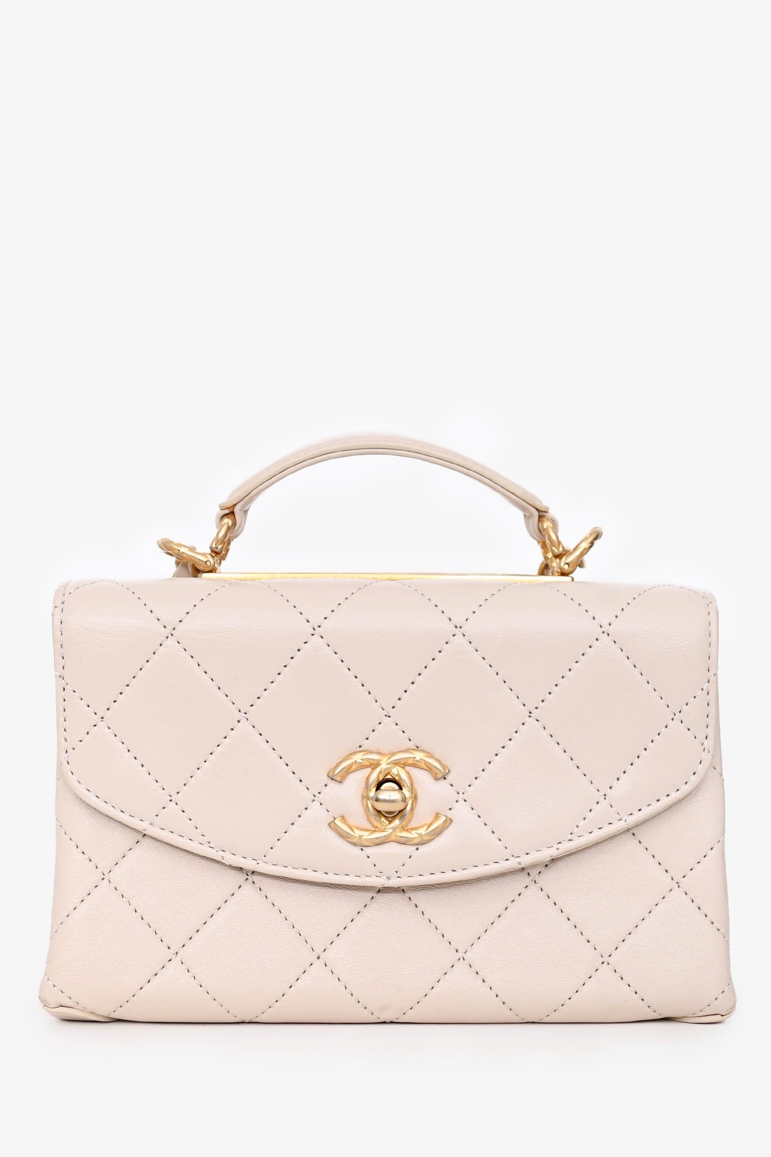 Pre-Loved Chanel™ 2020 Beige Lambskin Mini Top Handle Bag with Quilted Gold Hardware