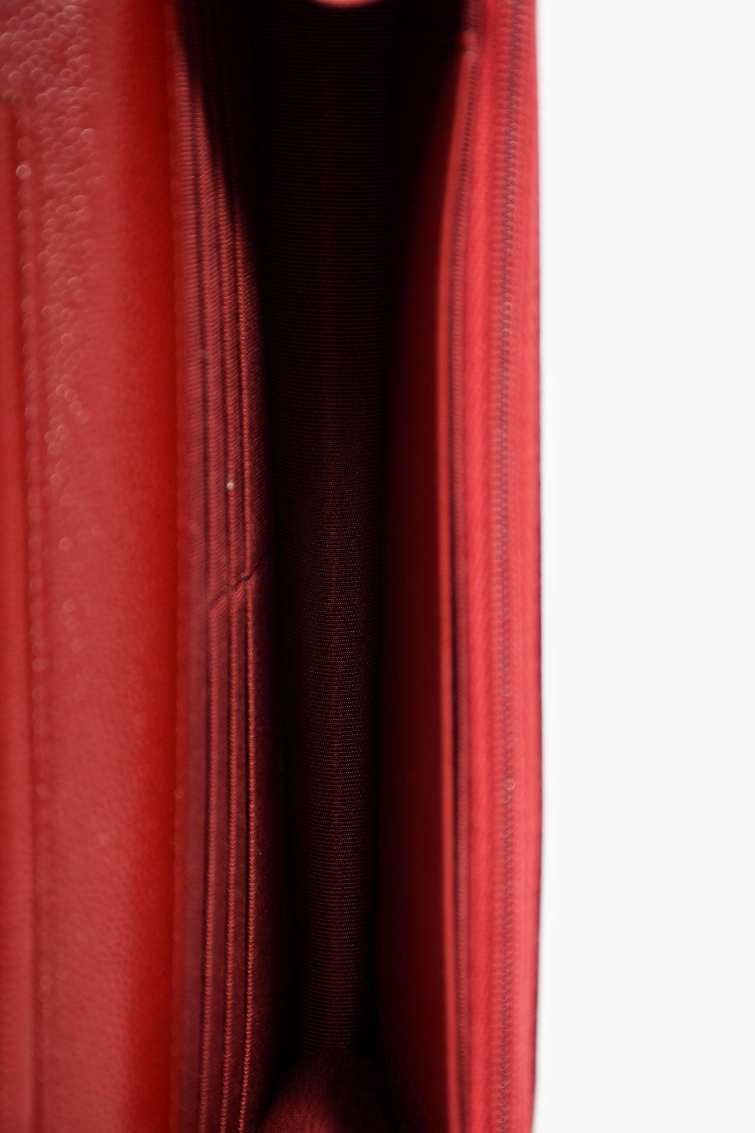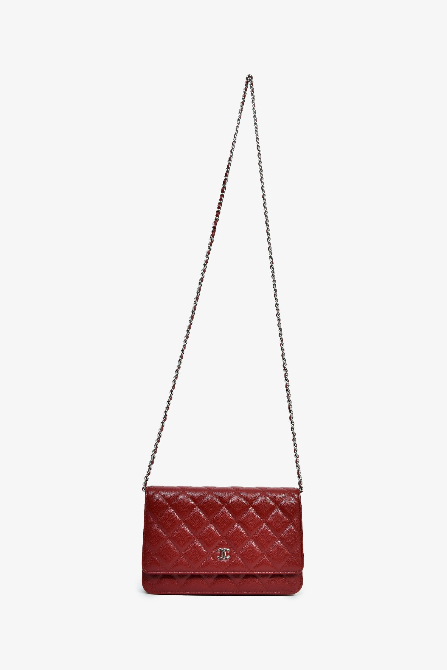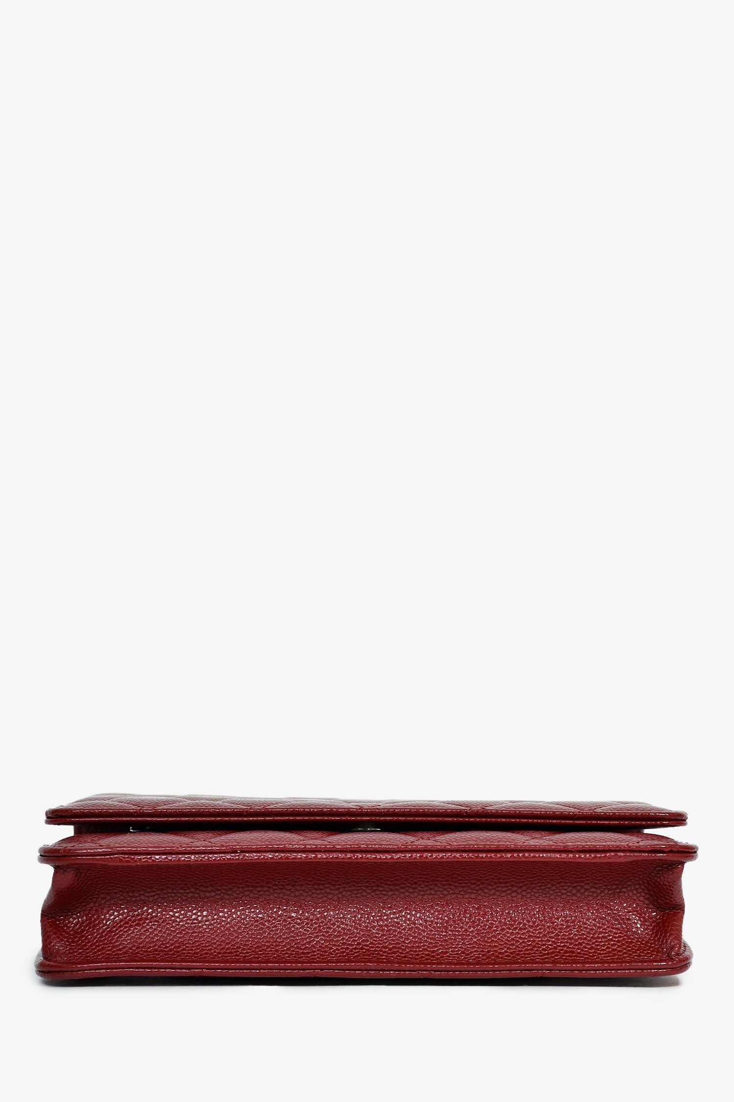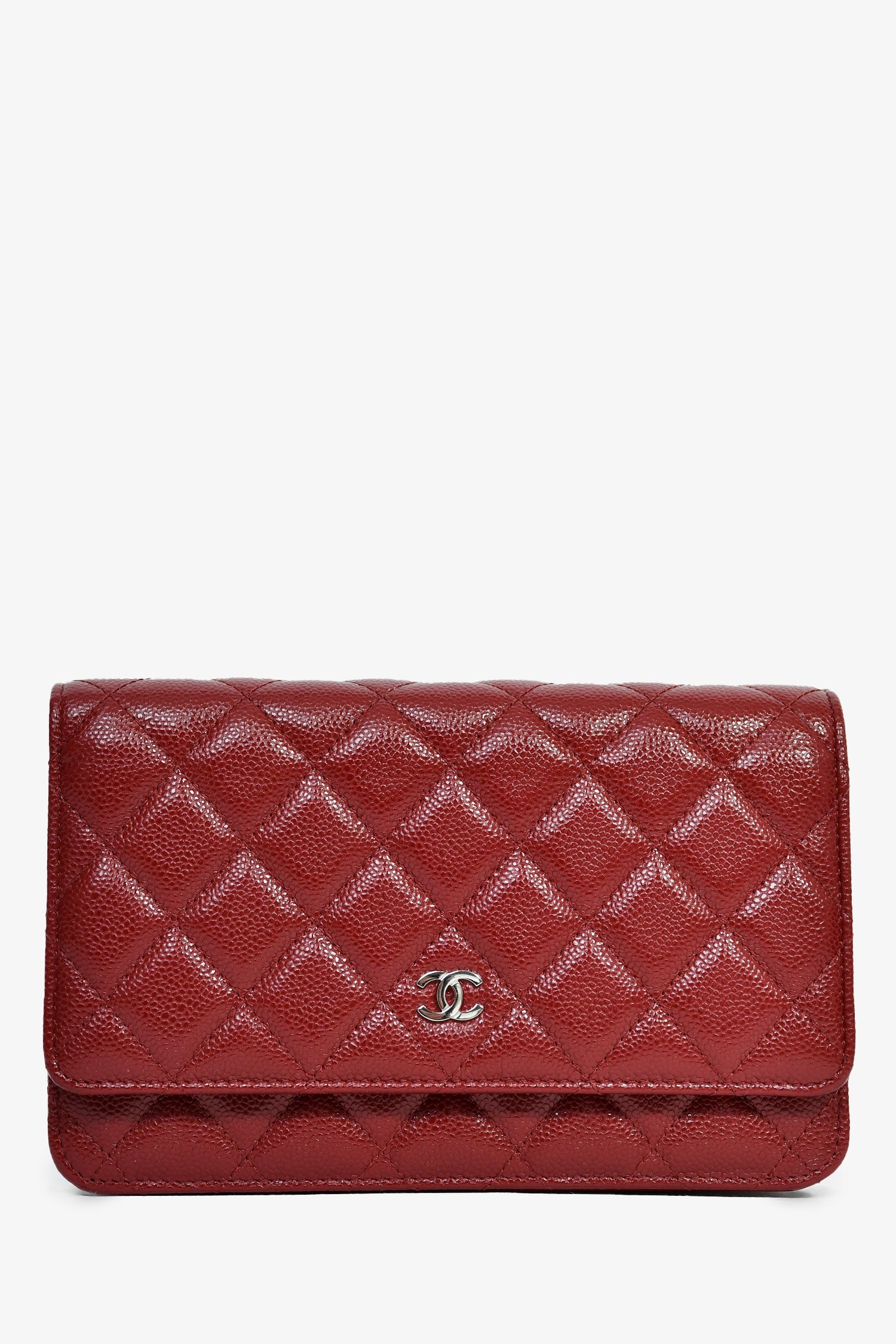 Pre-Loved Chanel™ 2020 Burgundy Quilted Classic Wallet On Chain. Silver-tone hardware. Fold-over flap with a snap closure. 3 interior compartments. 1 zipped compartment. 6 card slots. Chain-link and leather crossbody strap. Tonal stitching.