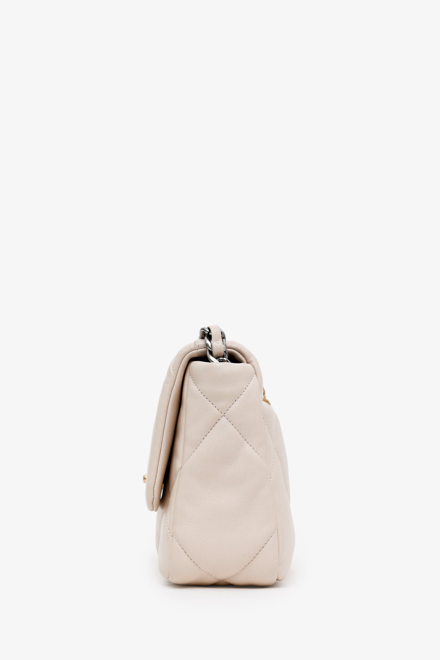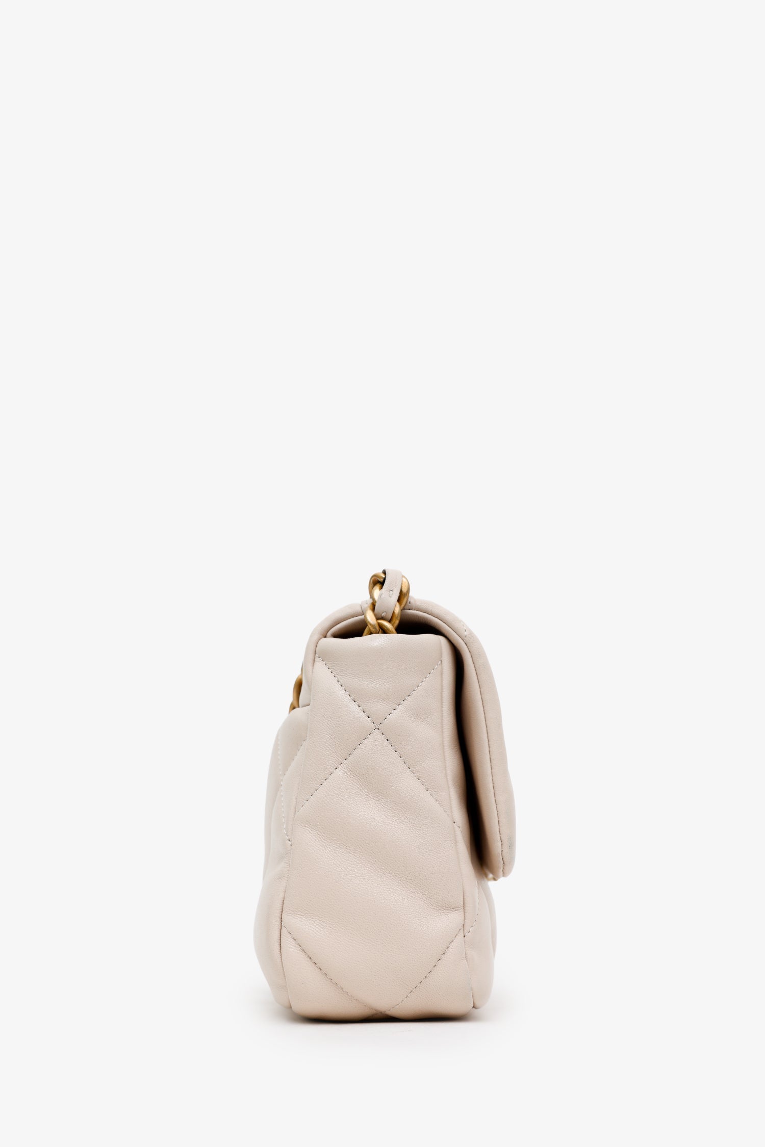 Pre-Loved Chanel™ 2022 Beige Goatskin Leather 'Chanel 19' Small Flap Shoulder Bag