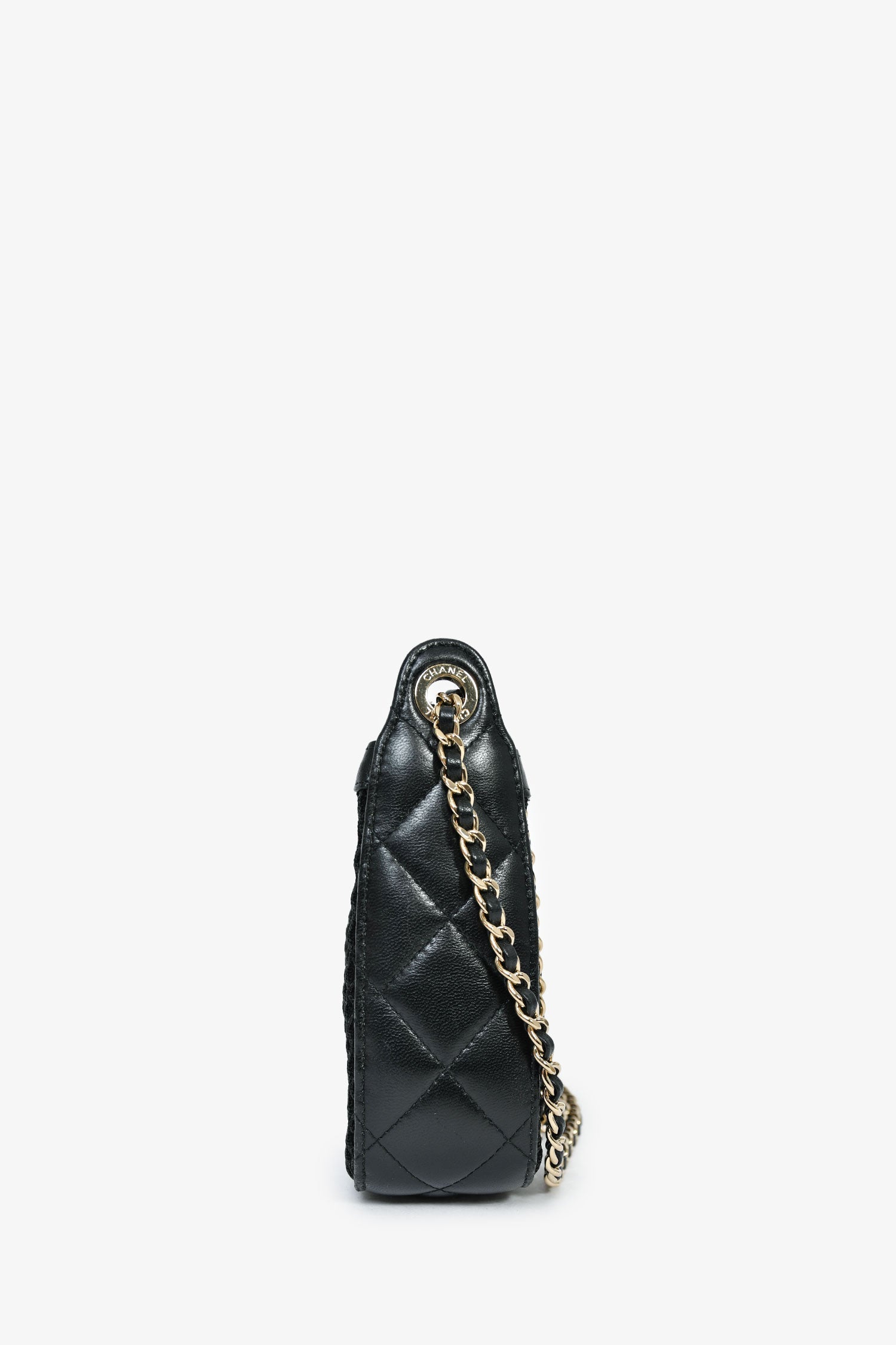 Pre-Loved Chanel™ 2025 Black Mesh Shiny Lambskin Chain Clutch with Pouch