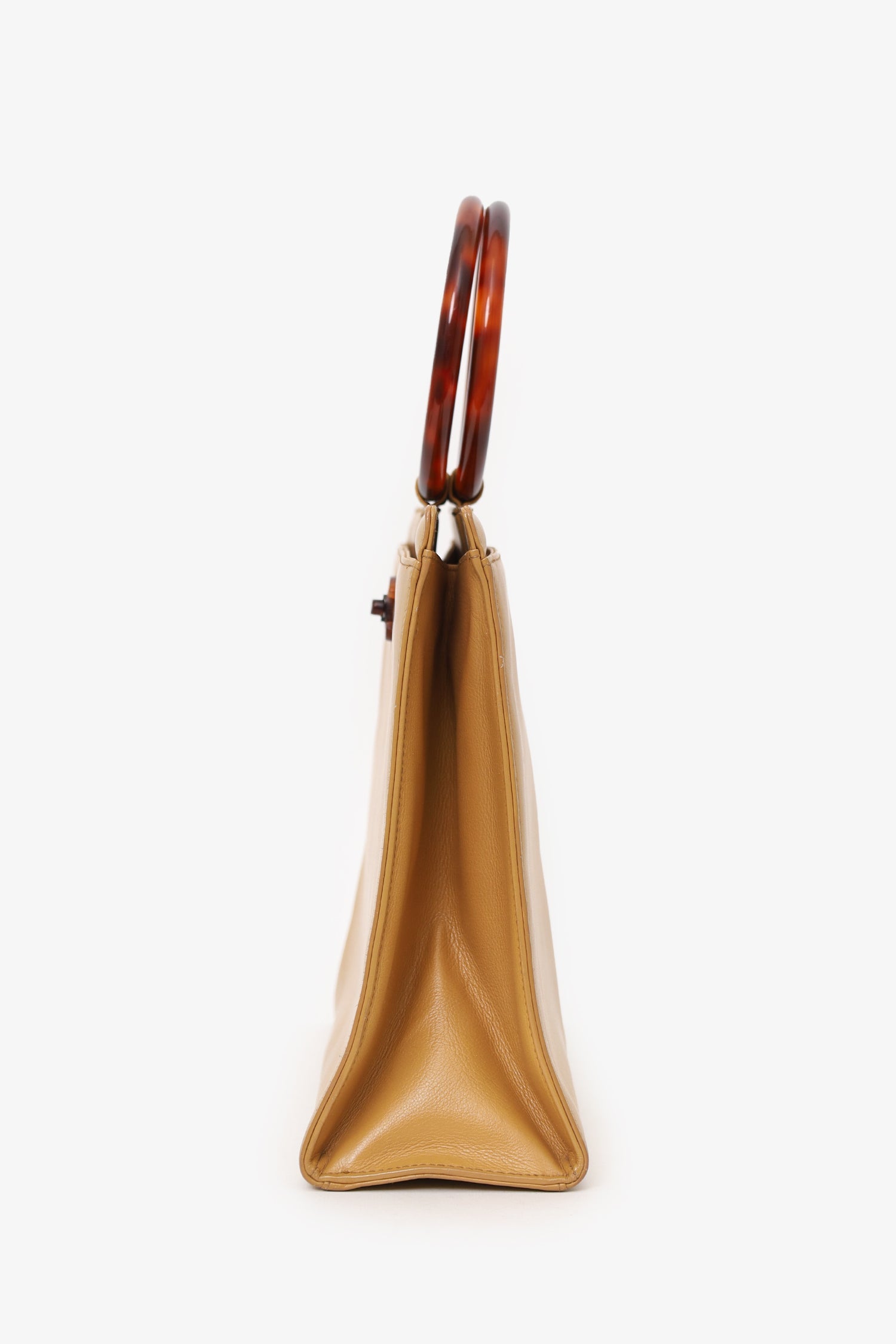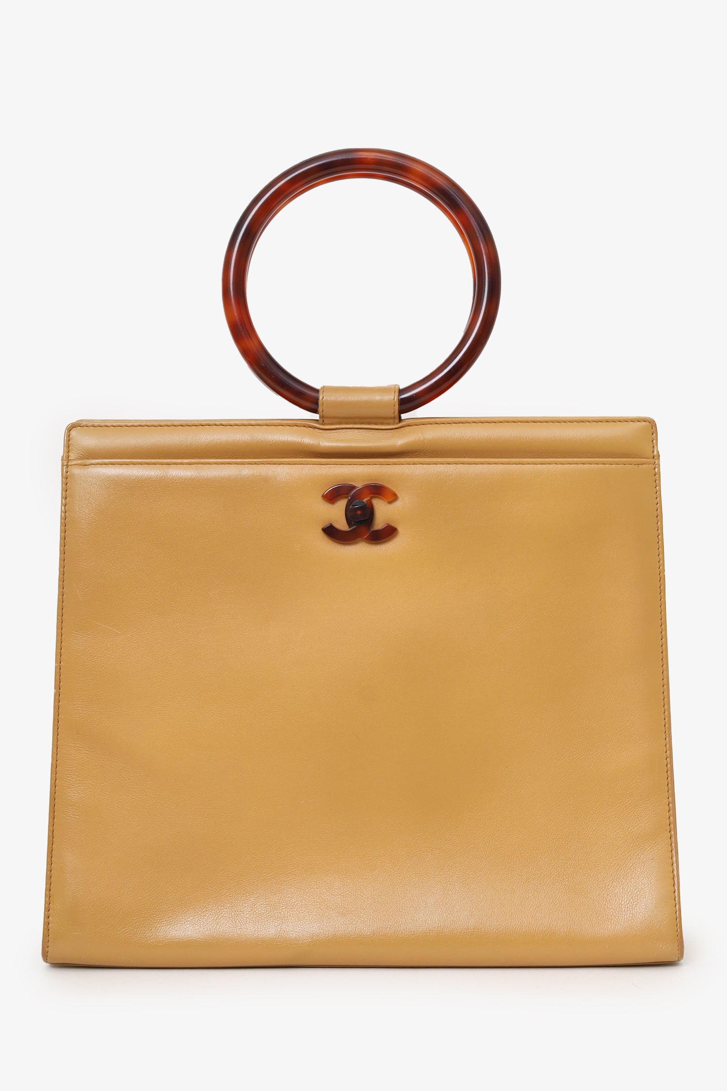 Pre-Loved Chanel™ Beige Leather Tortoiseshell Circle Handle Handbag