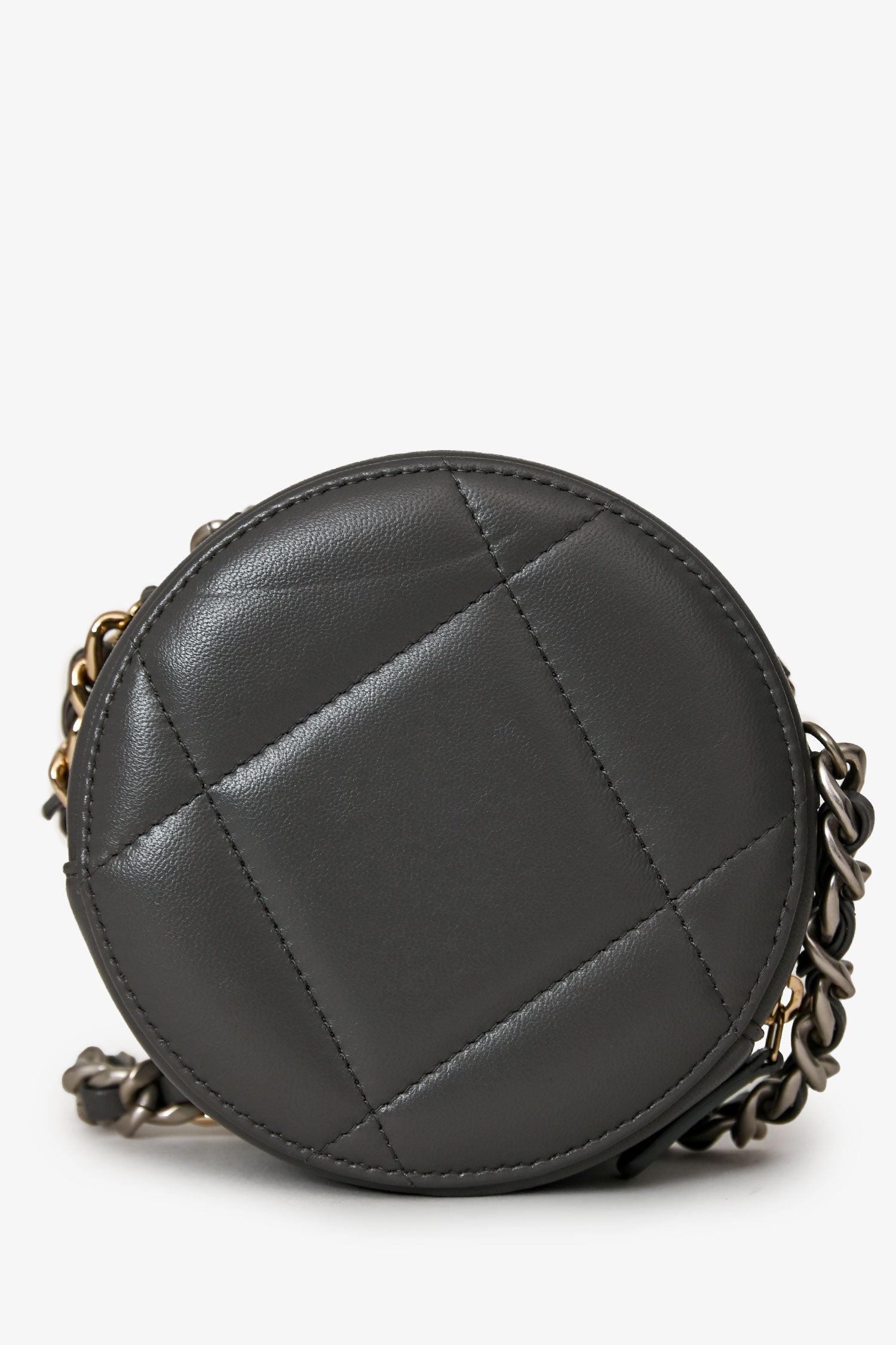 Pre-Loved Chanel™ Grey Lambskin 19 Round Crossbody Silver Hardware