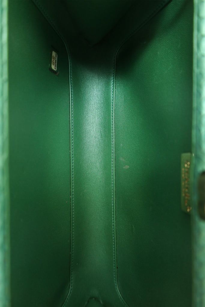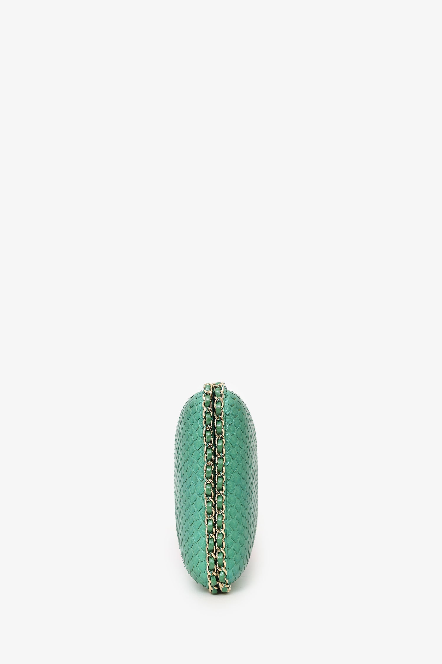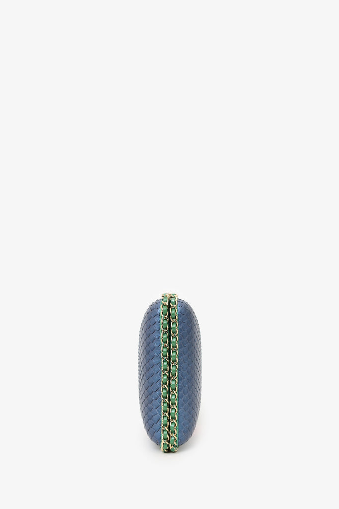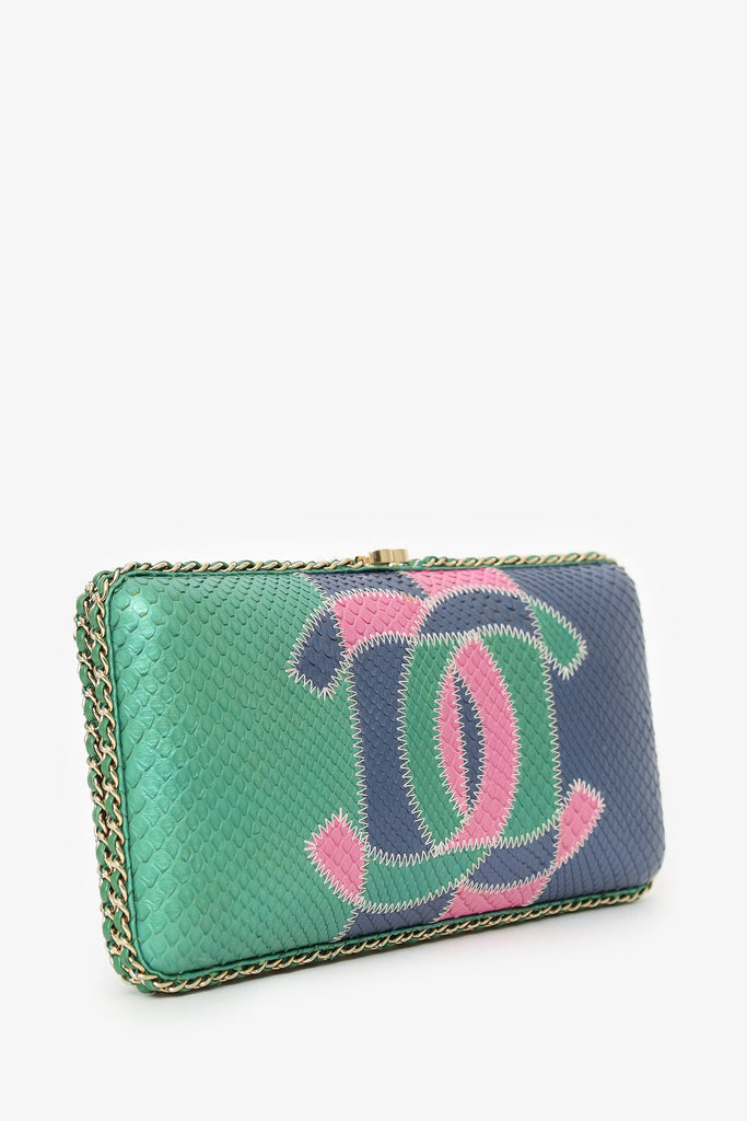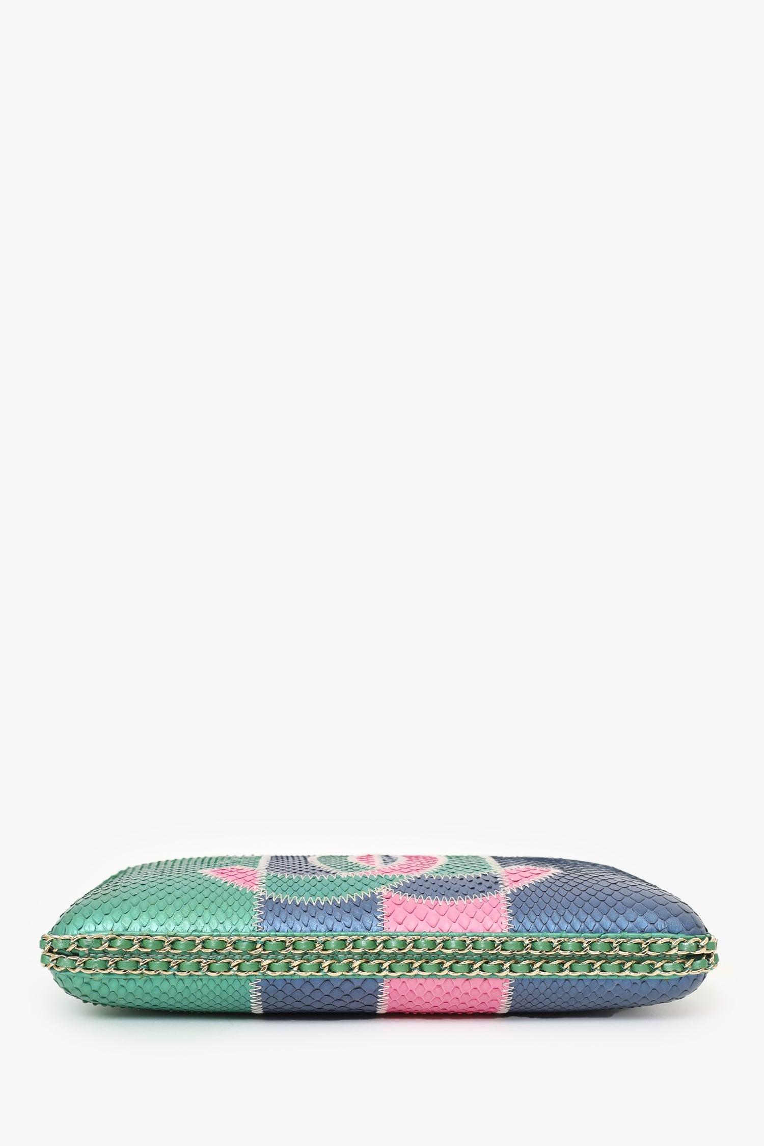 Pre-Loved Chanel™ Multicolour Python Bag. Top push-lock closure. Chainlink and leather crossbody strap. Lined interior. Gold-tone hardware. Tonal and contrast stitching.