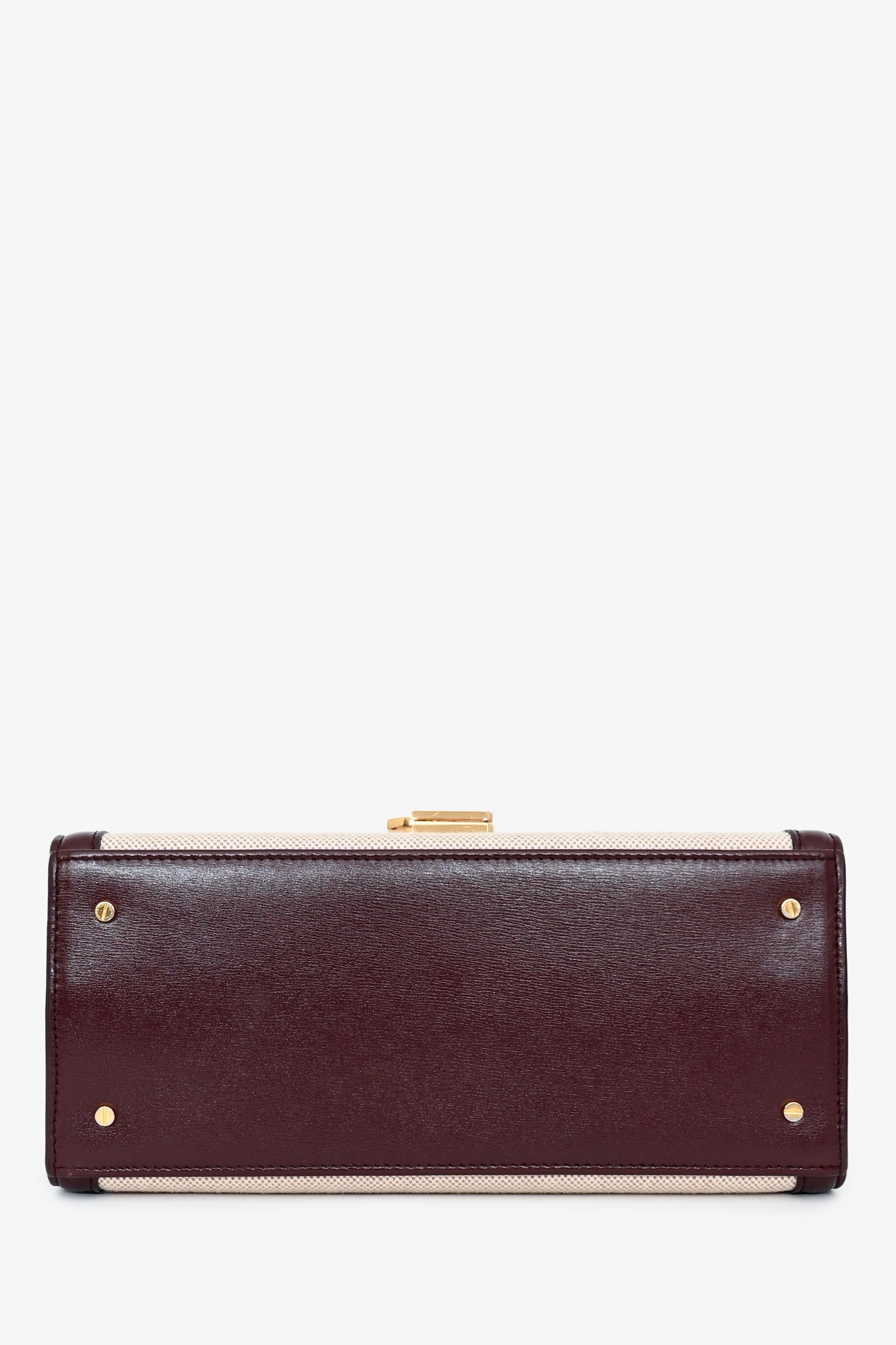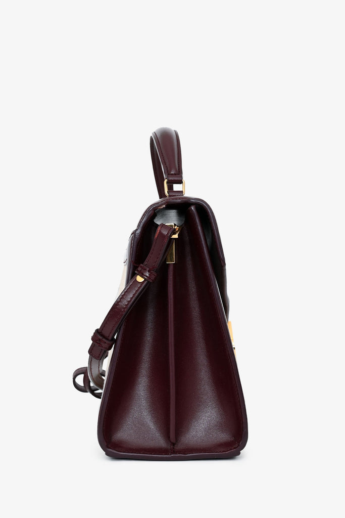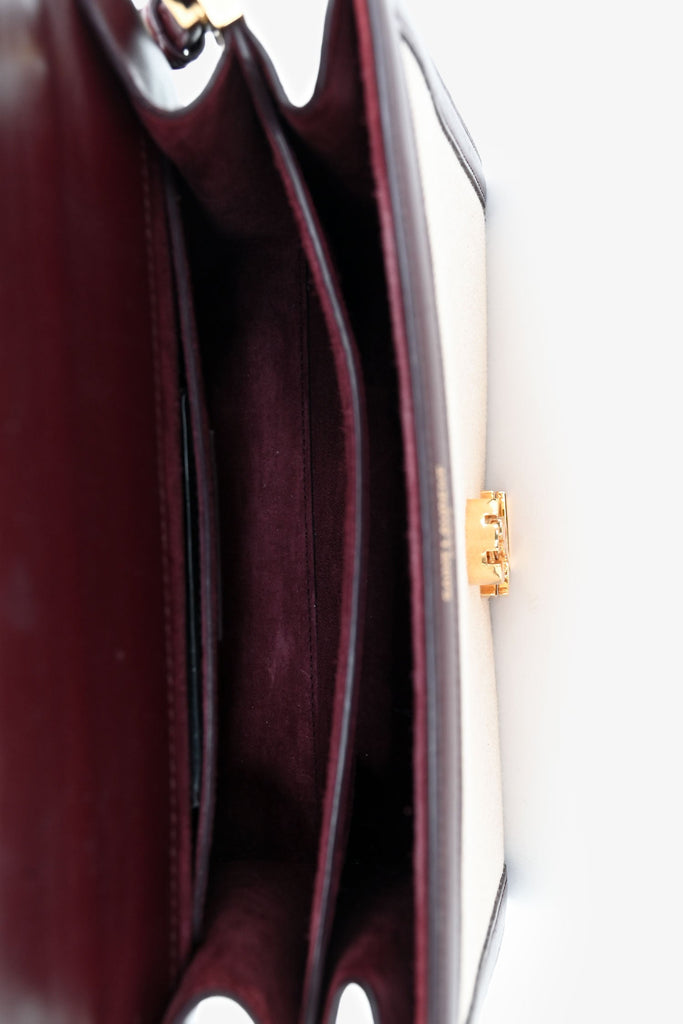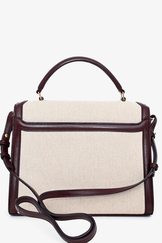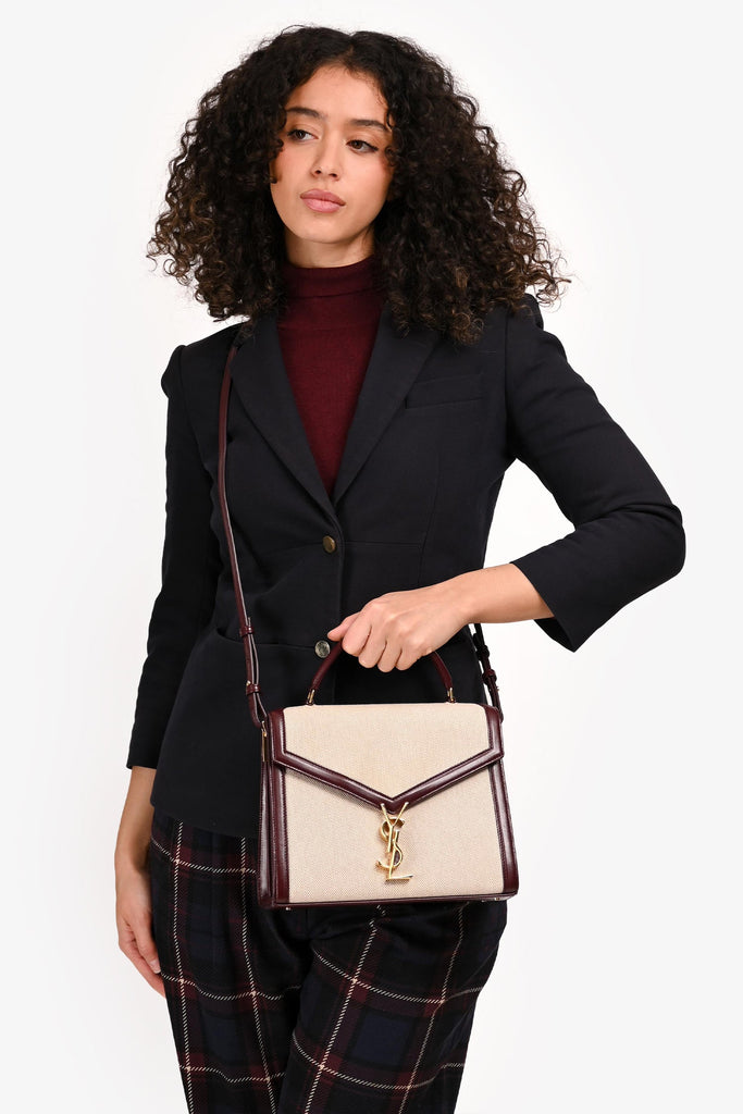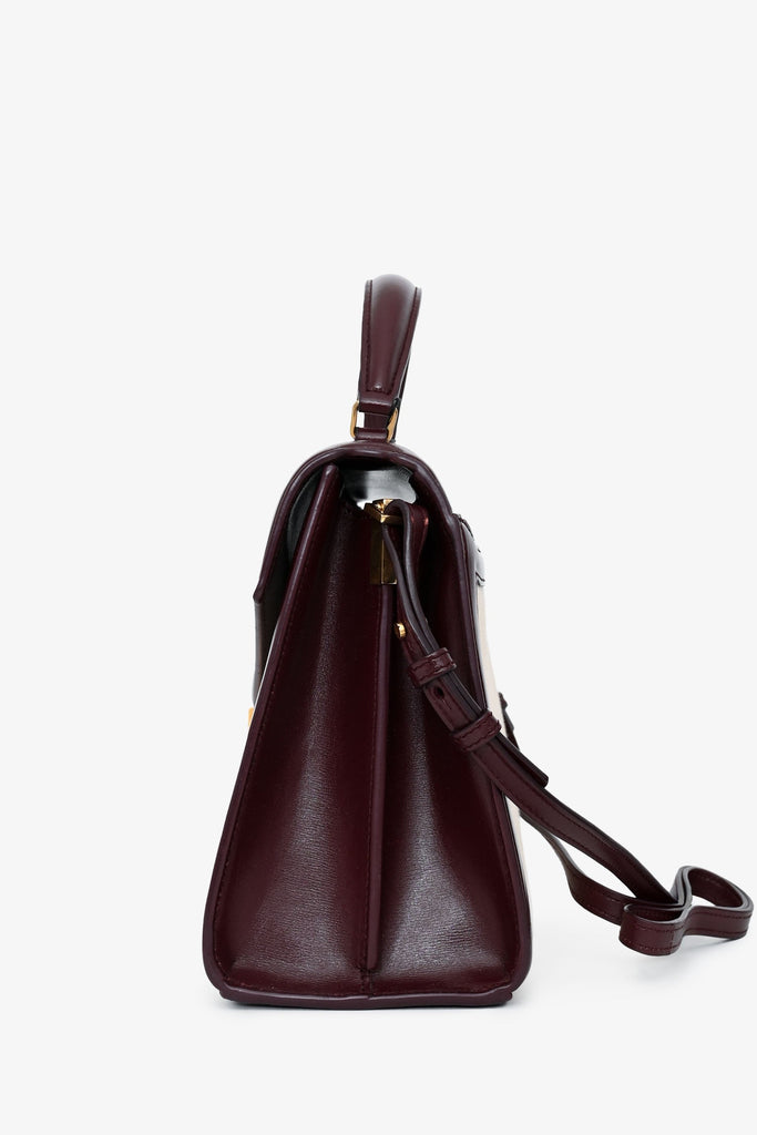 Saint Laurent 2020 Cream/Burgundy Canvas Leather-Trimmed Medium Cassandra Top Handle