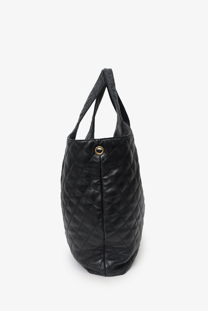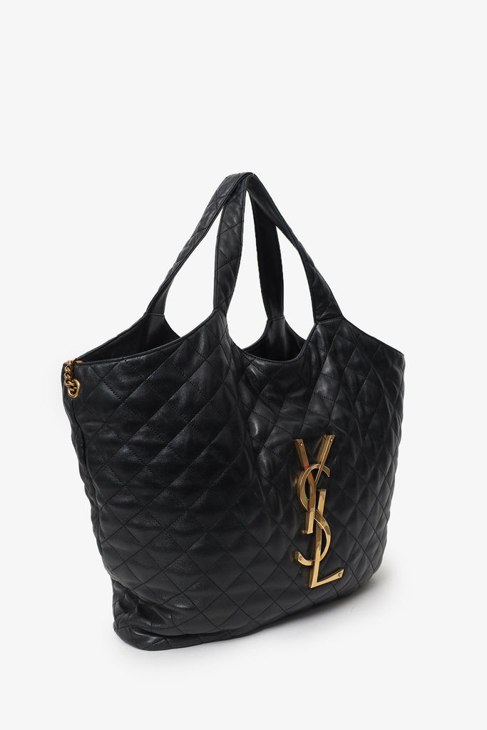Saint Laurent Black Leather Quilted 'ICARE' Oversized Bag with Pouch