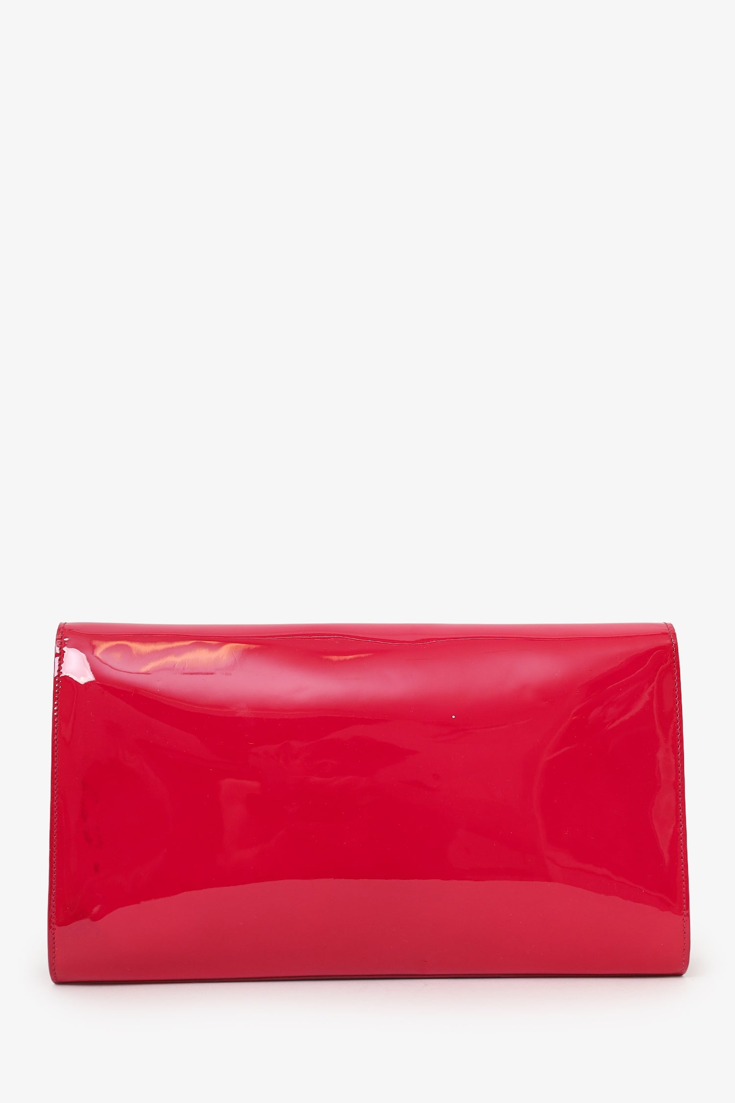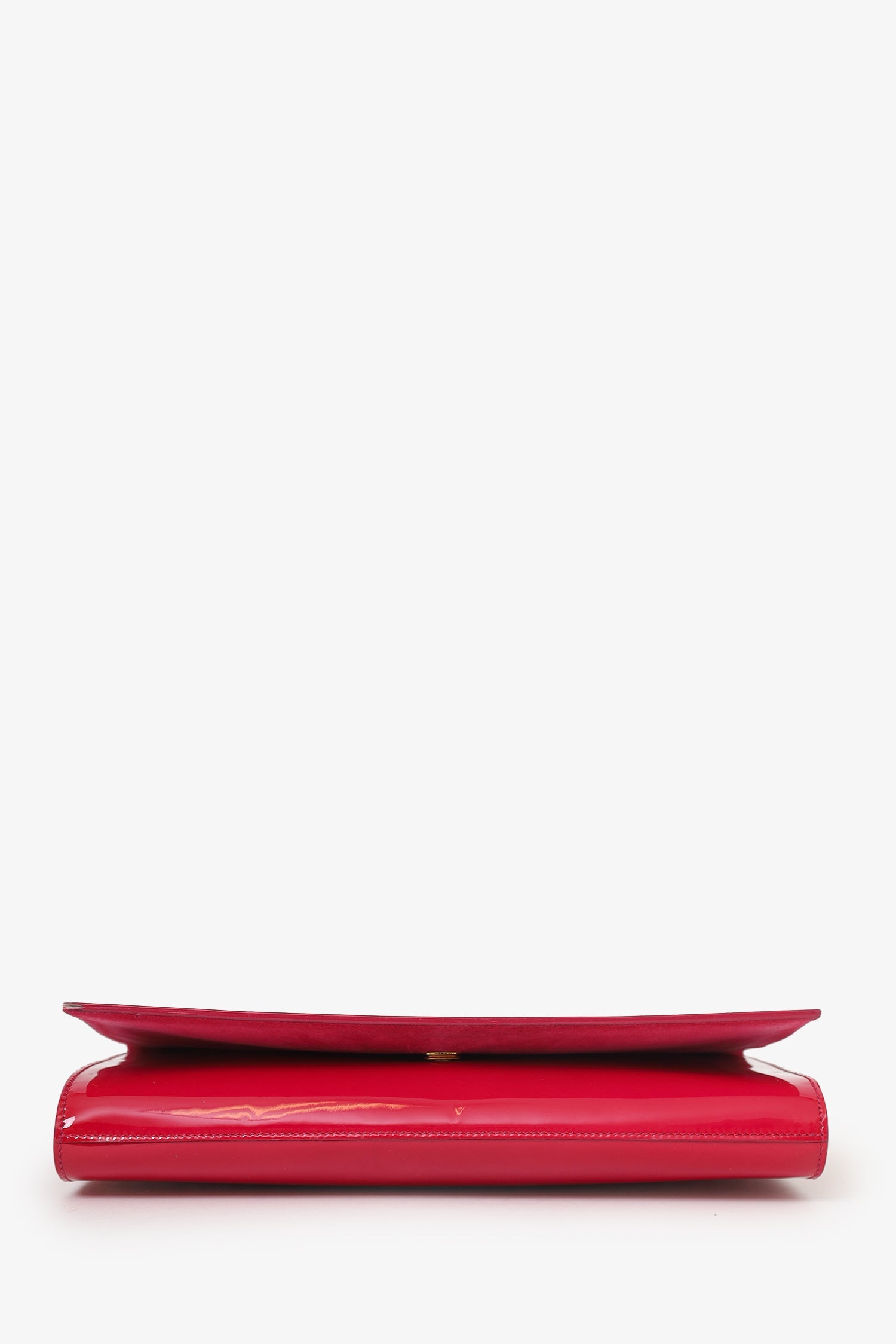 Saint Laurent Pink Patent Leather 'Belle de Jour' Clutch. Front fold-over flap with snap-button-up closure. Suede and velvet-lined interior with single rear slip pocket. Gold-tone hardware. Tonal stitching.