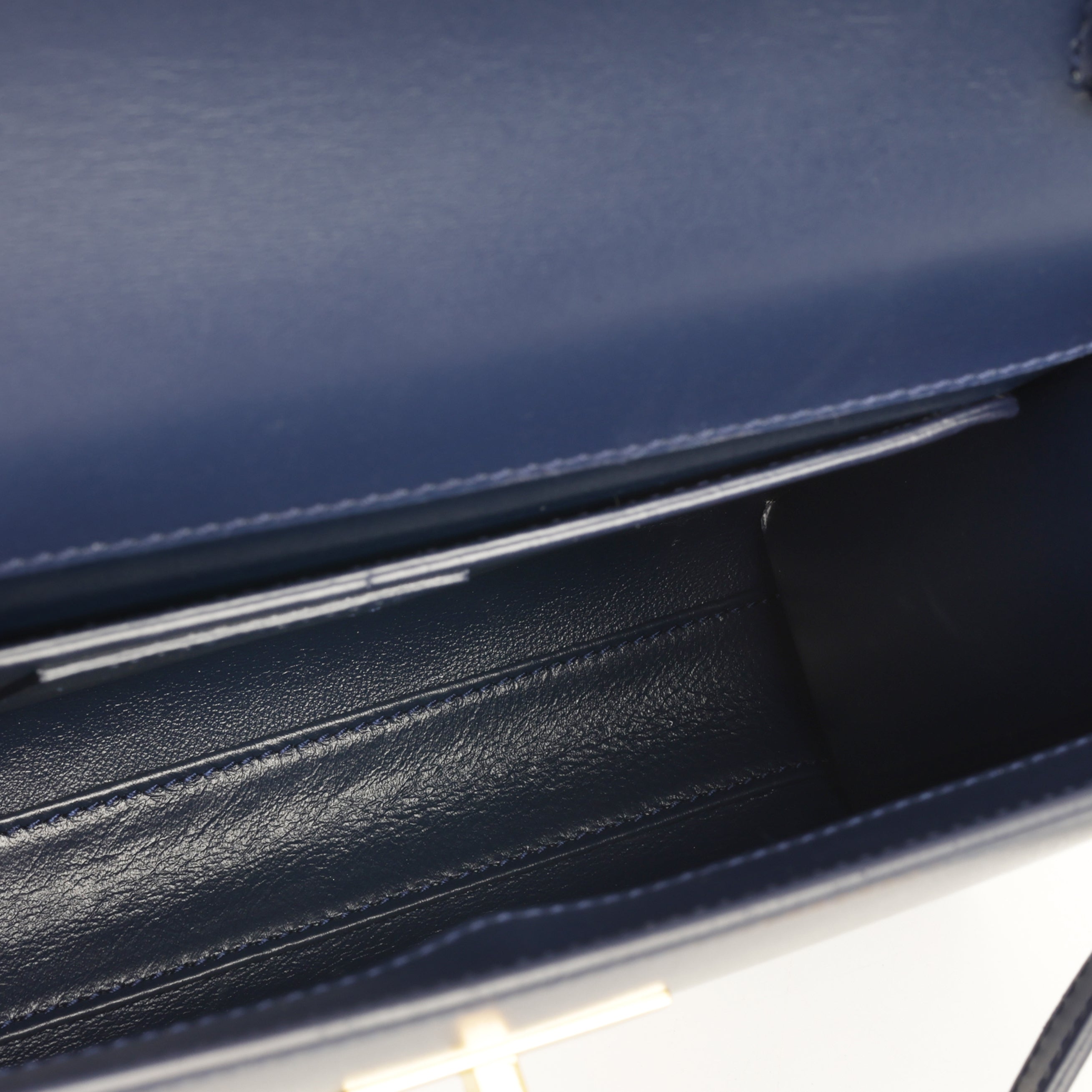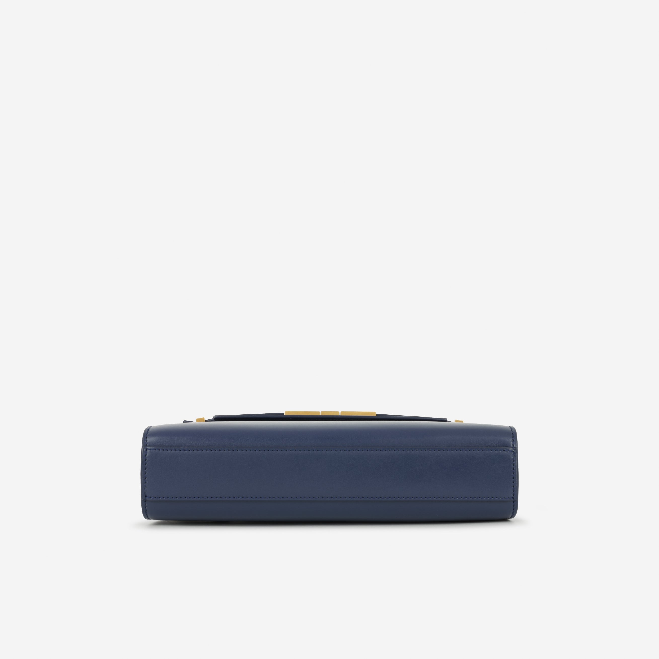 Refined and modern, the Manhattan Shoulder Bag is a testament to Saint Laurent’s timeless elegance. Crafted in smooth navy calfskin, the sleek silhouette is accented with polished gold-toned hardware, adding a touch of understated luxury. The structured design opens to a practical interior, perfectly sized to carry your daily essentials while maintaining a sophisticated profile.