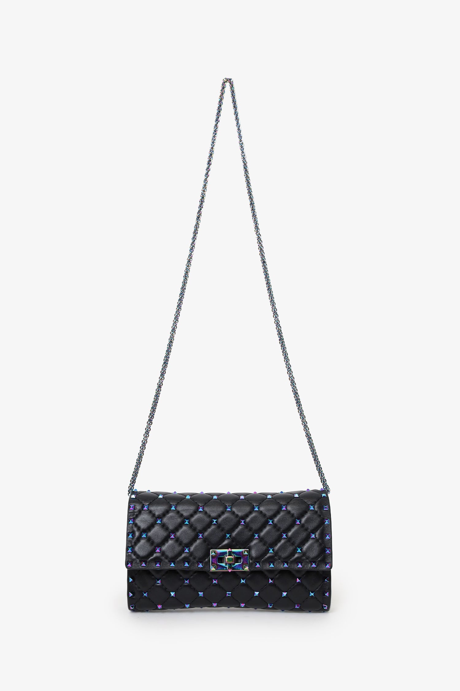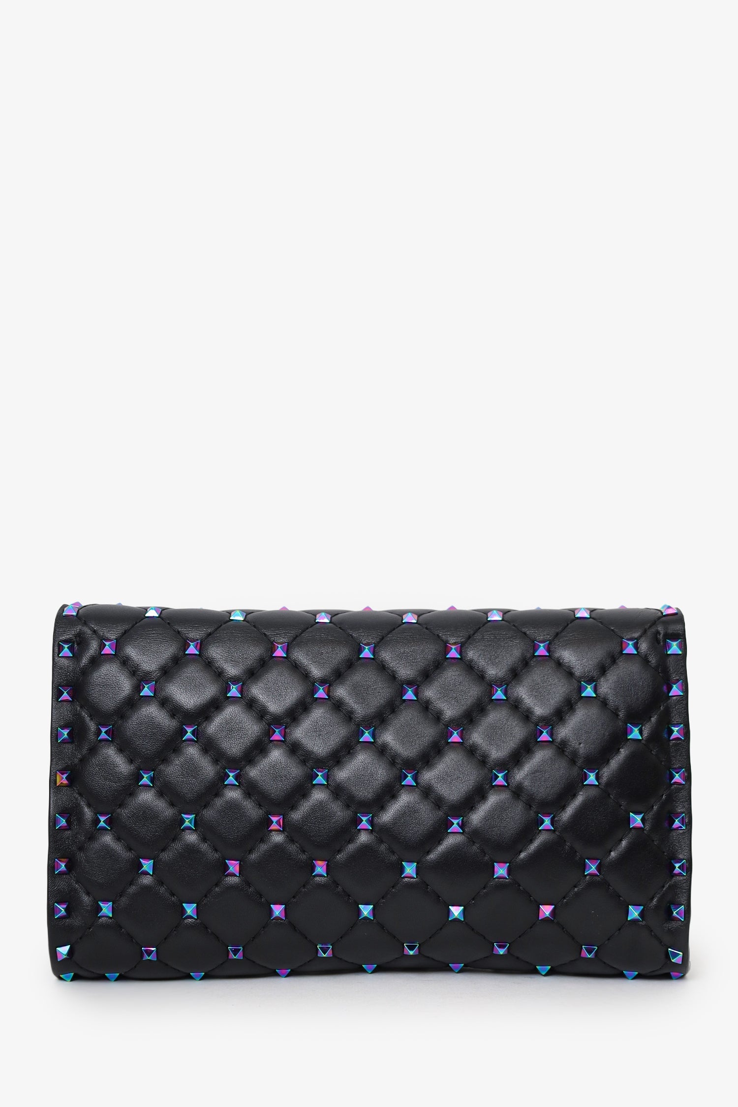 Valentino Black Lambskin Oil Slick Rockstud Spike Wallet on Chain