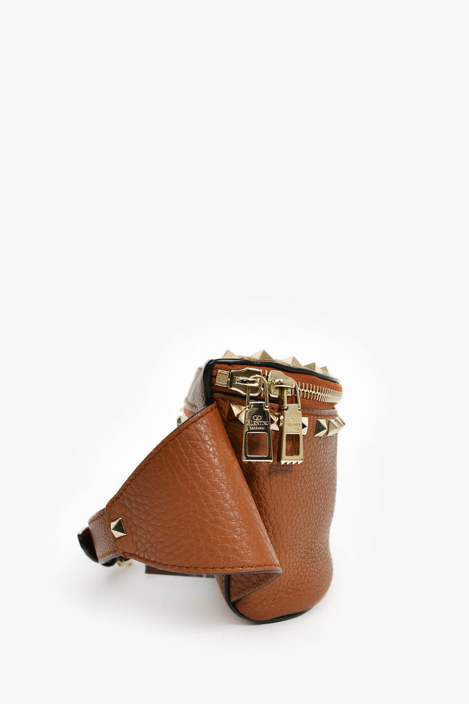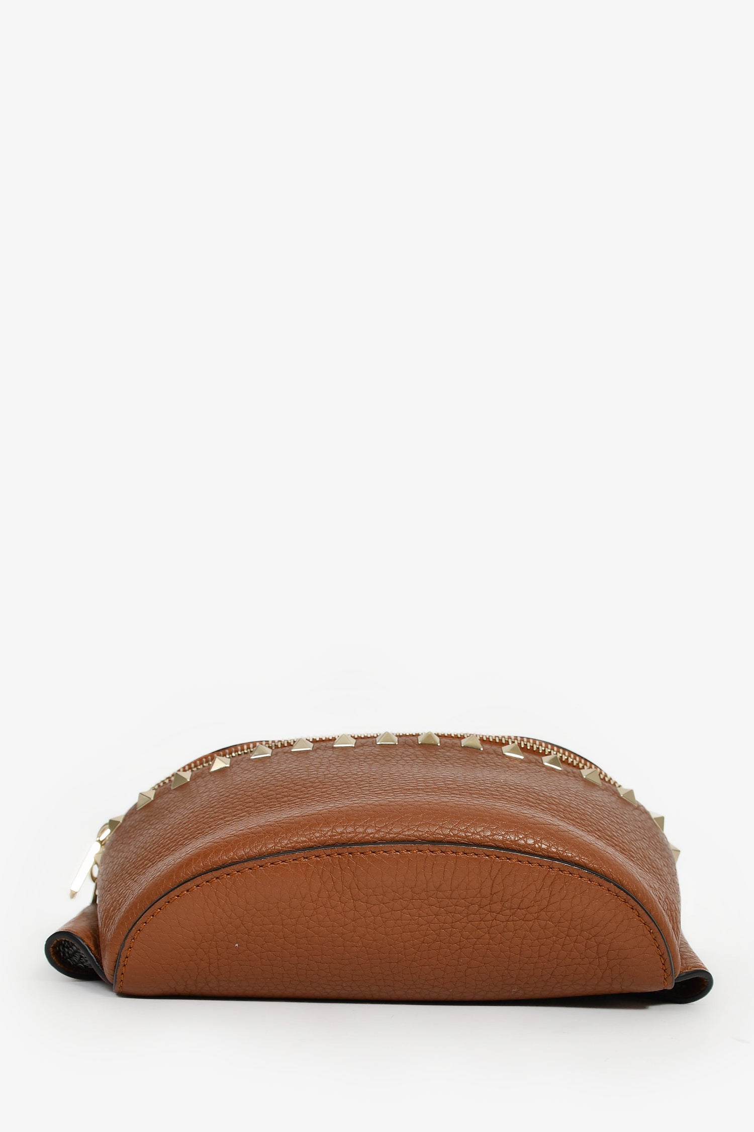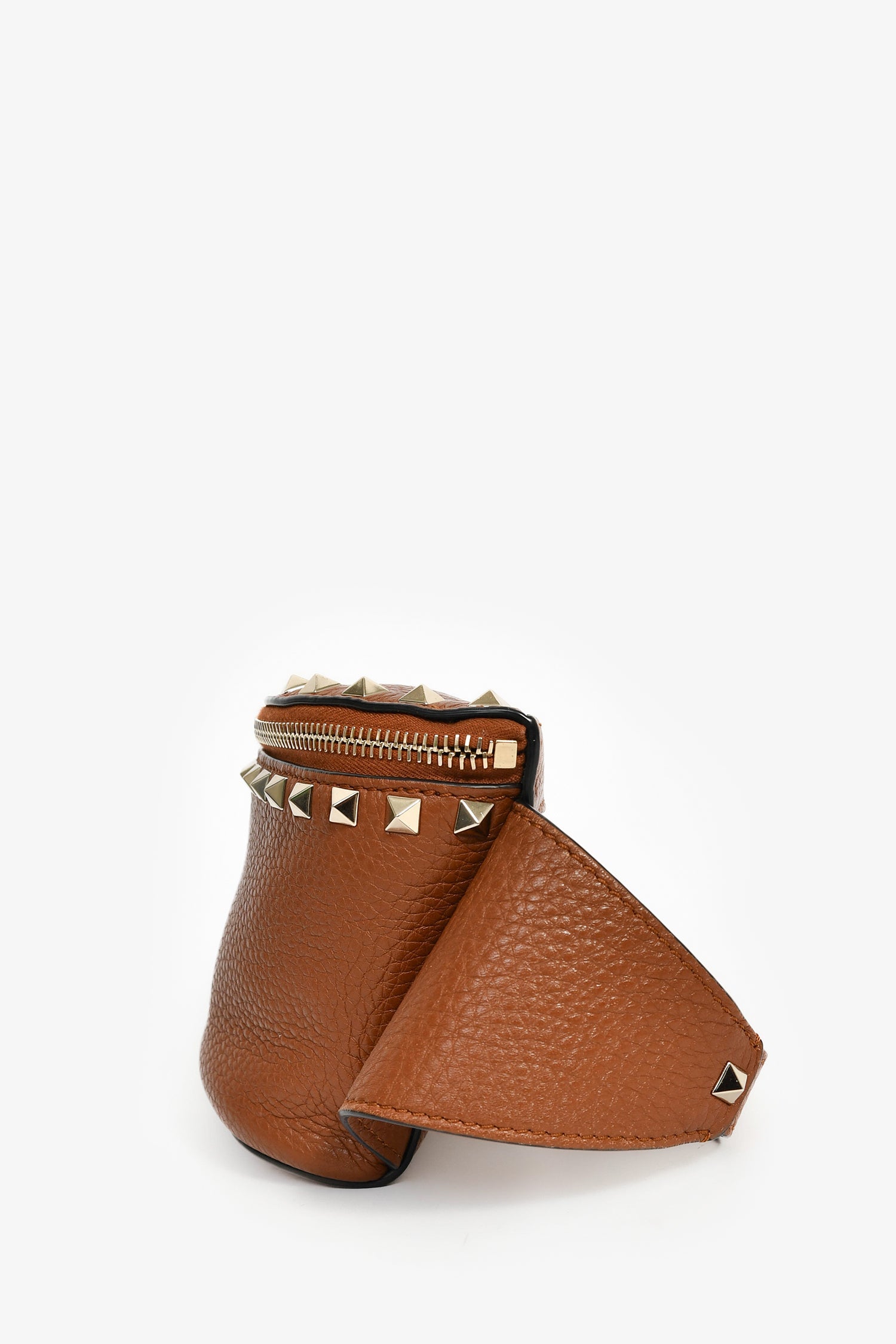 Valentino Cognac Rockstud Leather Pebble Belt Bag