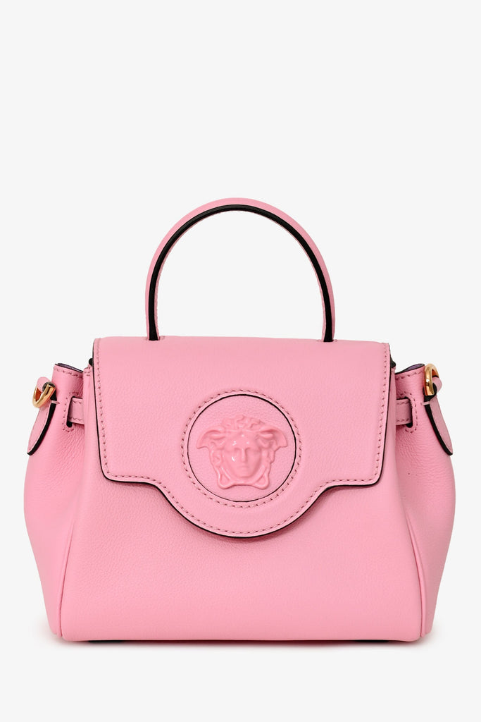 Versace Pink Leather Small La Medusa Top Handle with Strap