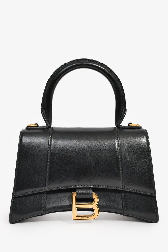 Balenciaga Black Leather Small Hourglass Bag with Strap