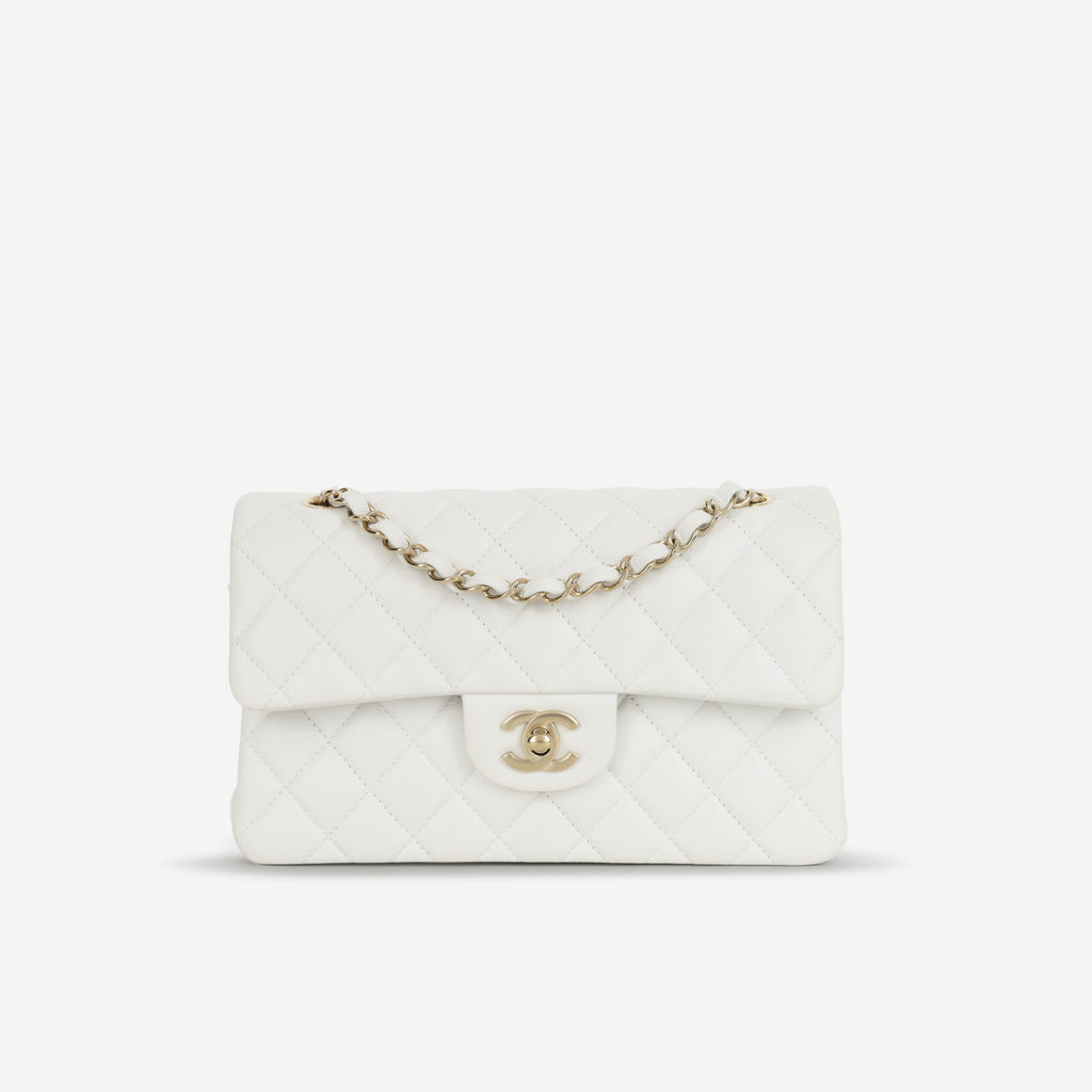 Chanel Small Classic Flap - White Caviar | Champagne Gold Hardware