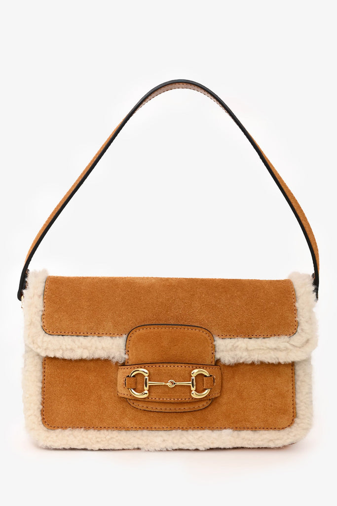 Gucci Brown Suede Leather/Shearling Trimmed Horsebit 1955 Shoulder Bag